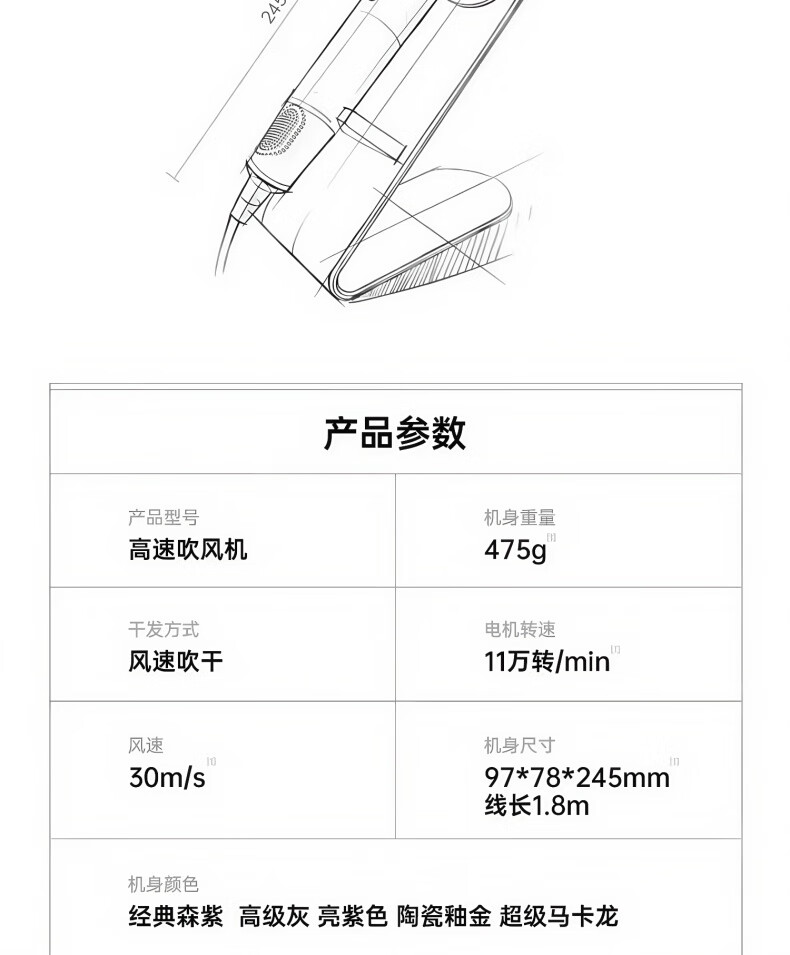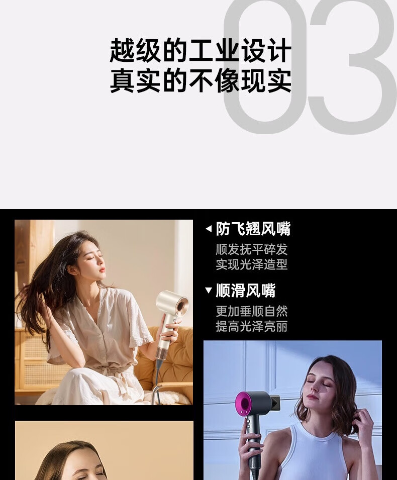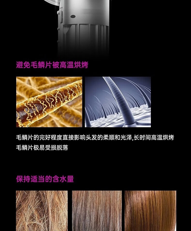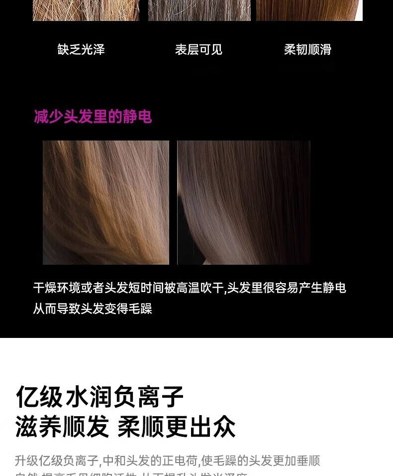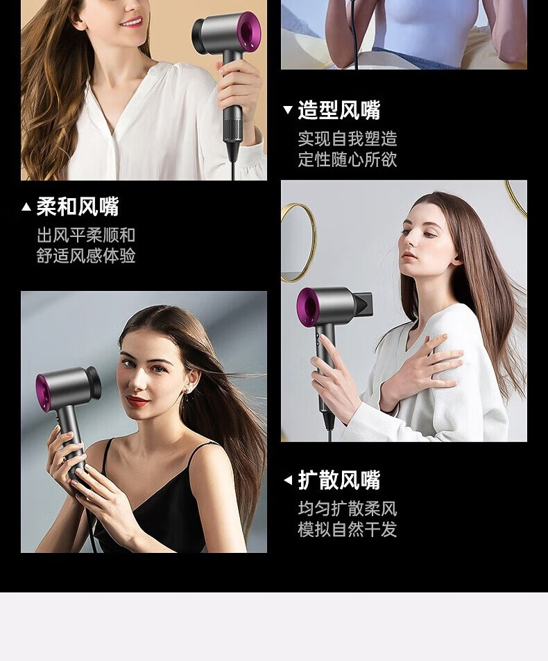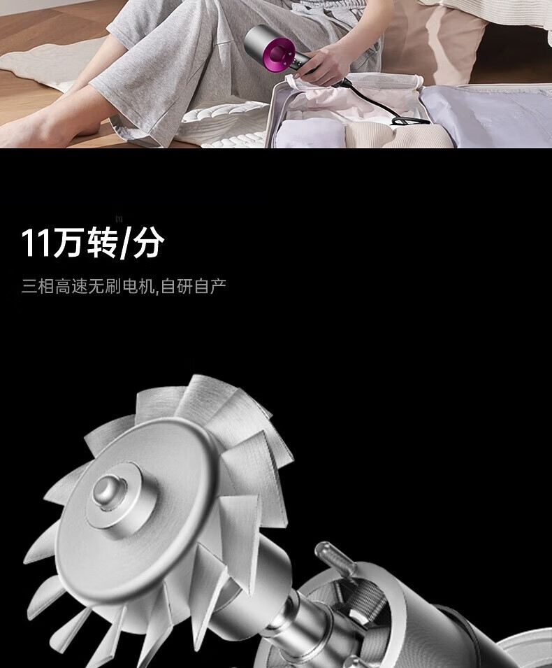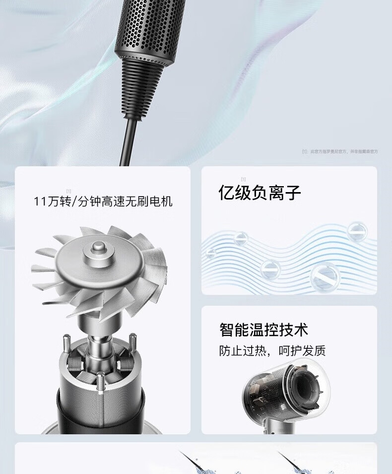 【新国标3C认证】戴森同款45亿+负离子吹风机宿舍旅游家用静音大功率不伤发速干高速无叶电吹风机 【官方强森钛灰顶配】不含风嘴+45亿+负离子护发