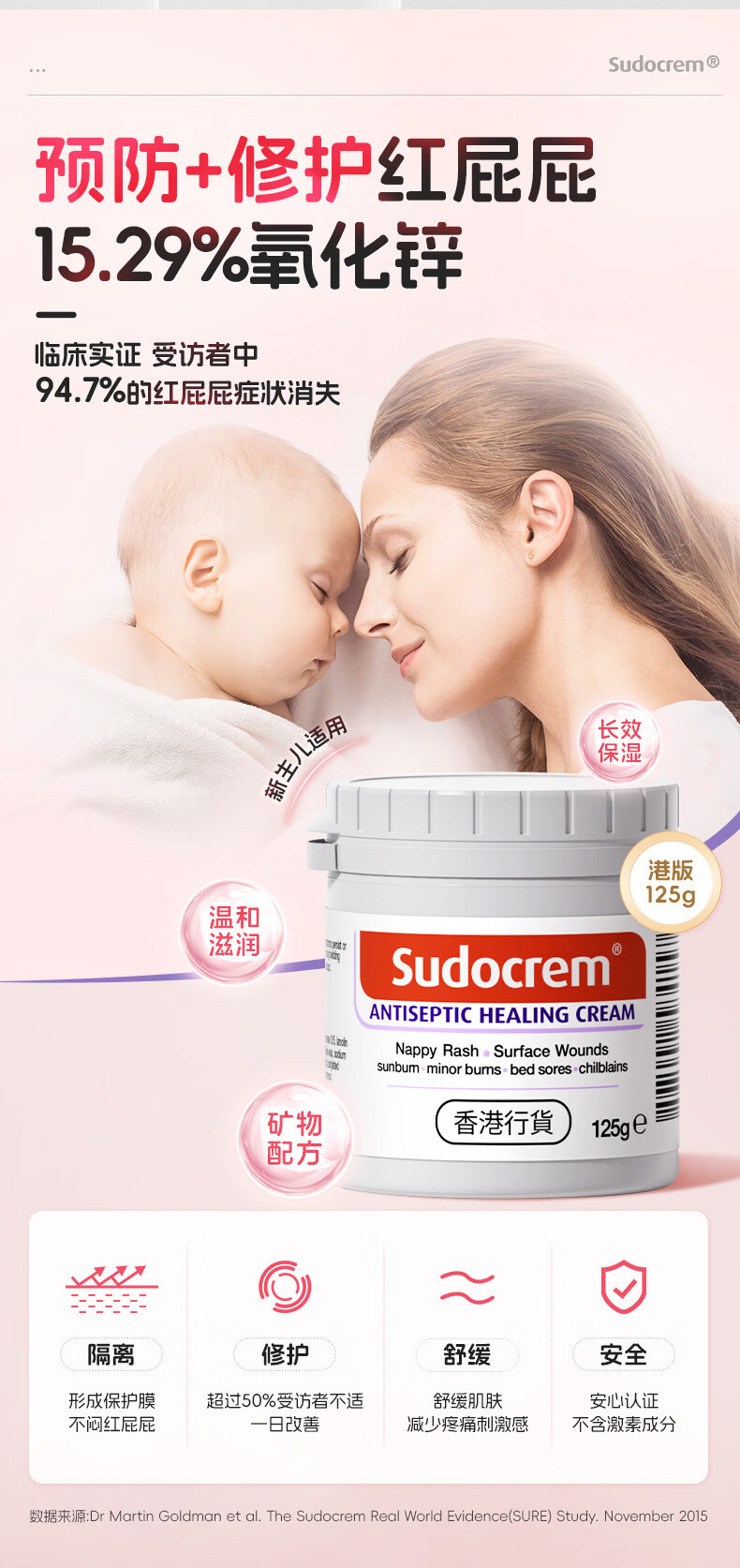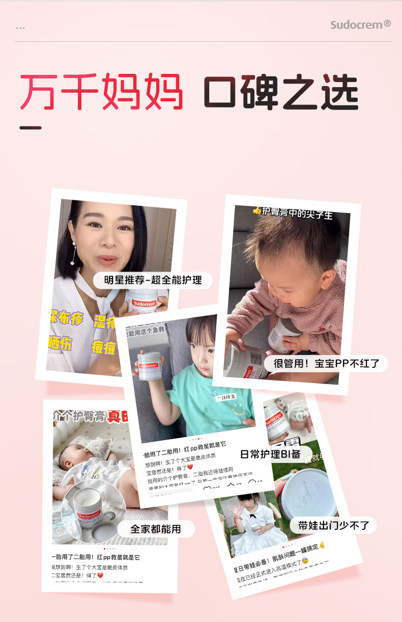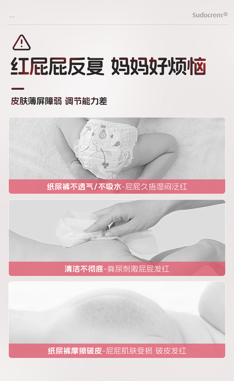 Sudocrem新生婴幼儿护臀膏含氧化锌英国屁屁乐宝宝红屁股护理修复专用霜 港版125g*3