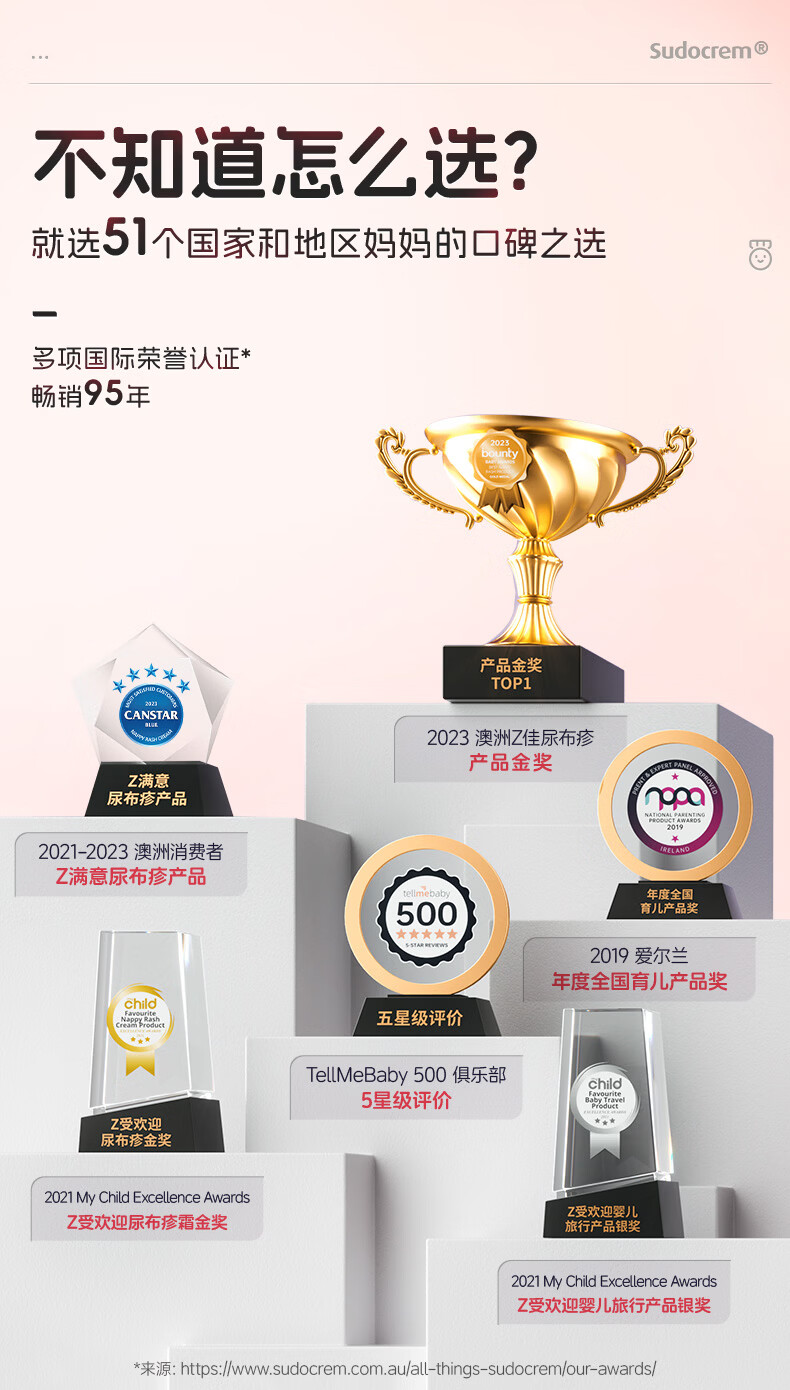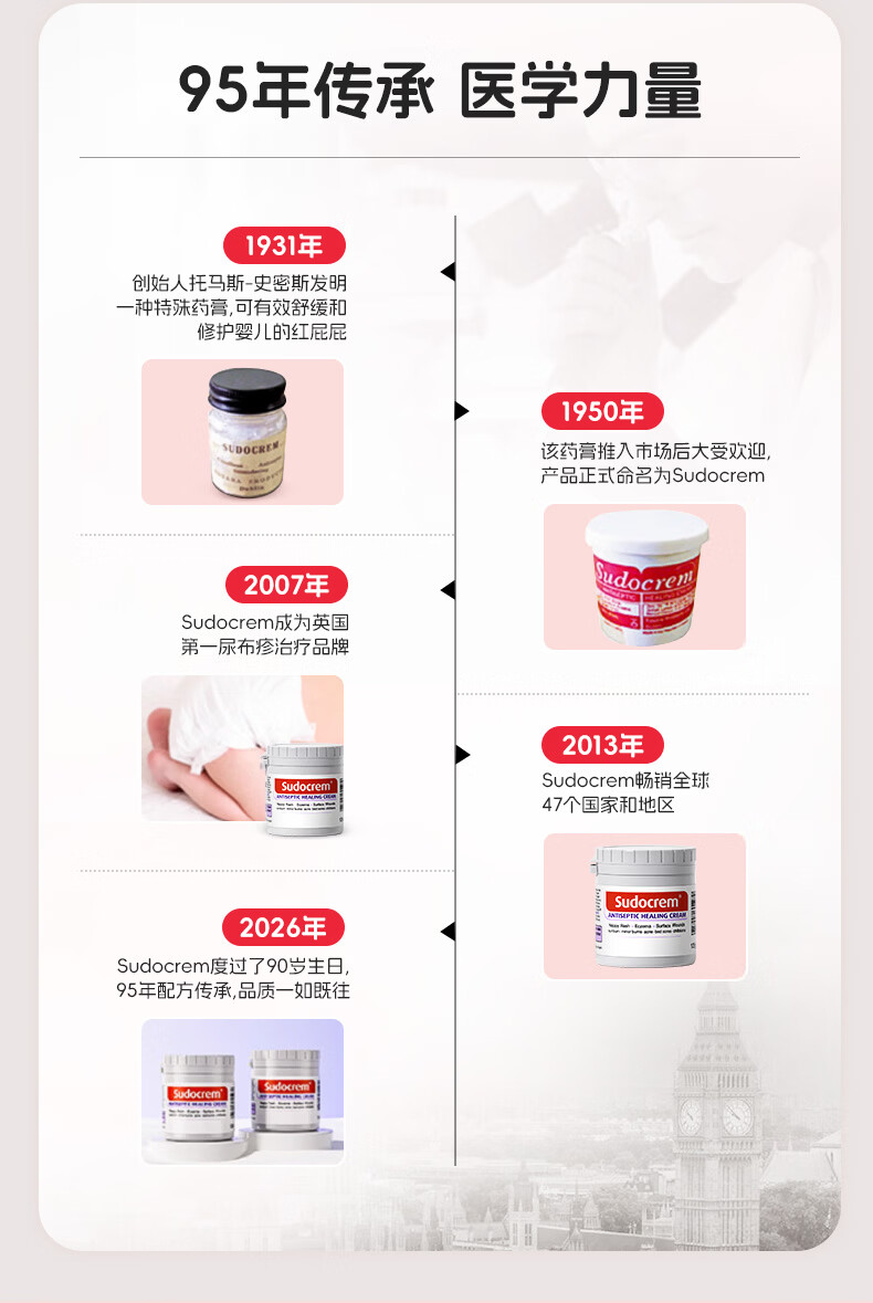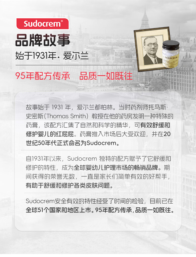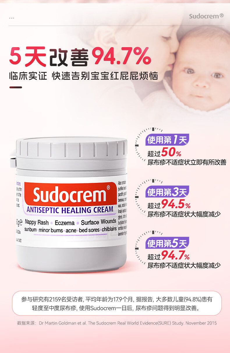 Sudocrem新生婴幼儿护臀膏含氧化锌英国屁屁乐宝宝红屁股护理修复专用霜 港版125g*3