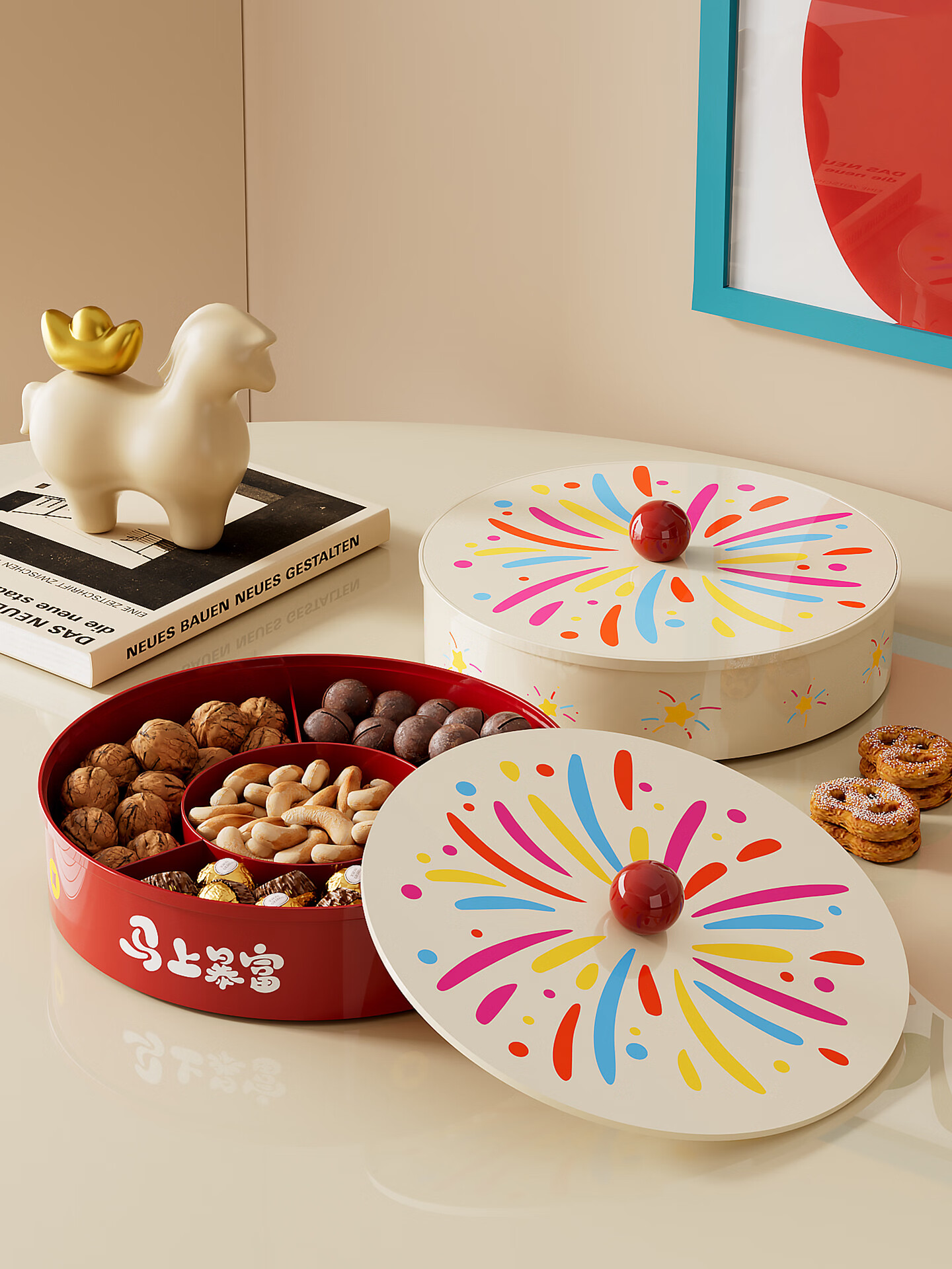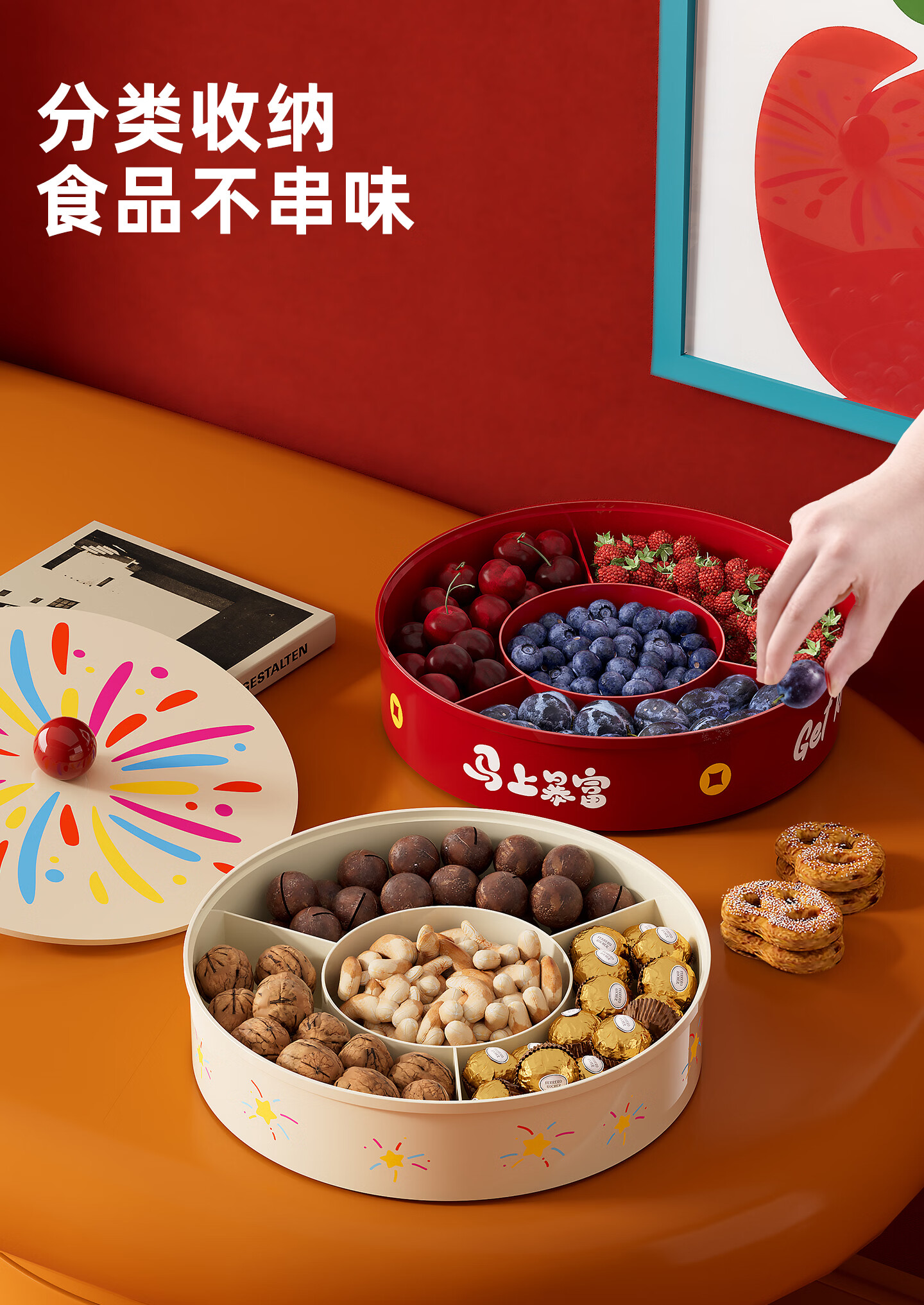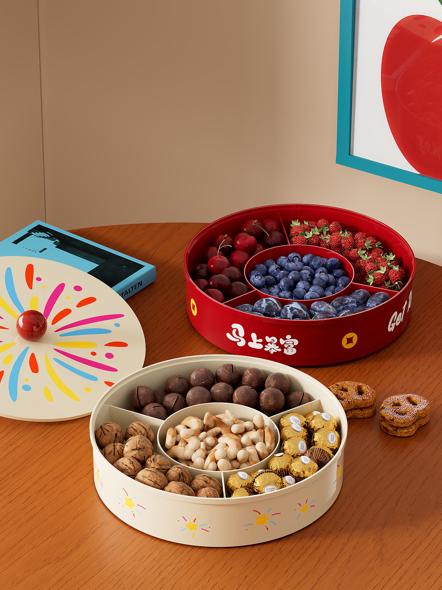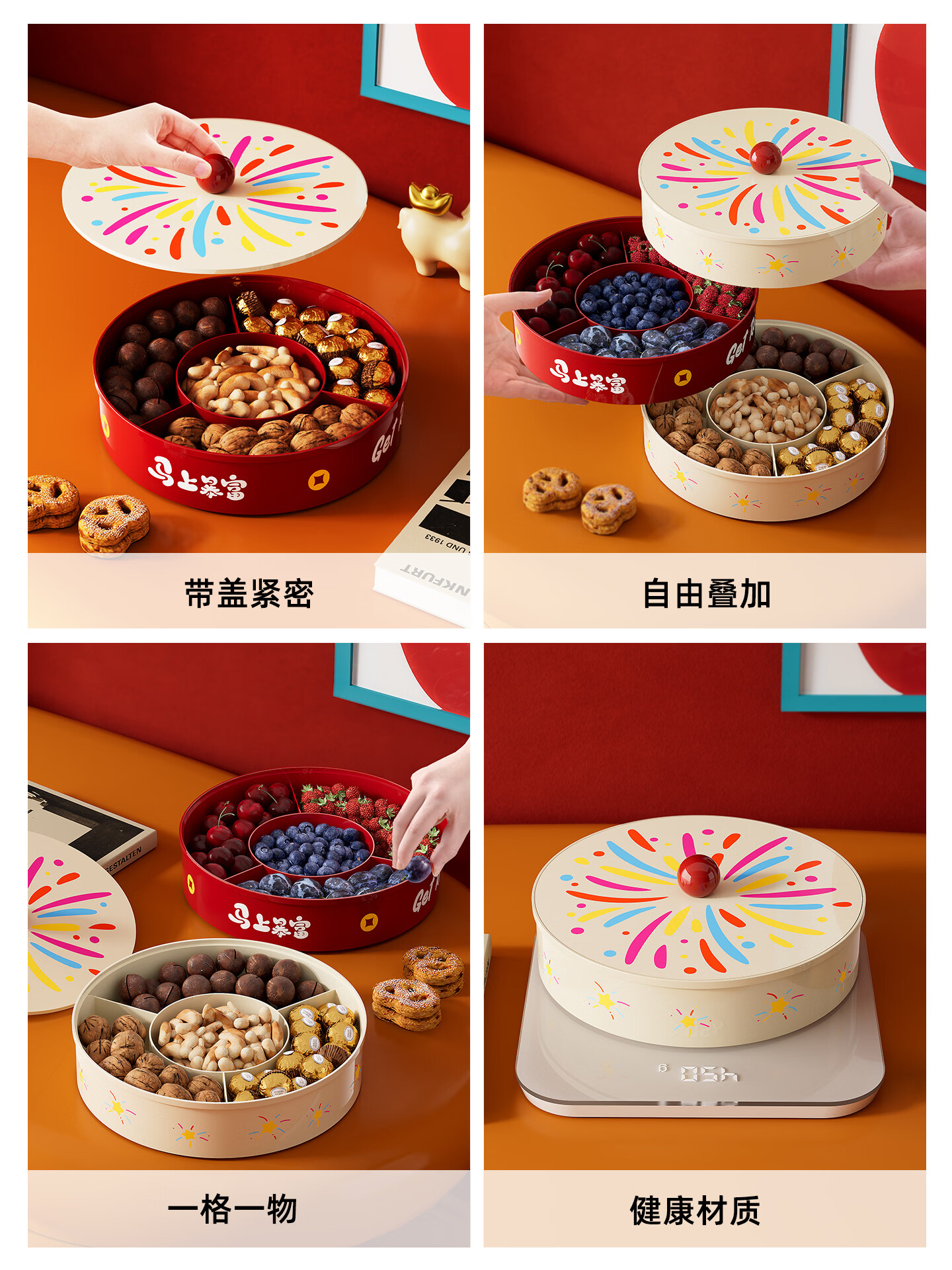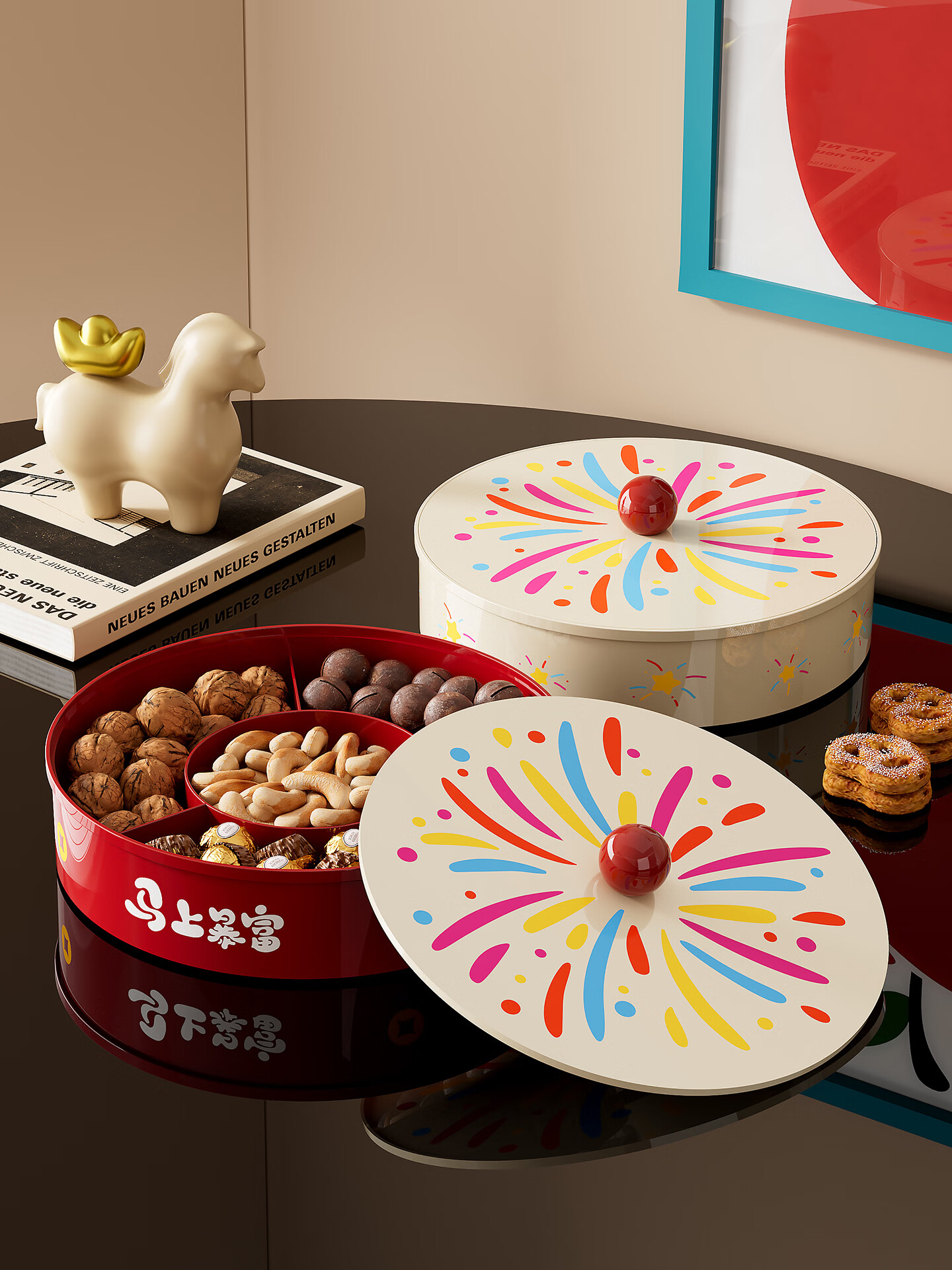 飞达三和果盘客厅高级新中式家用茶几干果水果盘2026新年氛围坚果盘糖果盒 【一层】新年烟花果盘