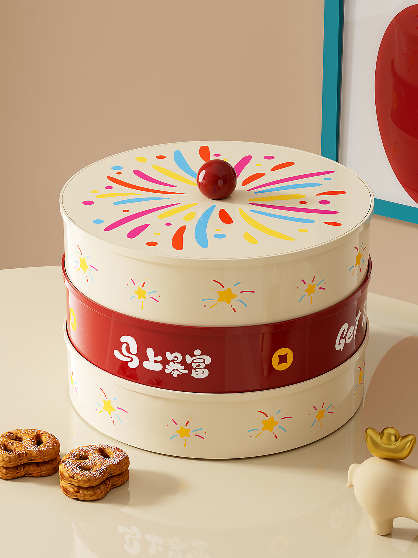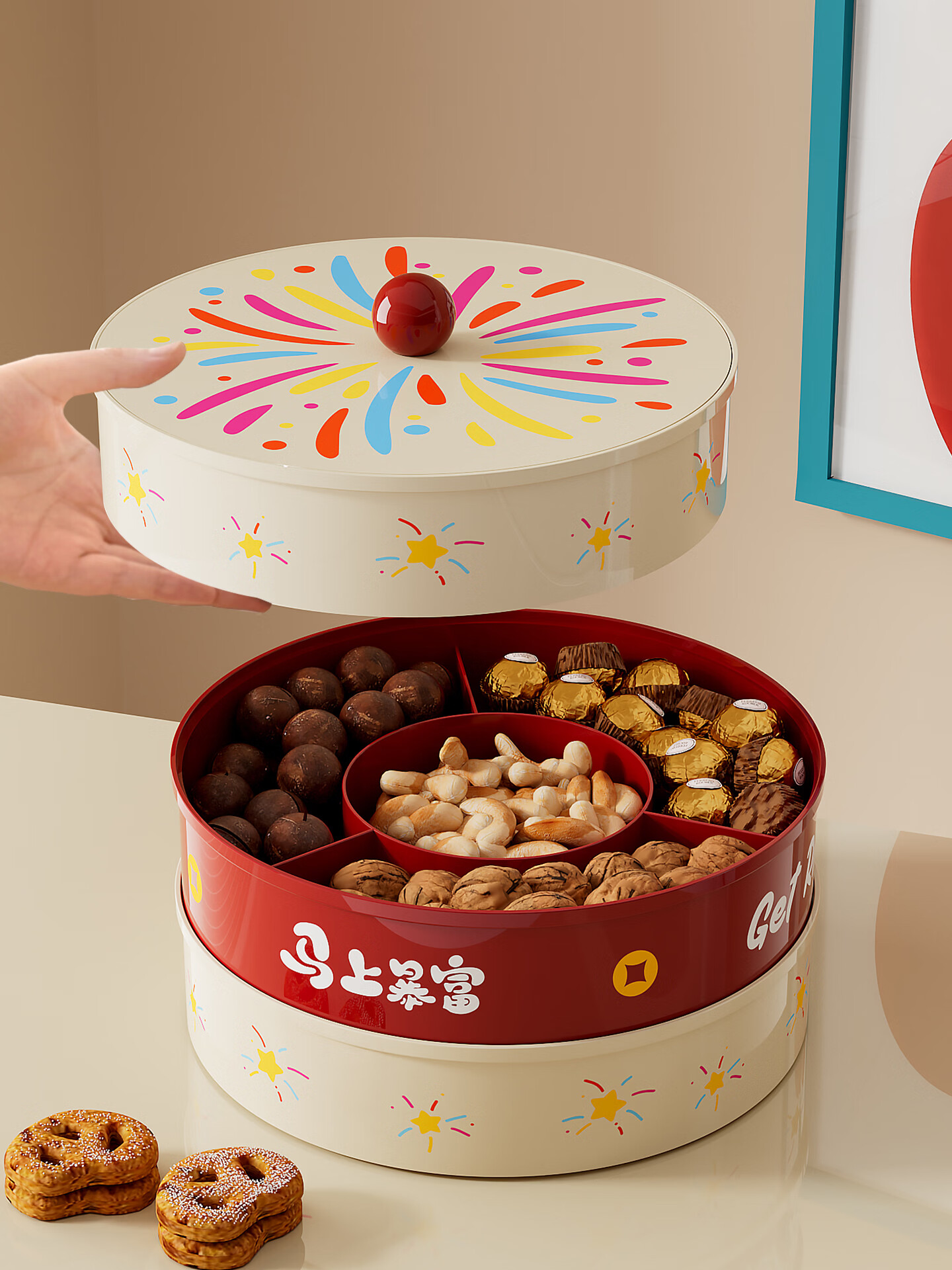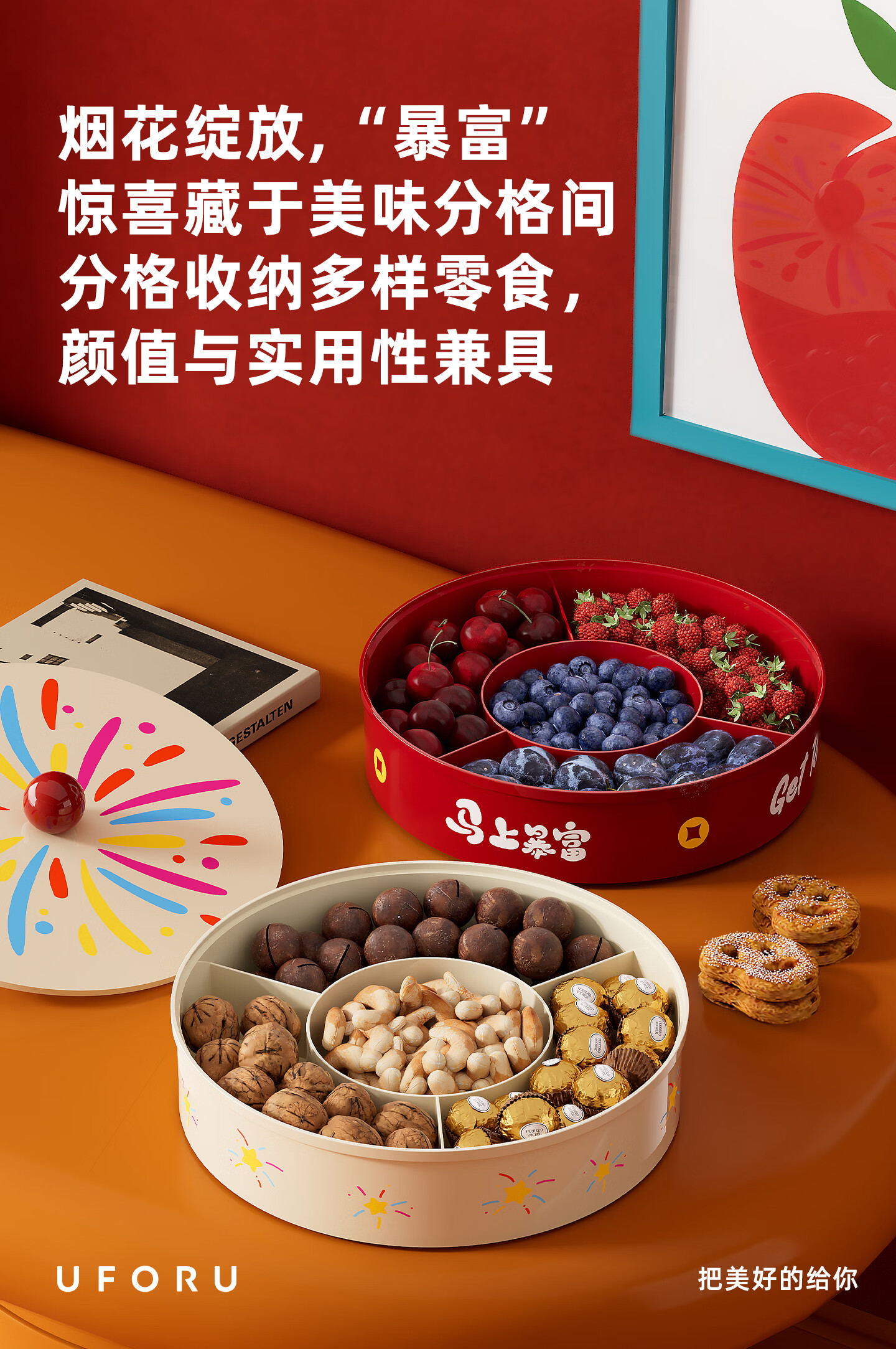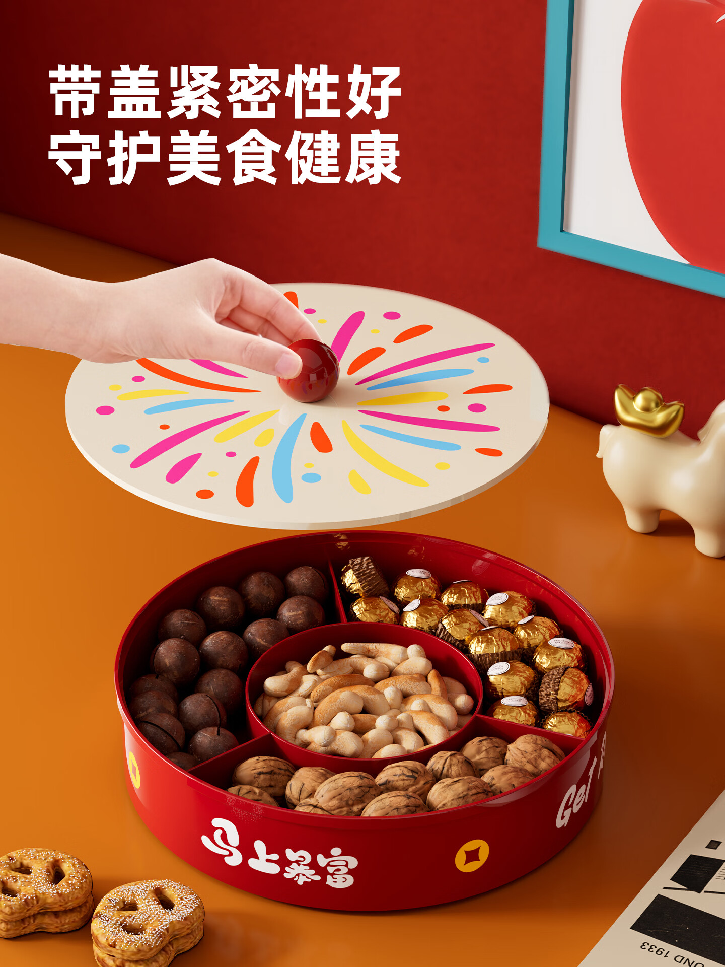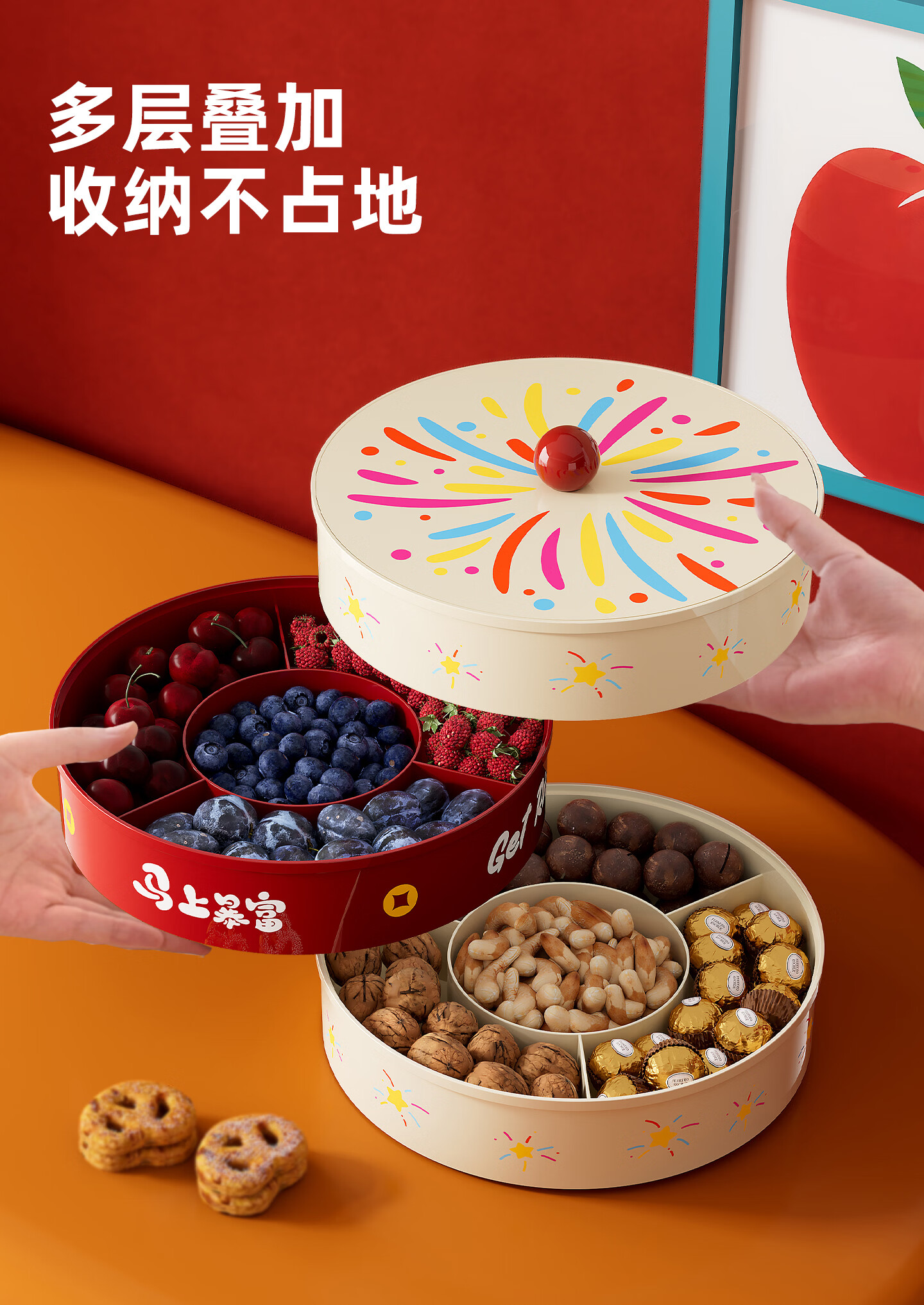 飞达三和果盘客厅高级新中式家用茶几干果水果盘2026新年氛围坚果盘糖果盒 【一层】新年烟花果盘