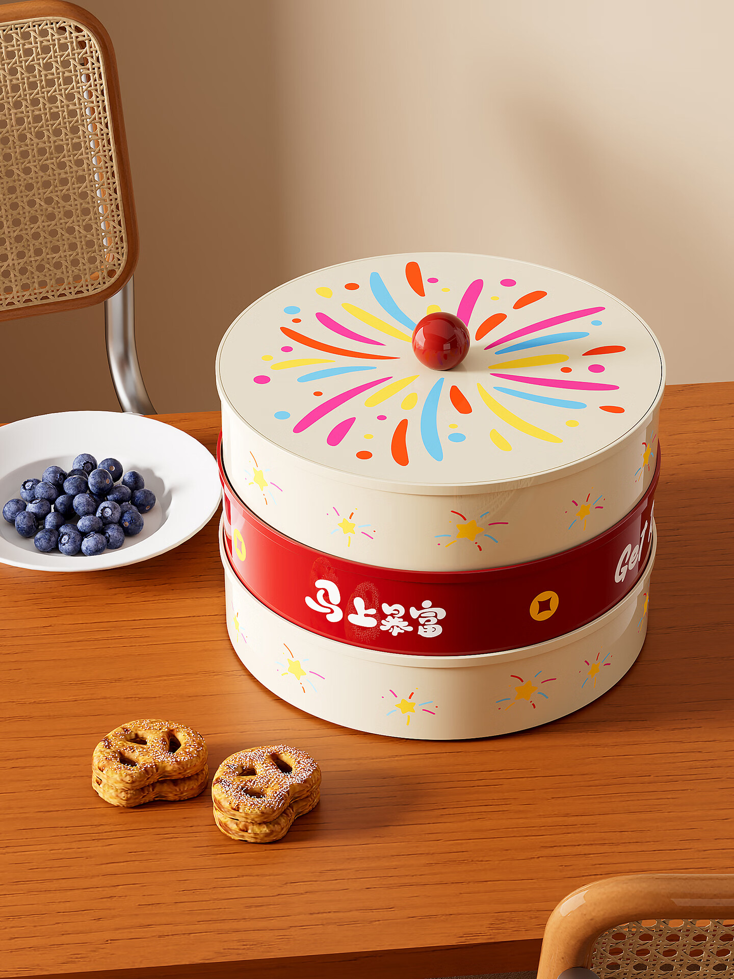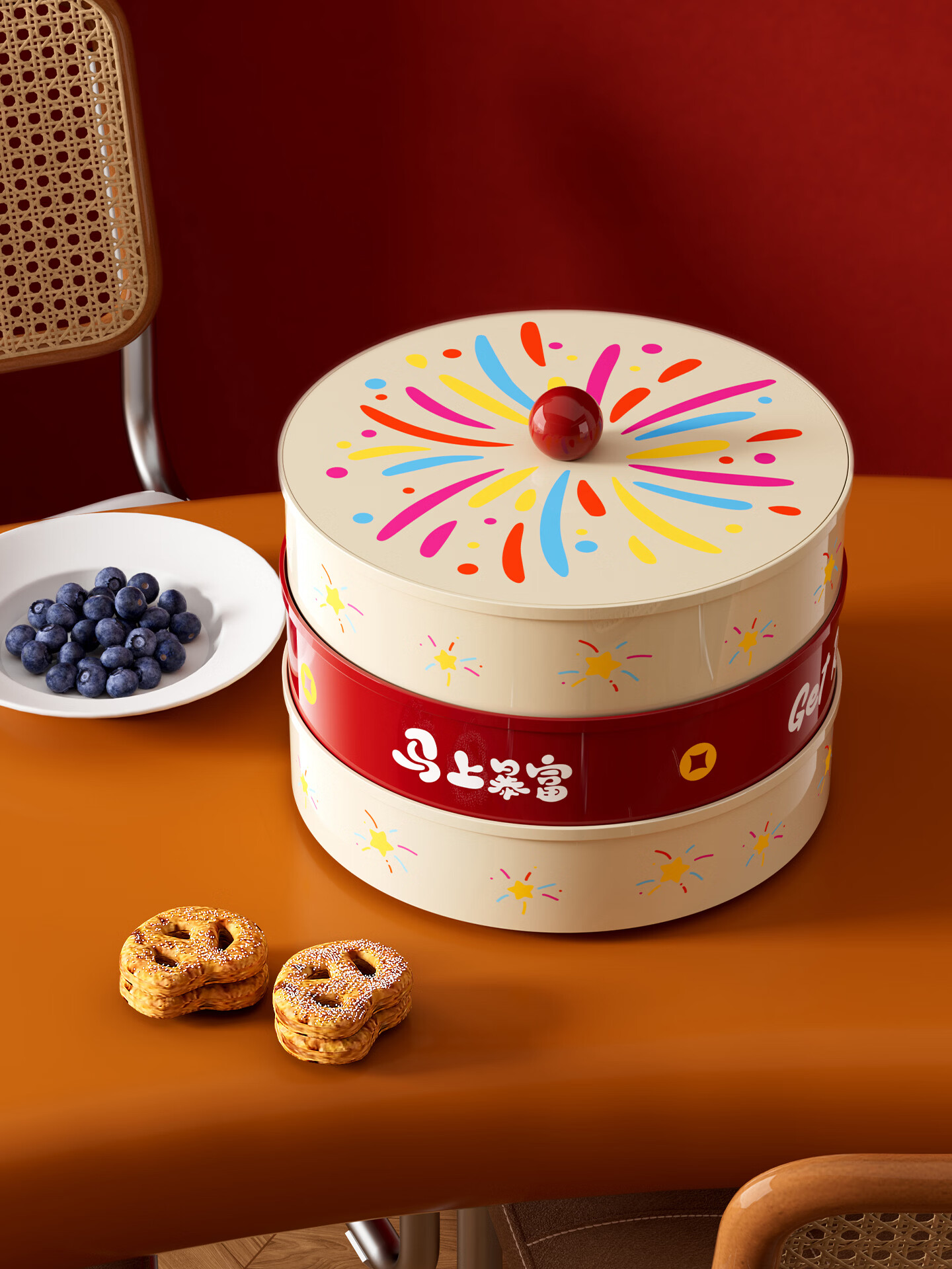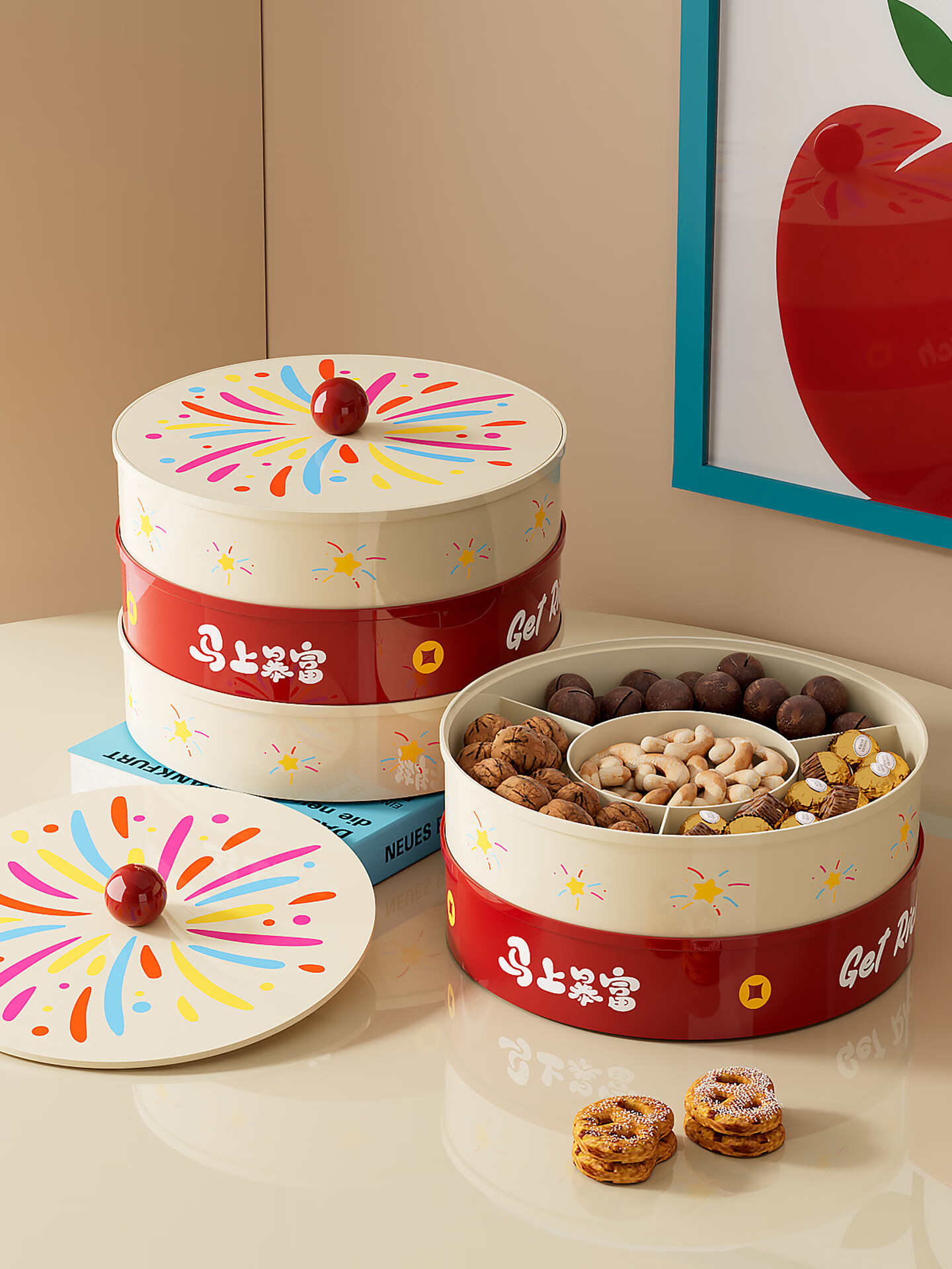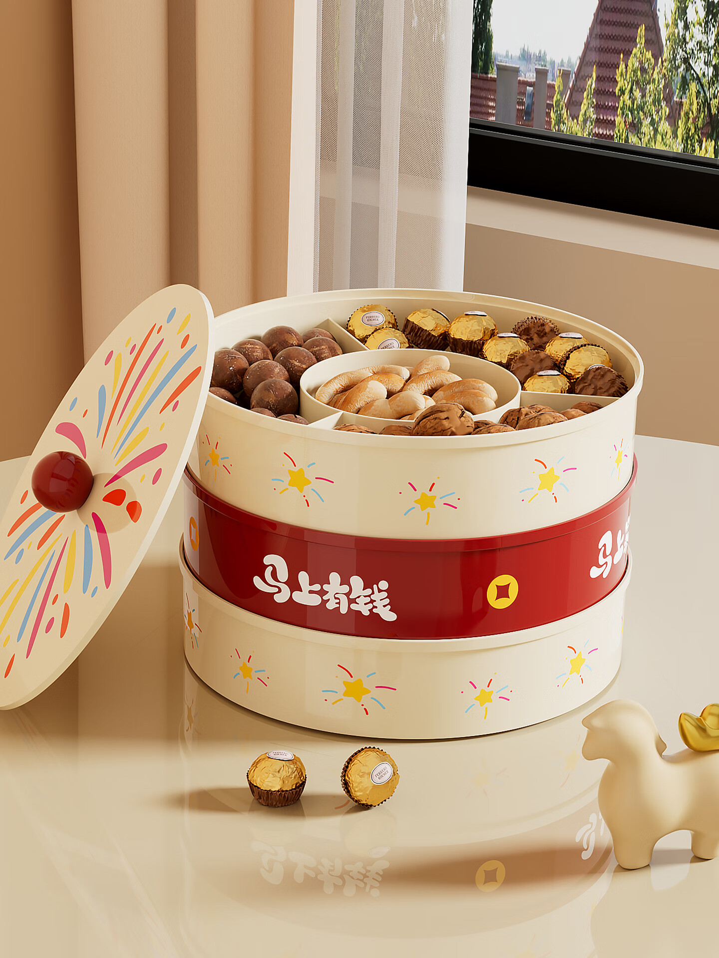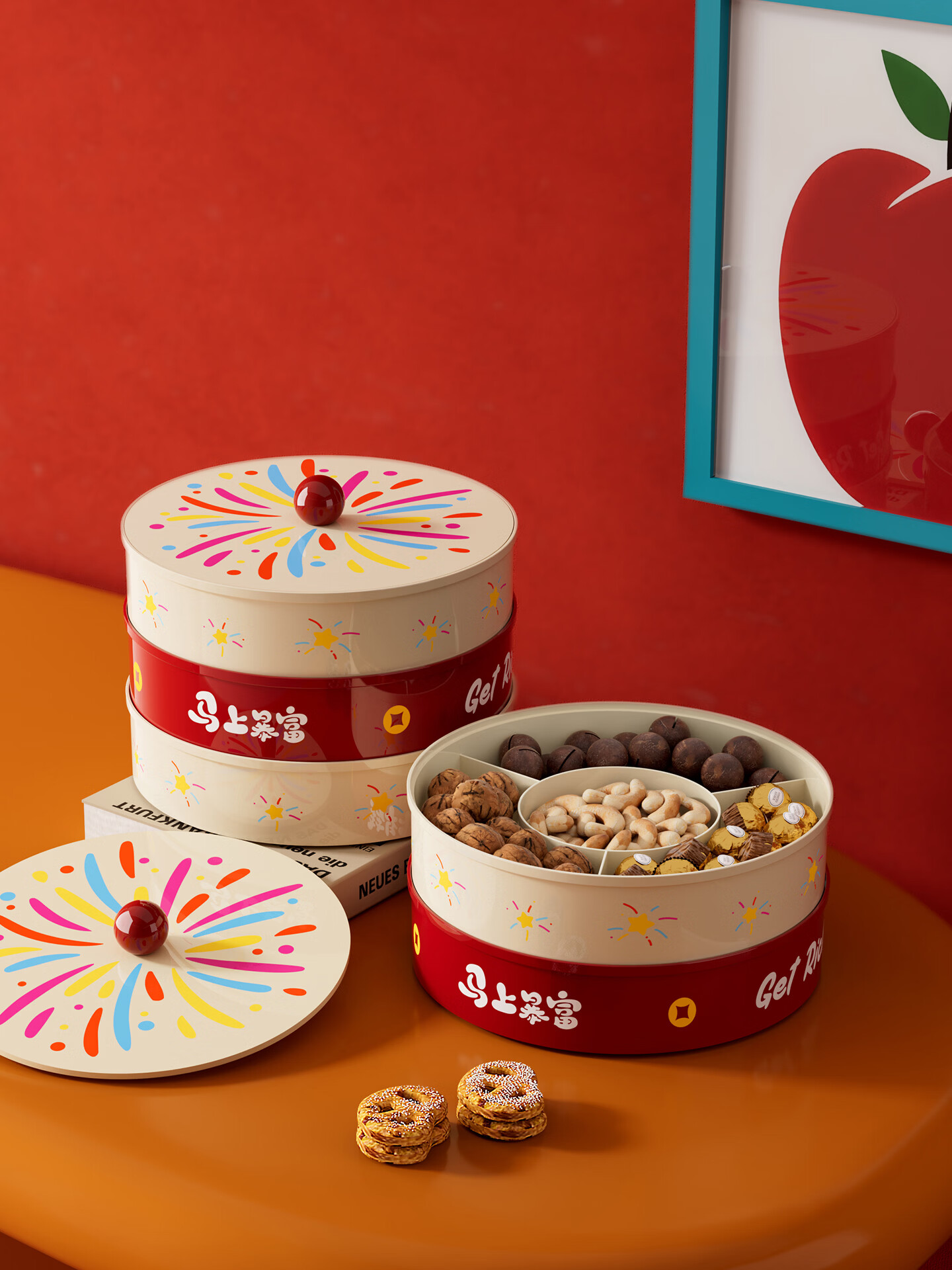 飞达三和果盘客厅高级新中式家用茶几干果水果盘2026新年氛围坚果盘糖果盒 【一层】新年烟花果盘