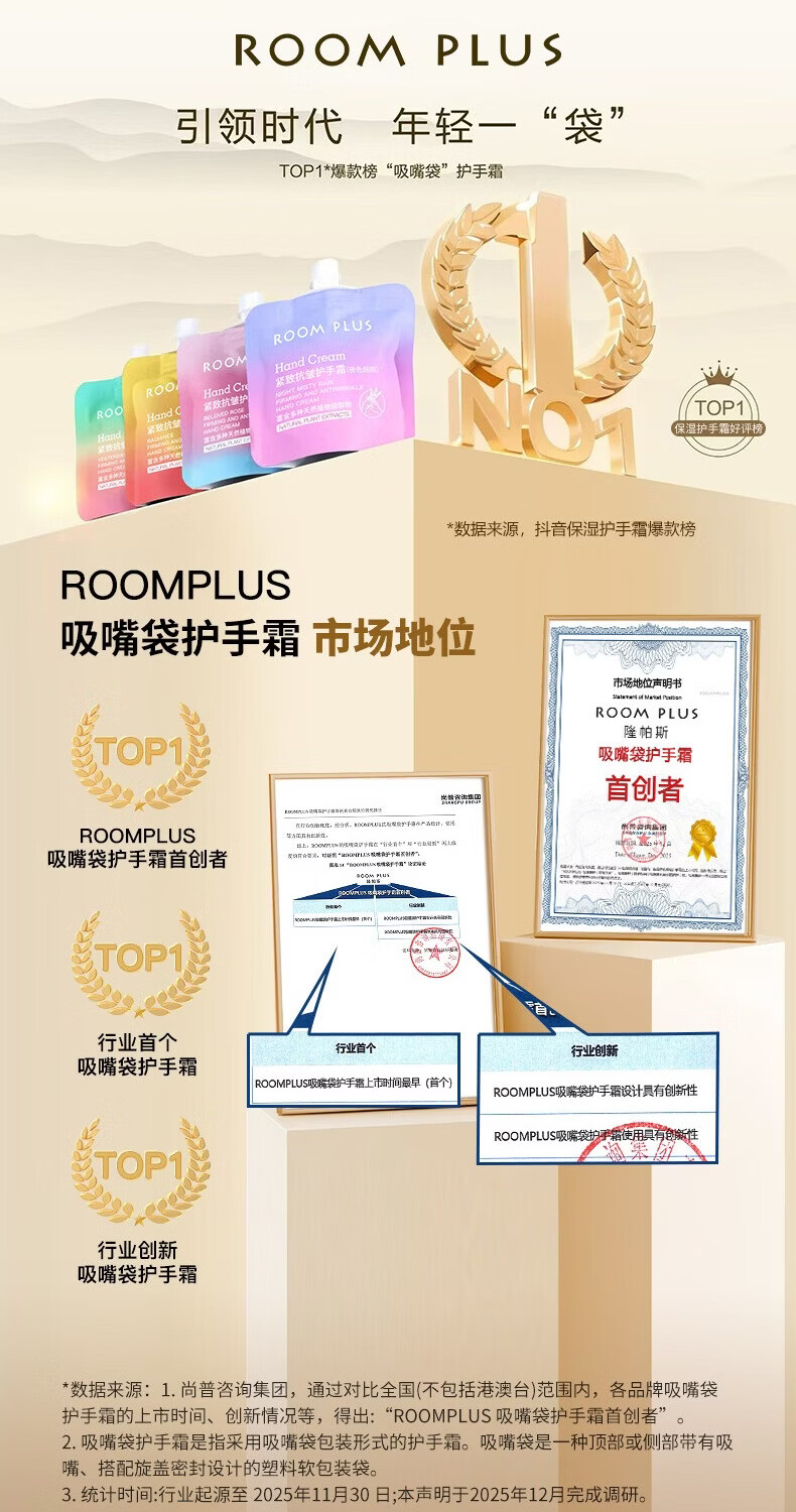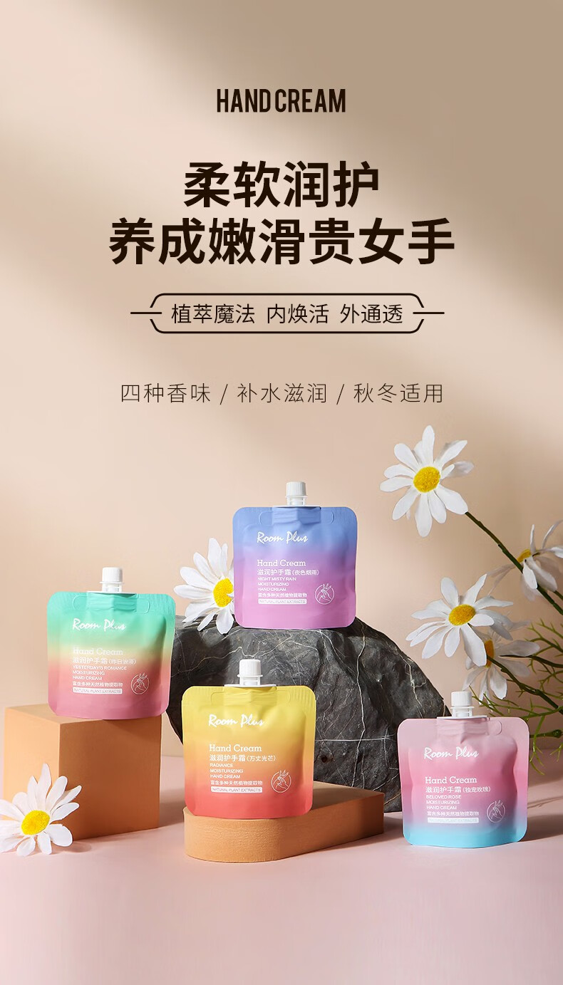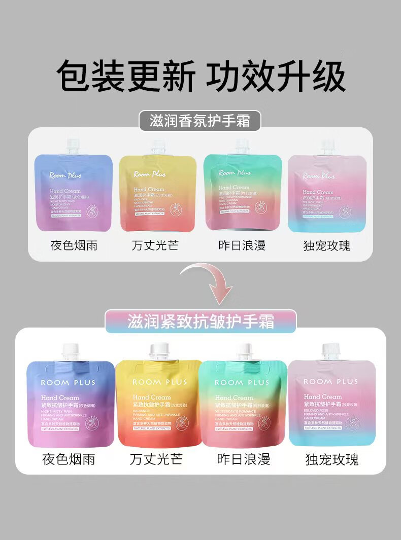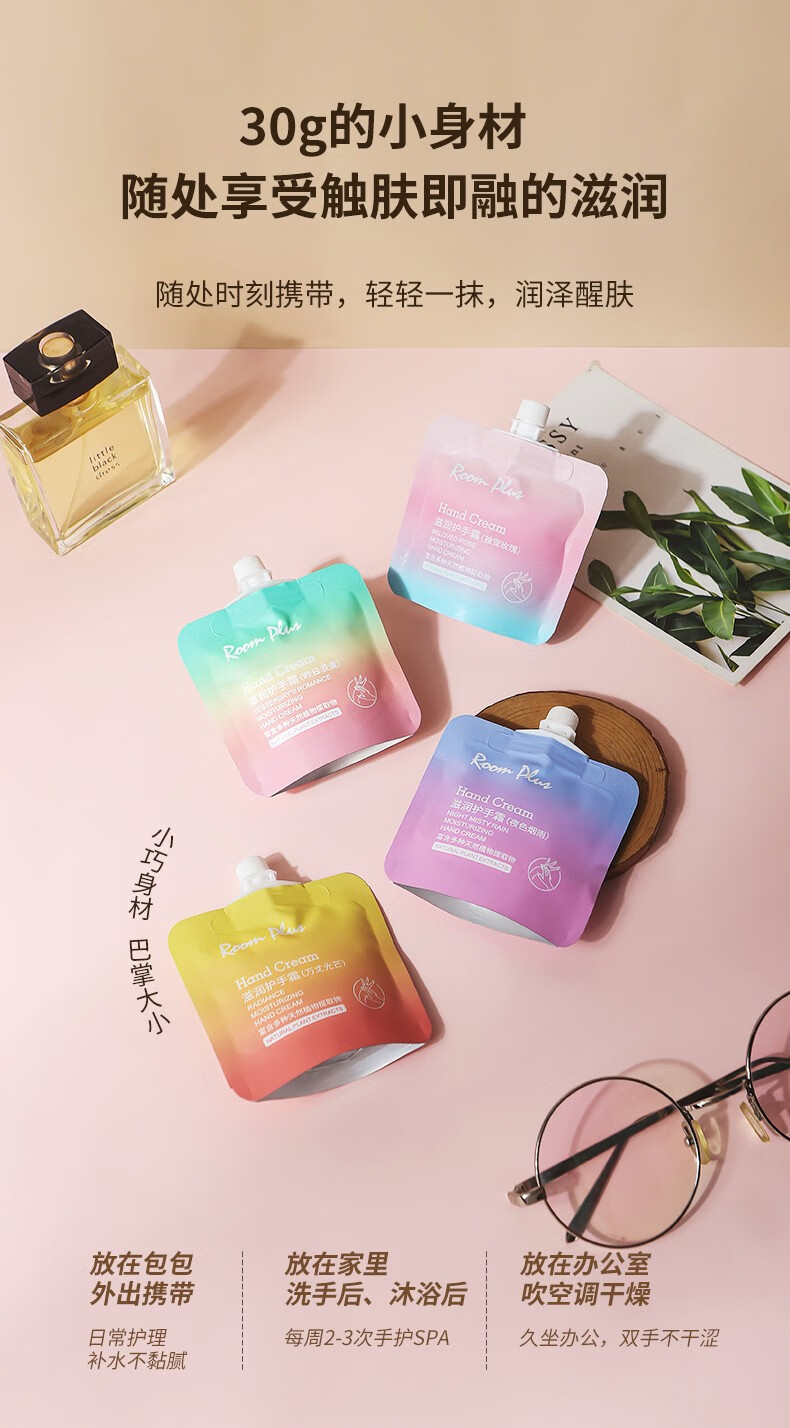 ROOM PLUS护手霜女滋润保湿便携袋装旅行装补水清爽防手足干裂滋润 【保湿滋润】8包组