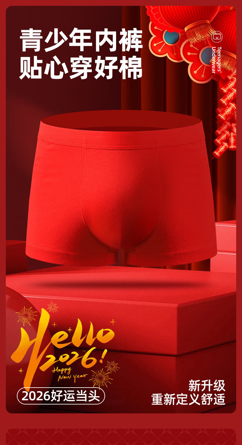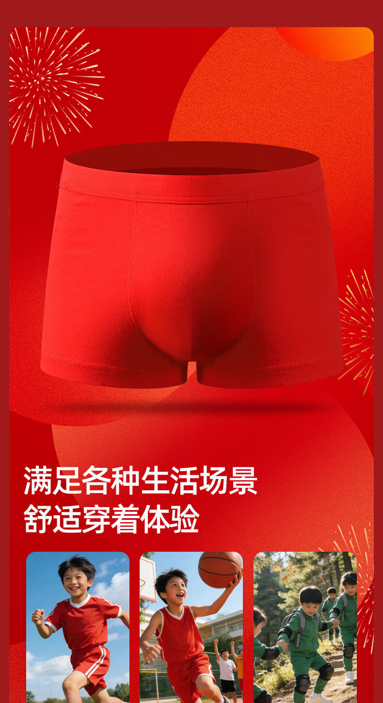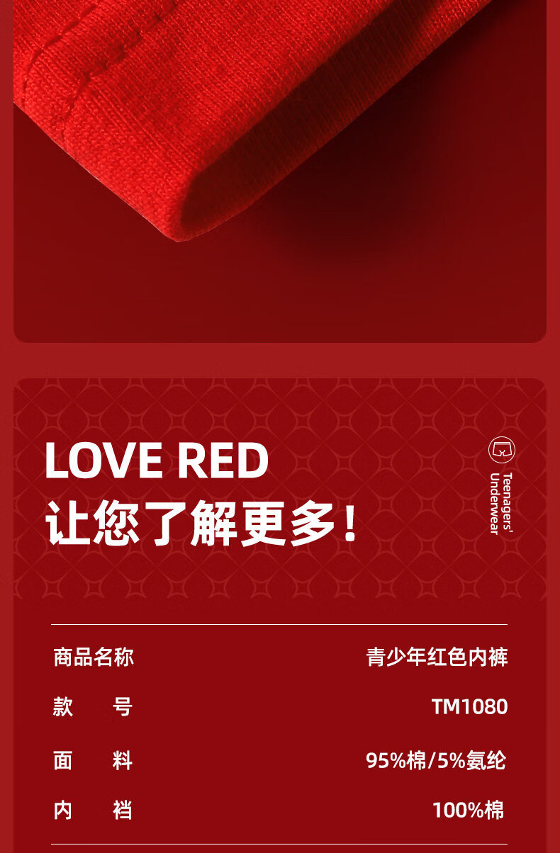 奥元素3件装男童抑菌纯棉内裤本命年中大童12岁青少年男孩红色儿童平角 红色+红色+红色 3条 110 110码 【仅供参考】推荐25-35斤