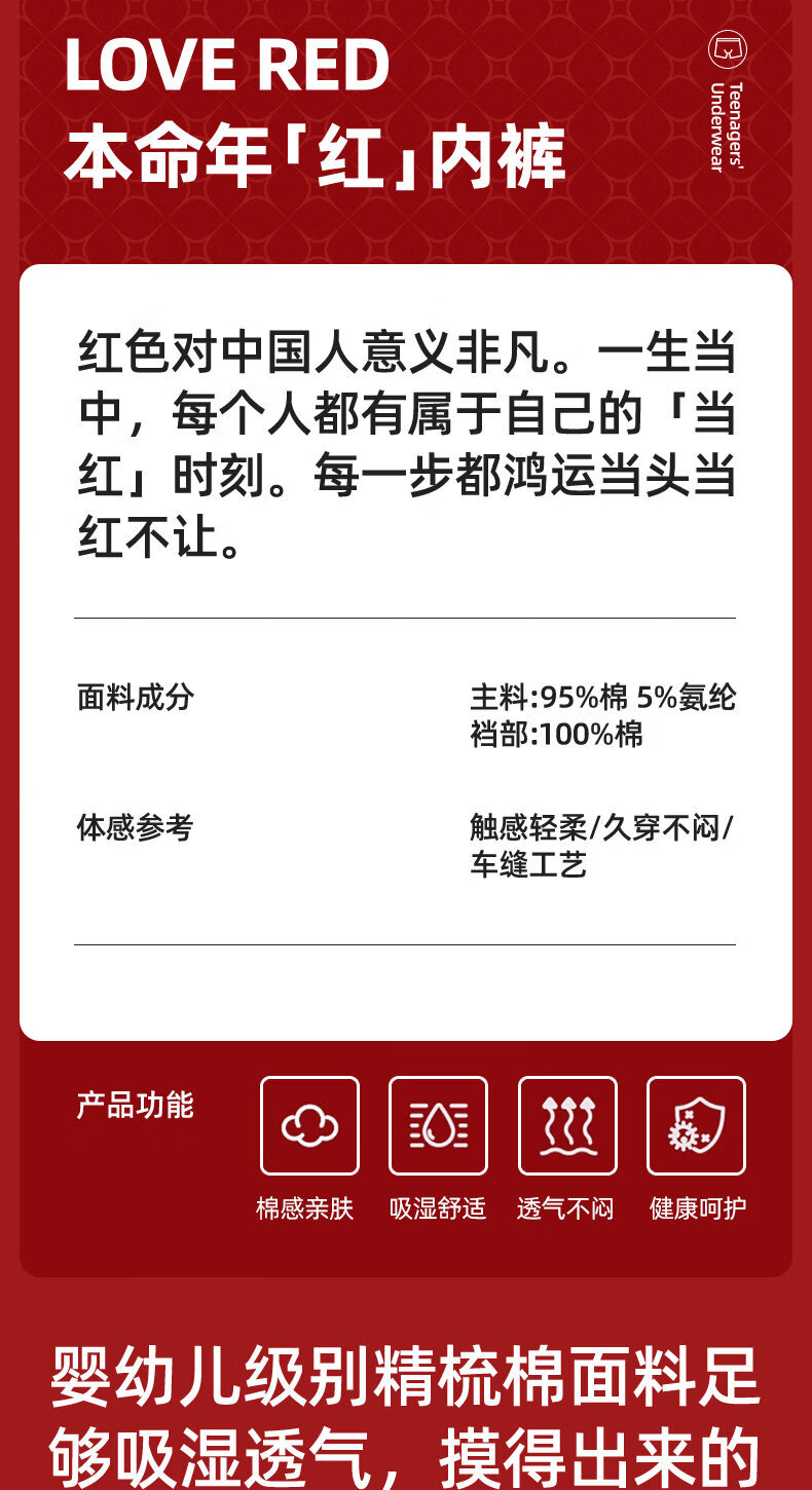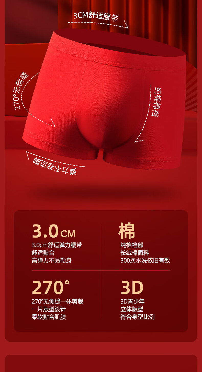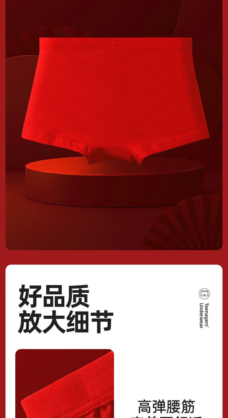 奥元素3件装男童抑菌纯棉内裤本命年中大童12岁青少年男孩红色儿童平角 红色+红色+红色 3条 110 110码 【仅供参考】推荐25-35斤
