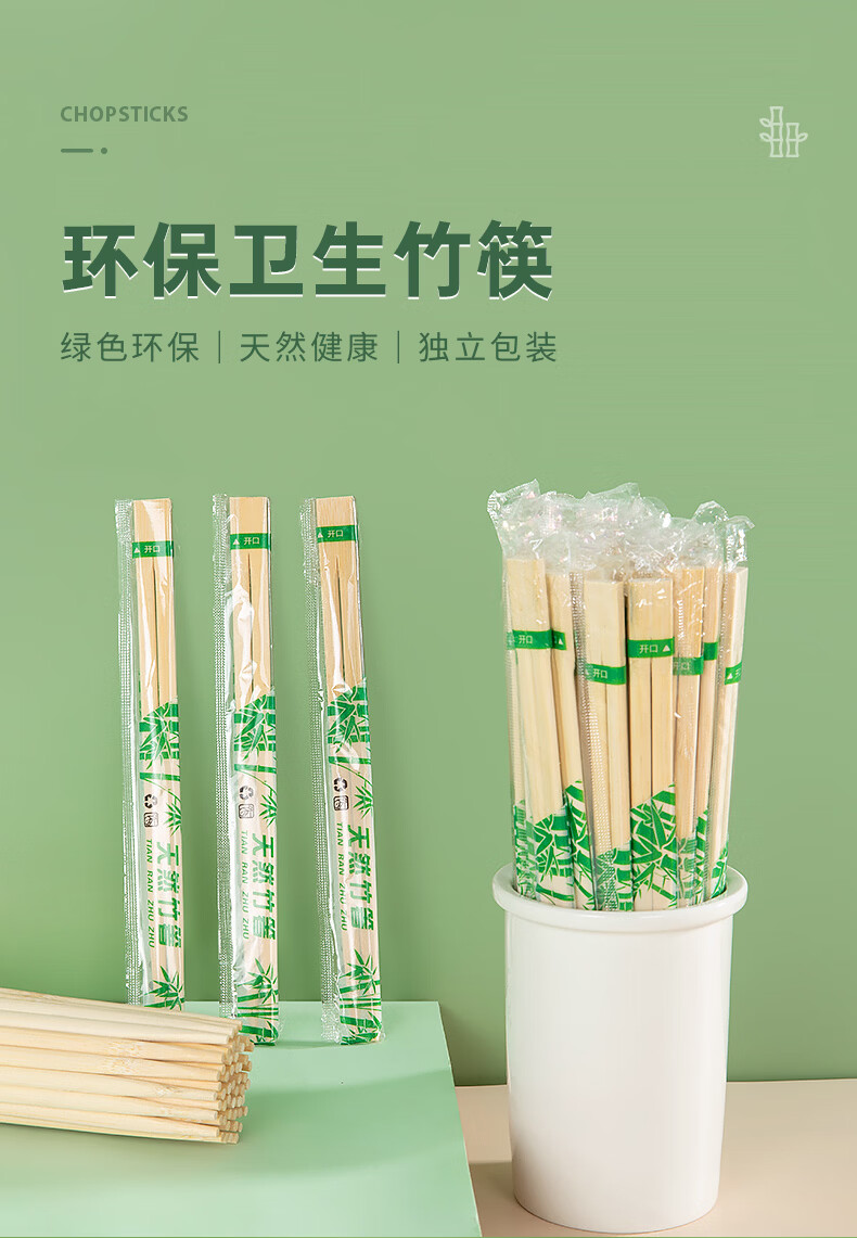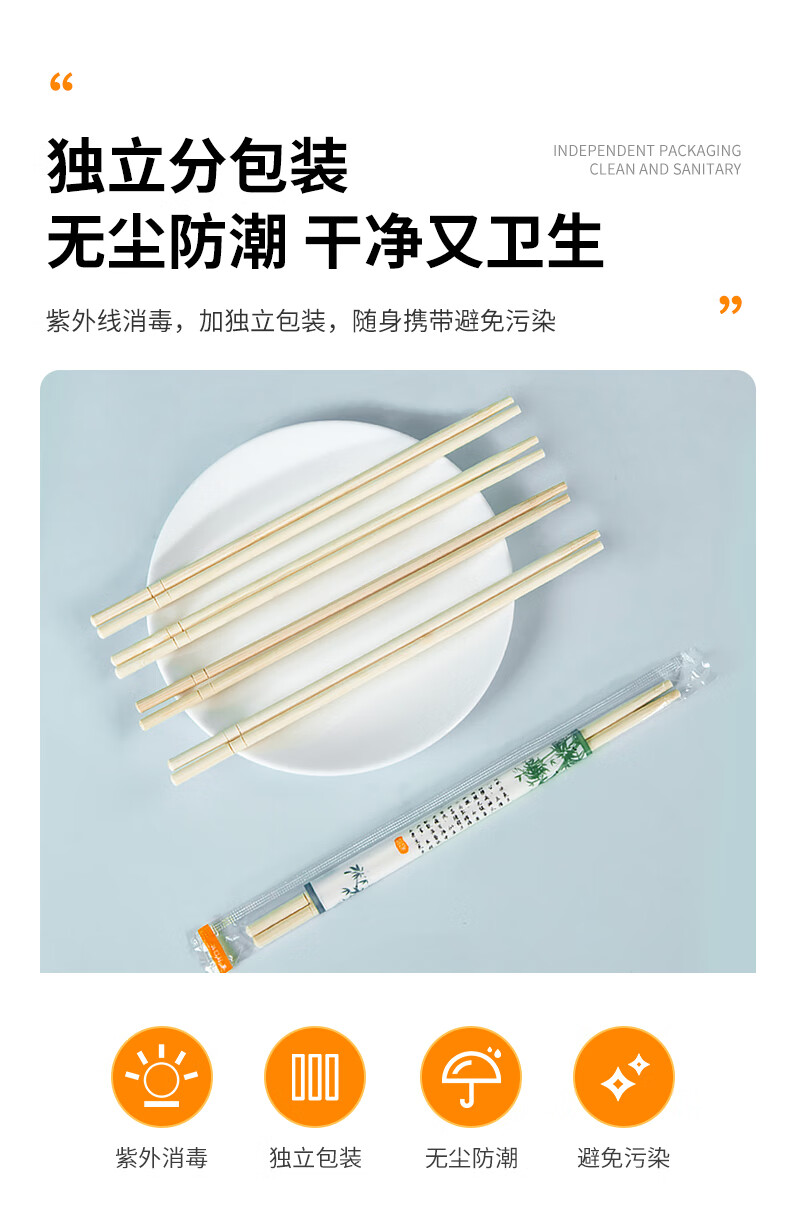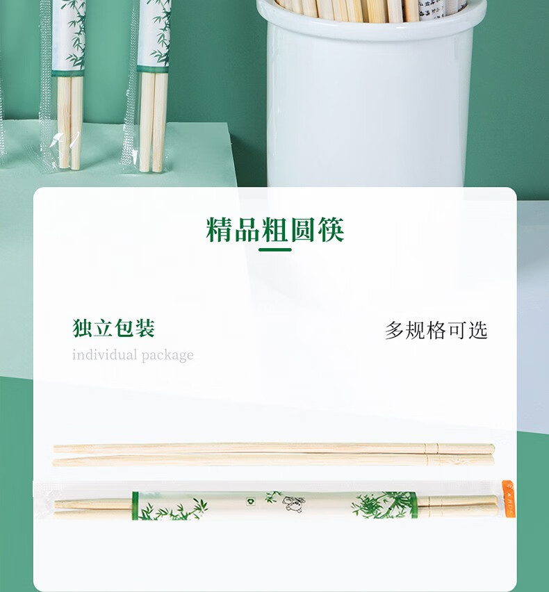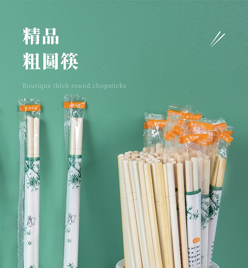 特美居一次性筷子饭店餐厅外卖快餐卫生竹筷方便筷无毛刺独立包装粗圆筷 粗圆筷*270双