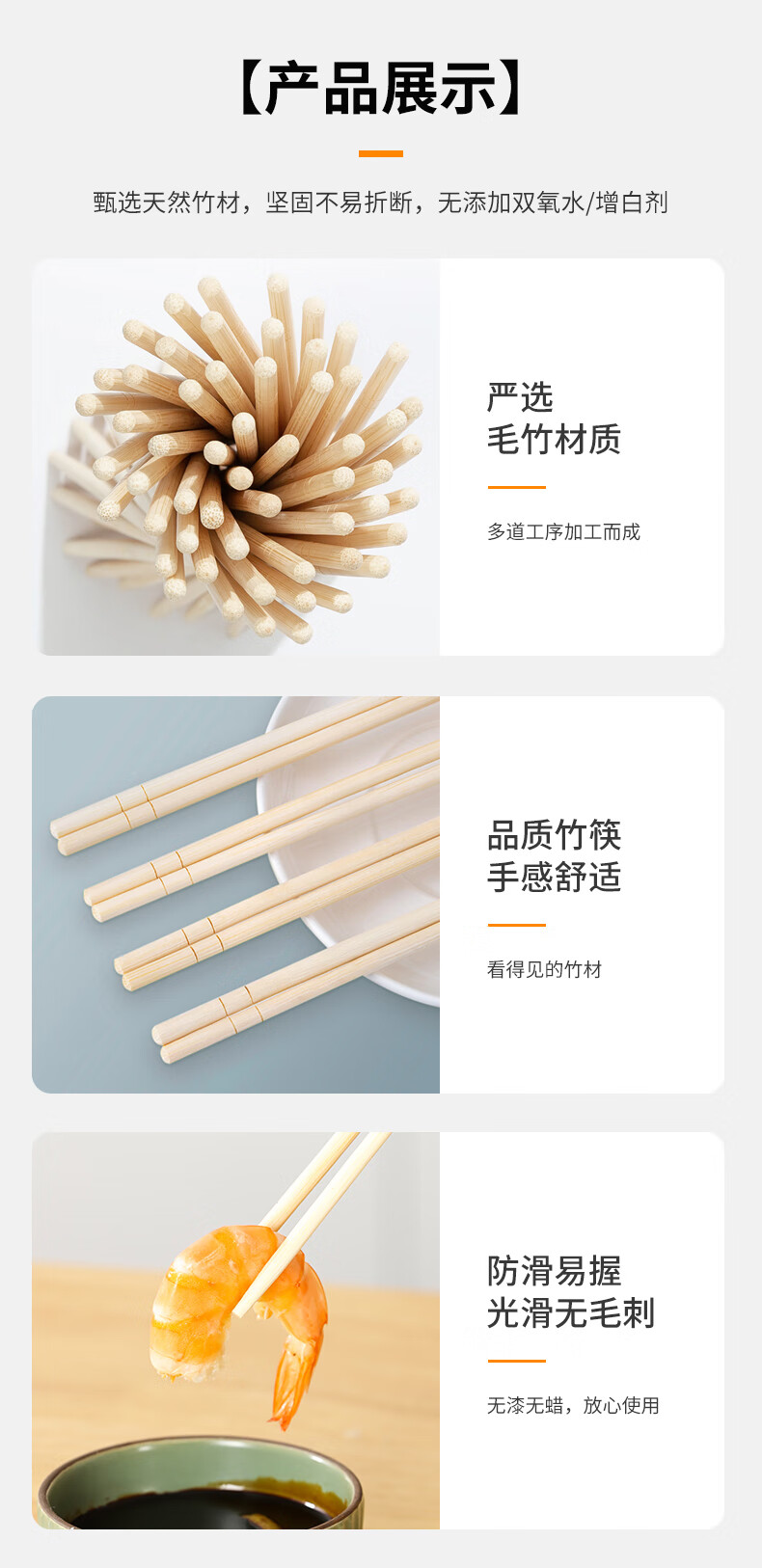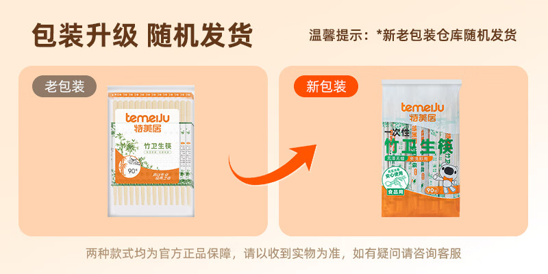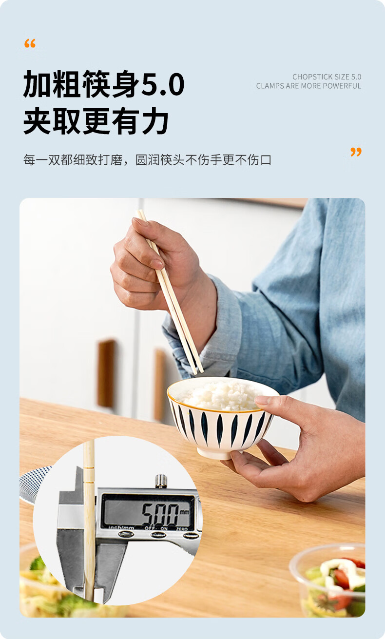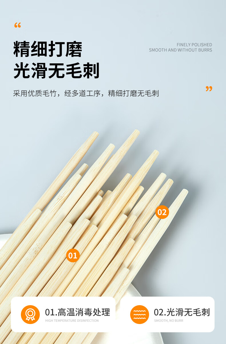 特美居一次性筷子饭店餐厅外卖快餐卫生竹筷方便筷无毛刺独立包装粗圆筷 粗圆筷*270双