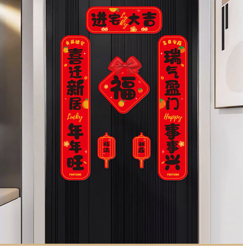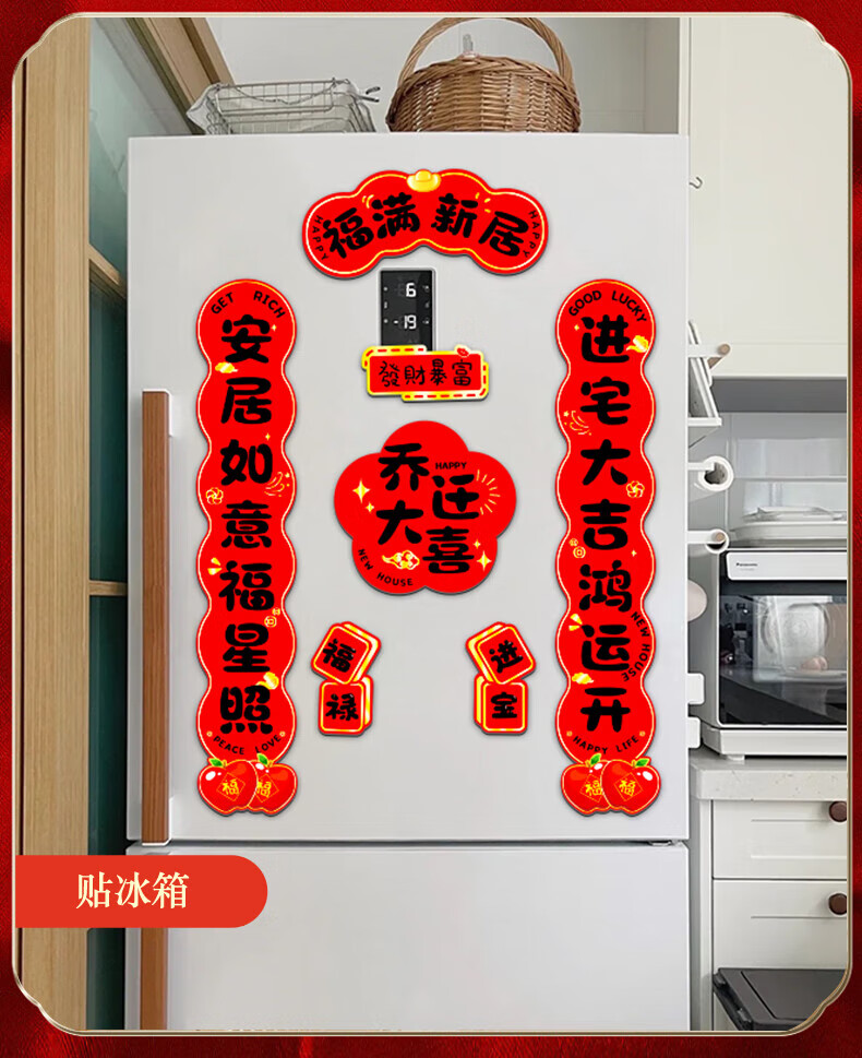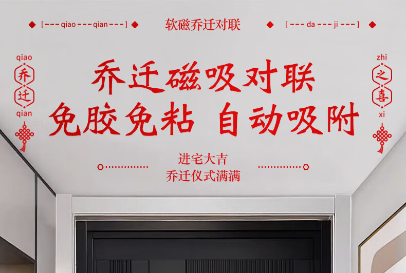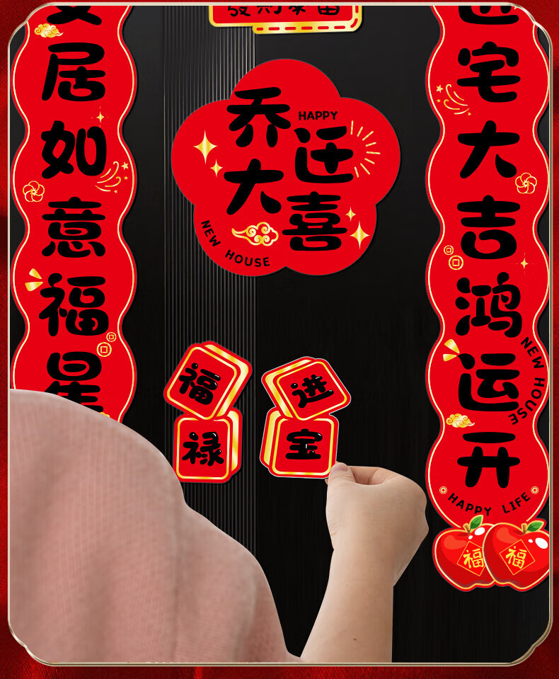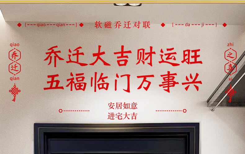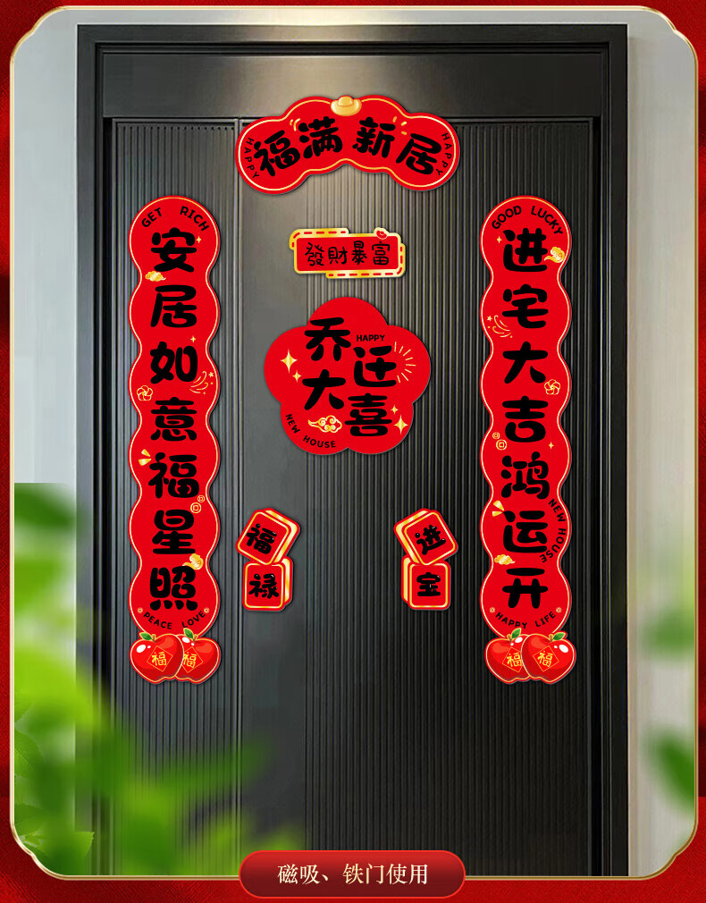 玖岩乔迁之喜对联磁吸新居2025年新款入户门贴联布置装饰搬家仪式用品 【对联】 安居如意平安-6件套 磁吸胶贴两用款
