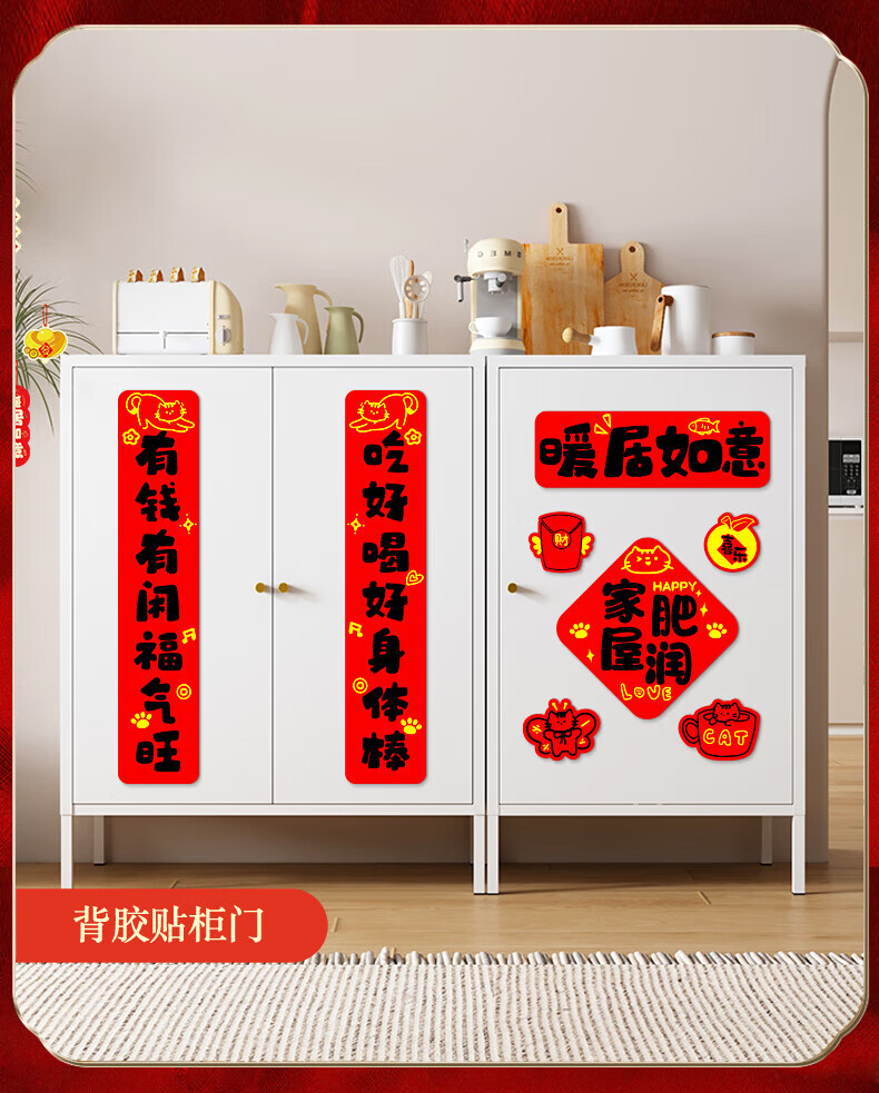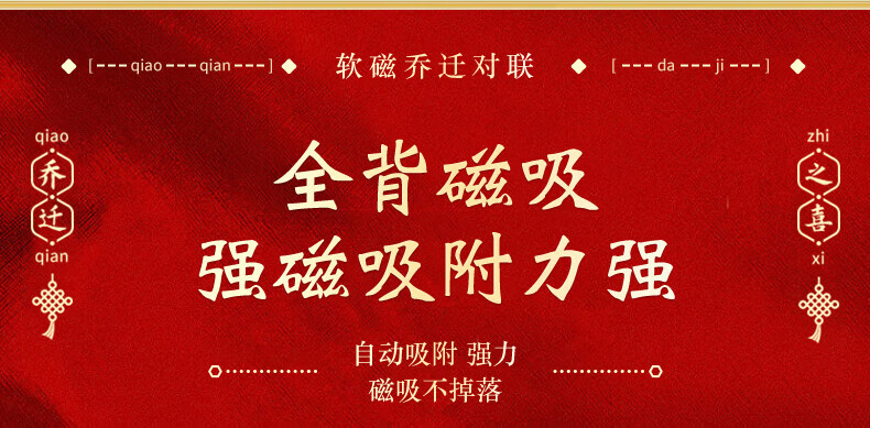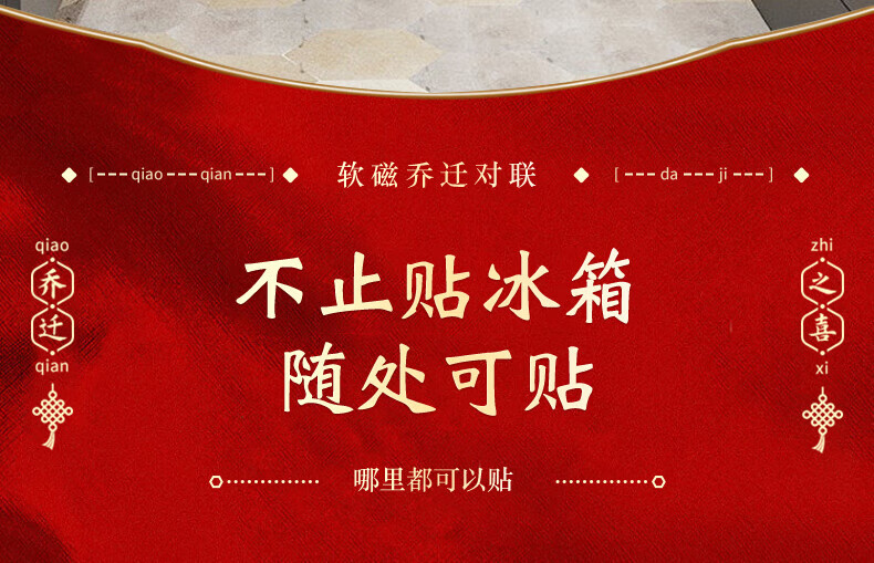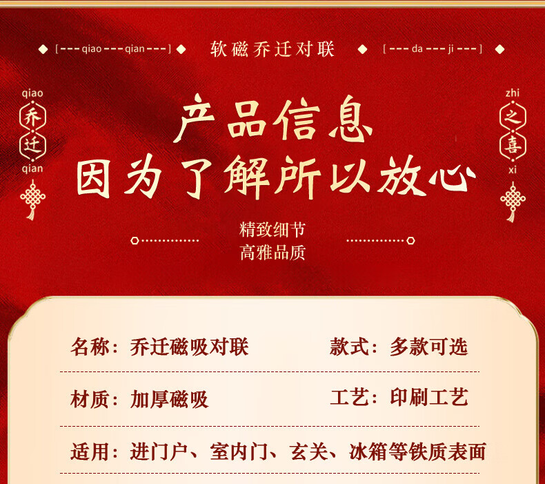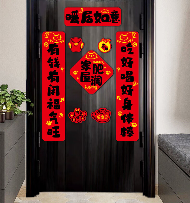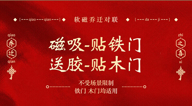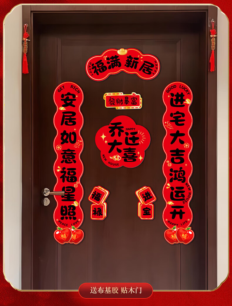 玖岩乔迁之喜对联磁吸新居2025年新款入户门贴联布置装饰搬家仪式用品 【对联】 安居如意平安-6件套 磁吸胶贴两用款