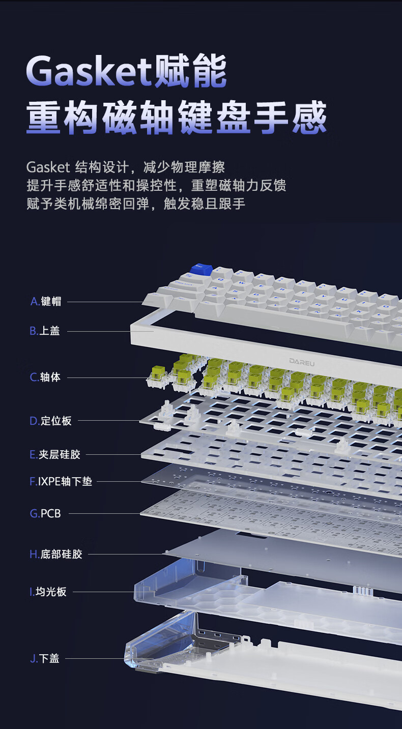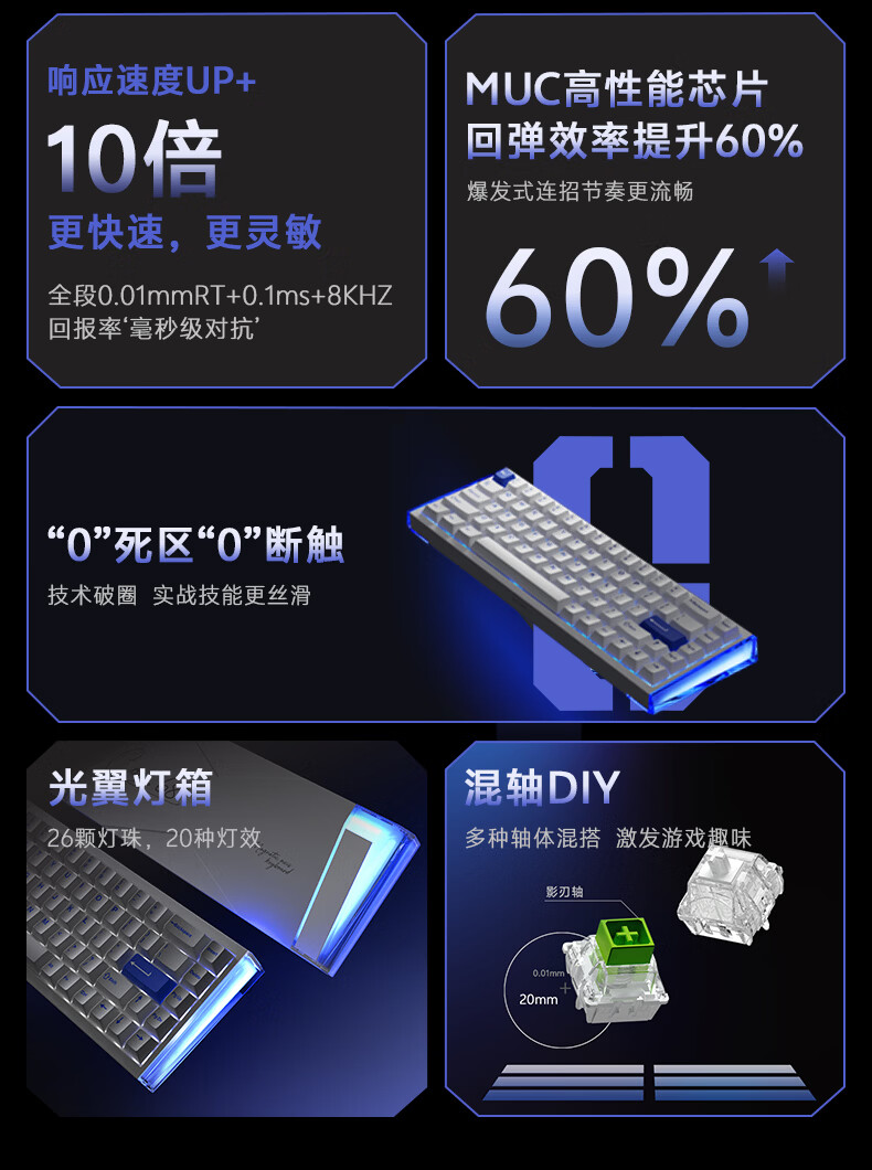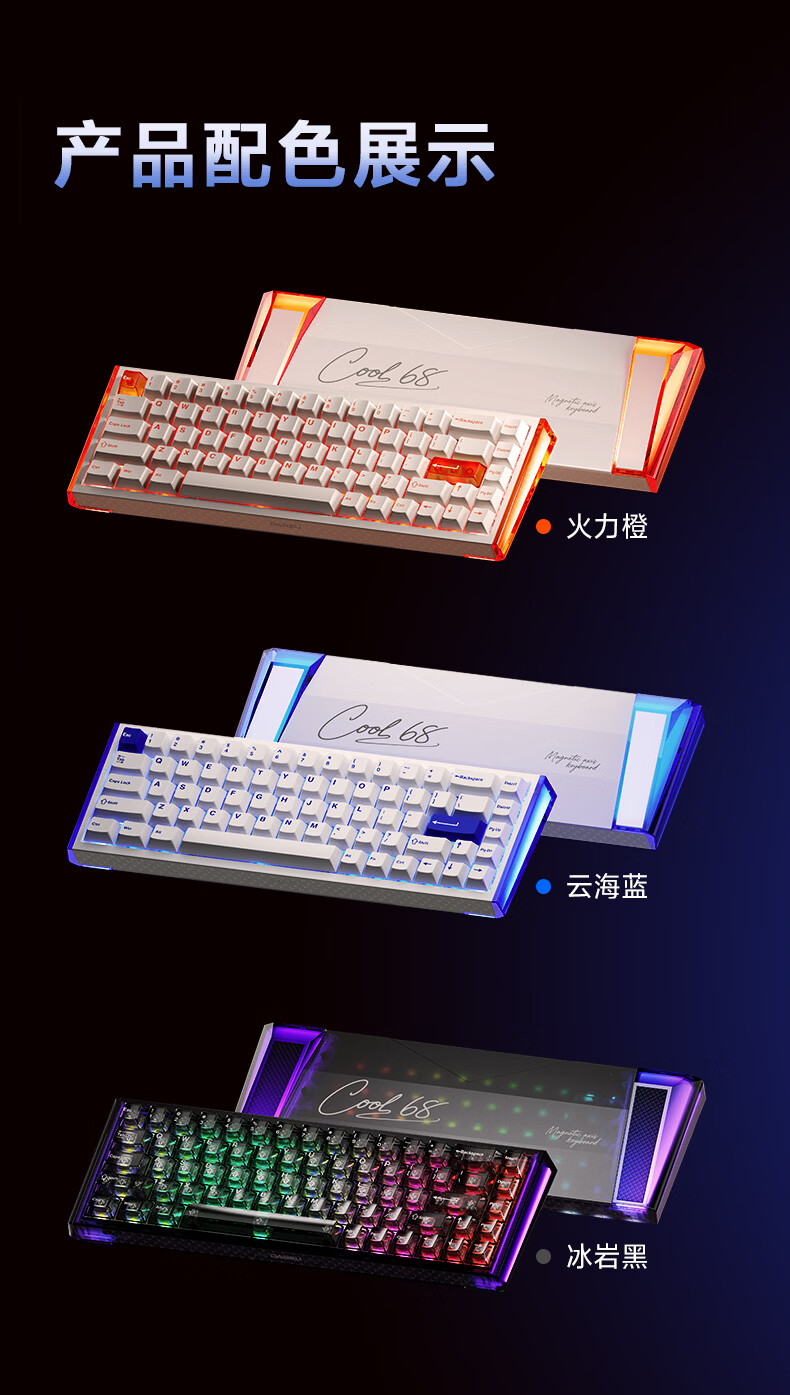 达尔优Cool68 磁轴电竞游戏机械键盘 客制化有线侧翼灯光透明键盘三角洲 无畏契约FPS网页双驱动炫酷灯箱 透明版(冰刃磁轴)