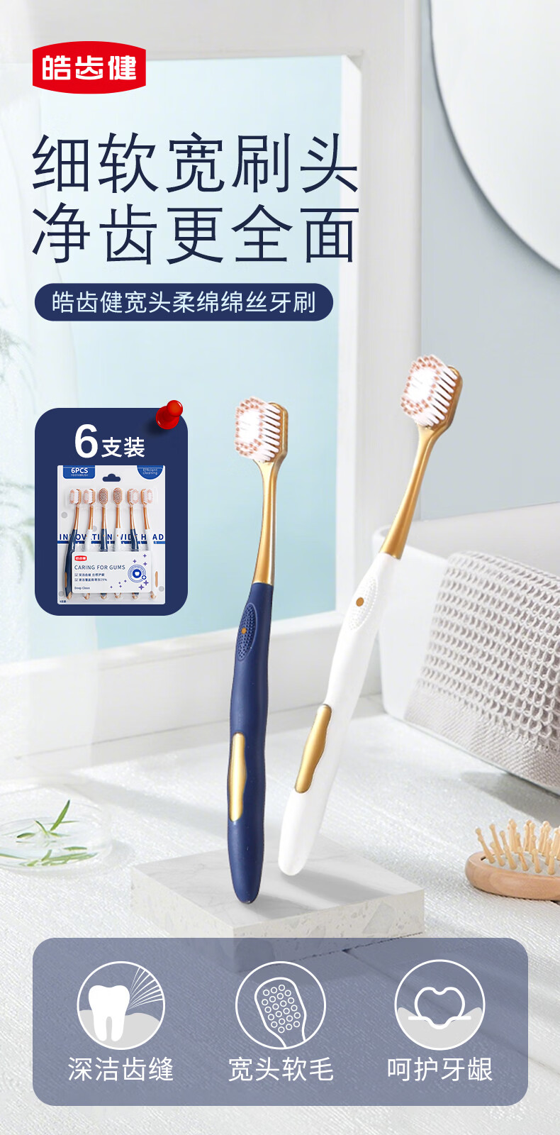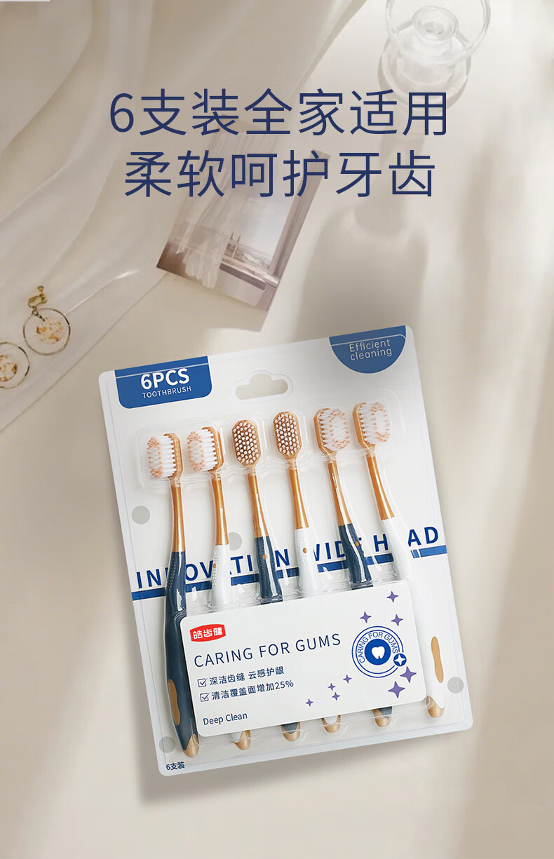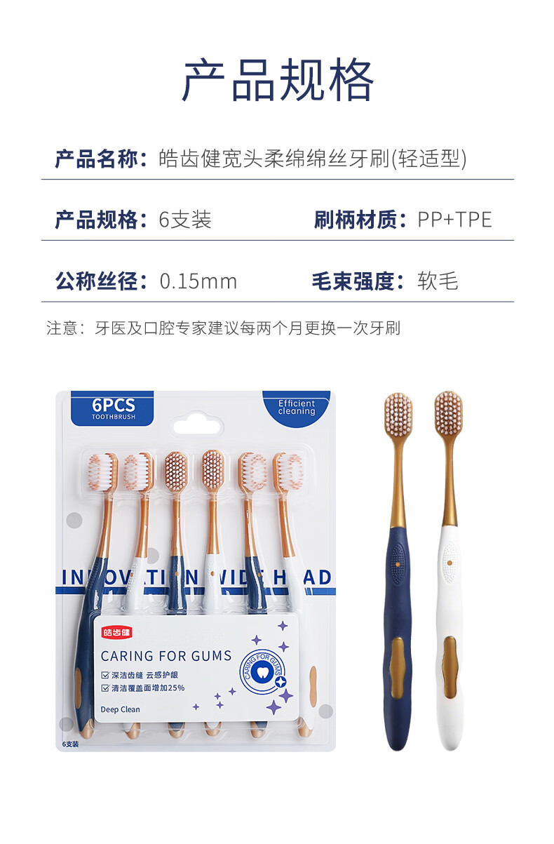 皓齿健(Hosjam)宽头柔绵绵丝牙刷(轻适型) 加宽呵护牙龈清洁口气 情侣款家庭装 宽头柔绵绵丝牙刷 18支