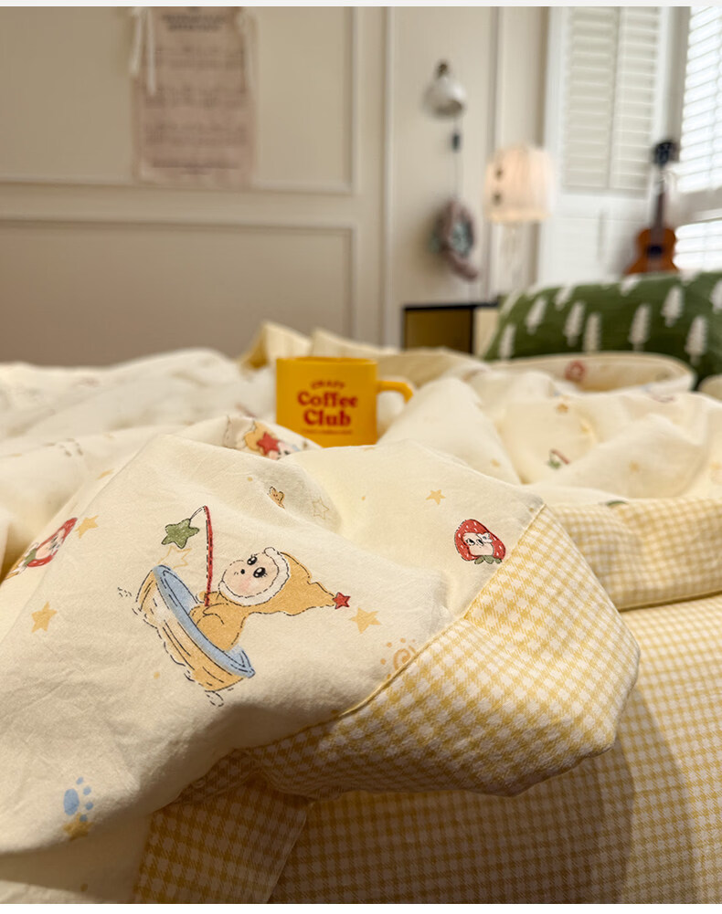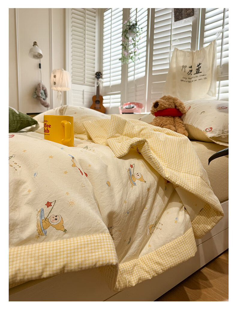无印良品100%全棉床上四件套纯棉2026新款卡通狗狗被套床单床笠款床品套件 黑白西高地【100%全棉亲肤柔软】 床单款 1.8m四件套-被套200x230cm