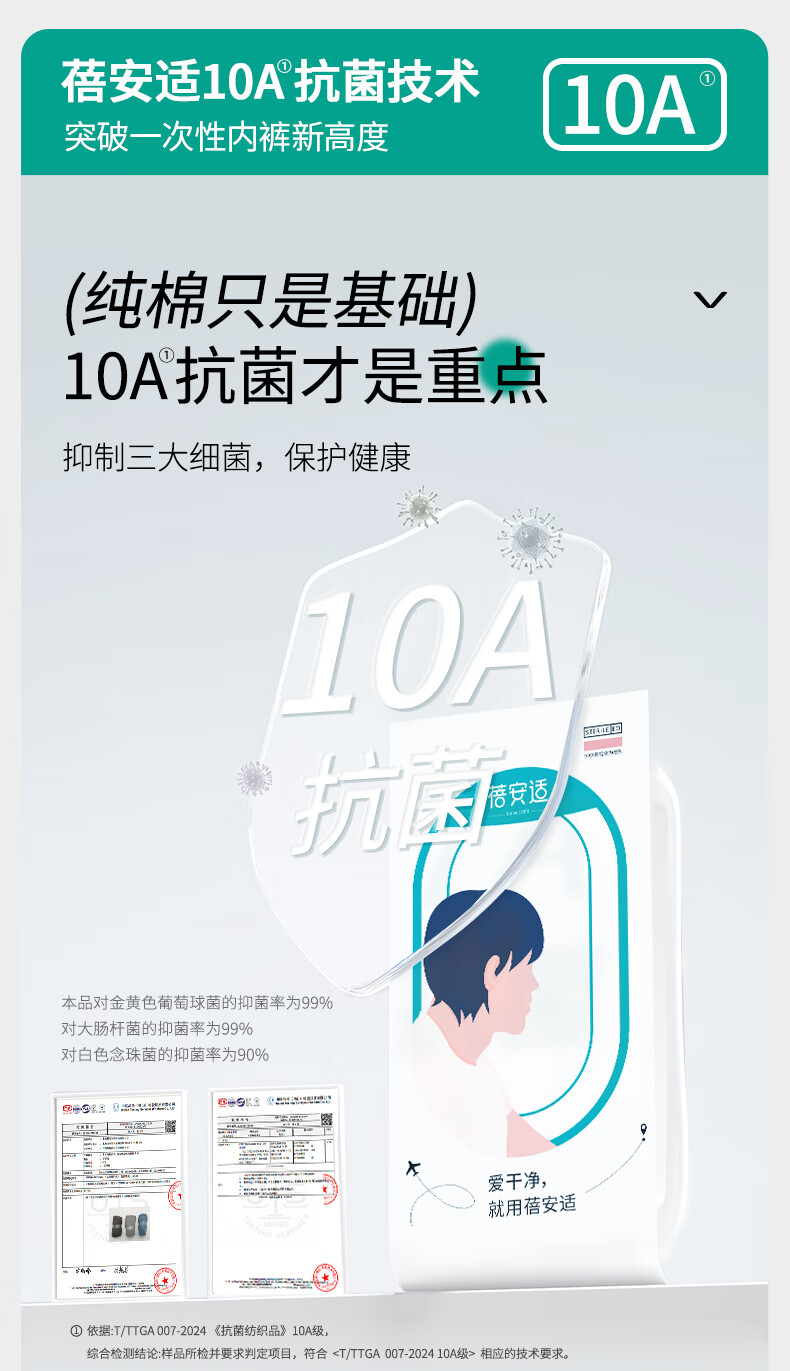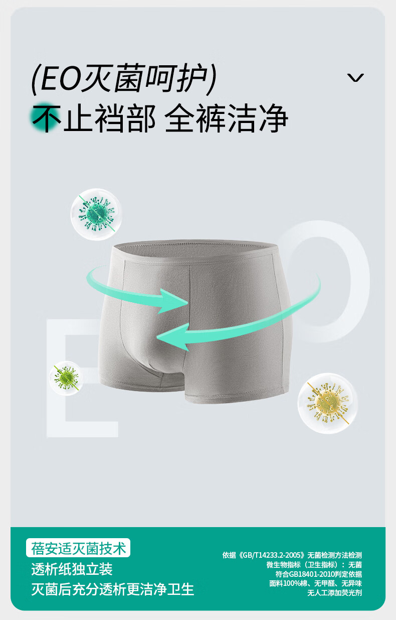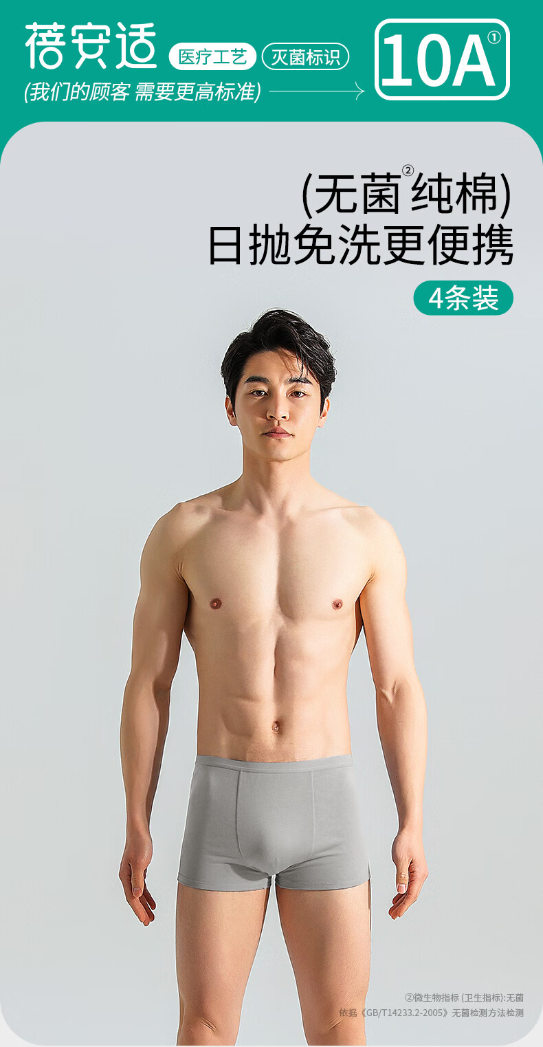 蓓安适男士一次性内裤10A抗菌【100%新疆棉】出差旅行 3XL码 4条