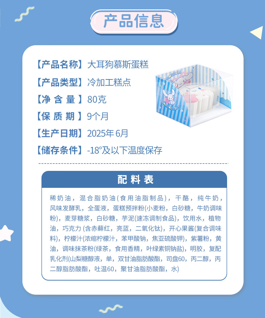 达瑞品尚 玉桂大耳狗生日慕斯蛋糕 三丽鸥下午茶零食生日礼物送女生 80g