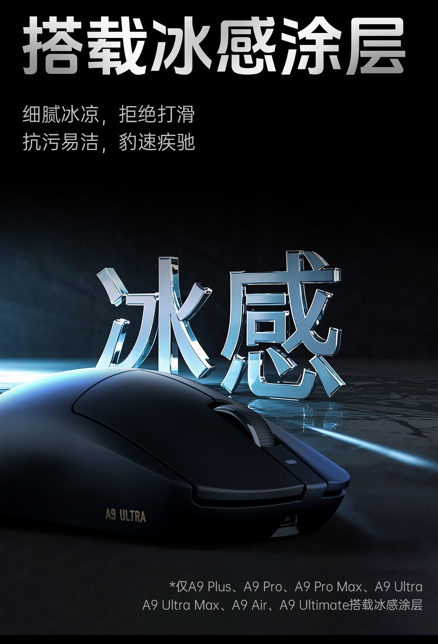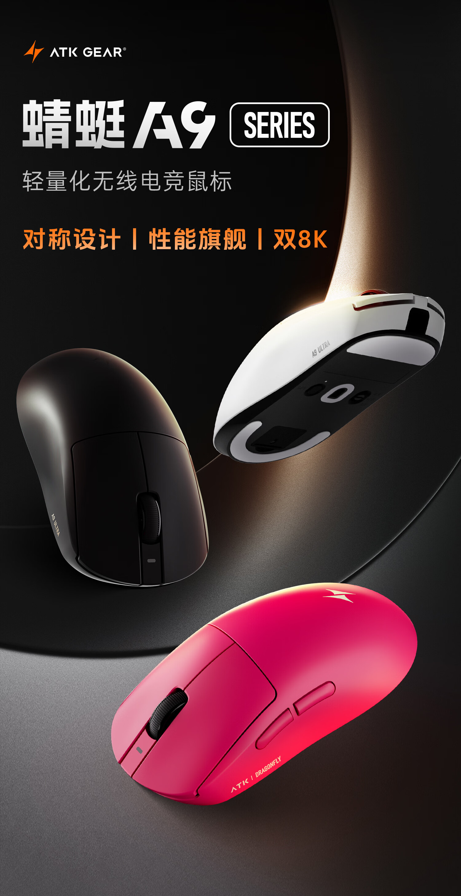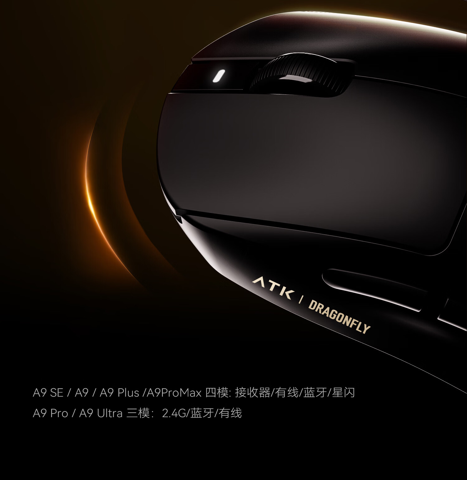ATK 蜻蜓A9无线鼠标电竞游戏办公鼠标 有线/蓝牙/2.4G/星闪三模连接轻量化对称极简工学 A9 Plus 黑色