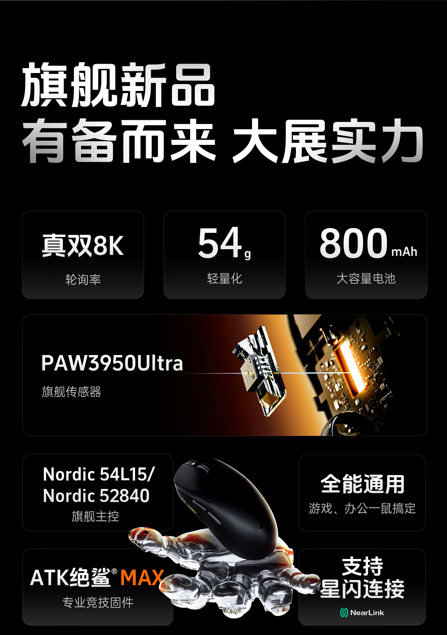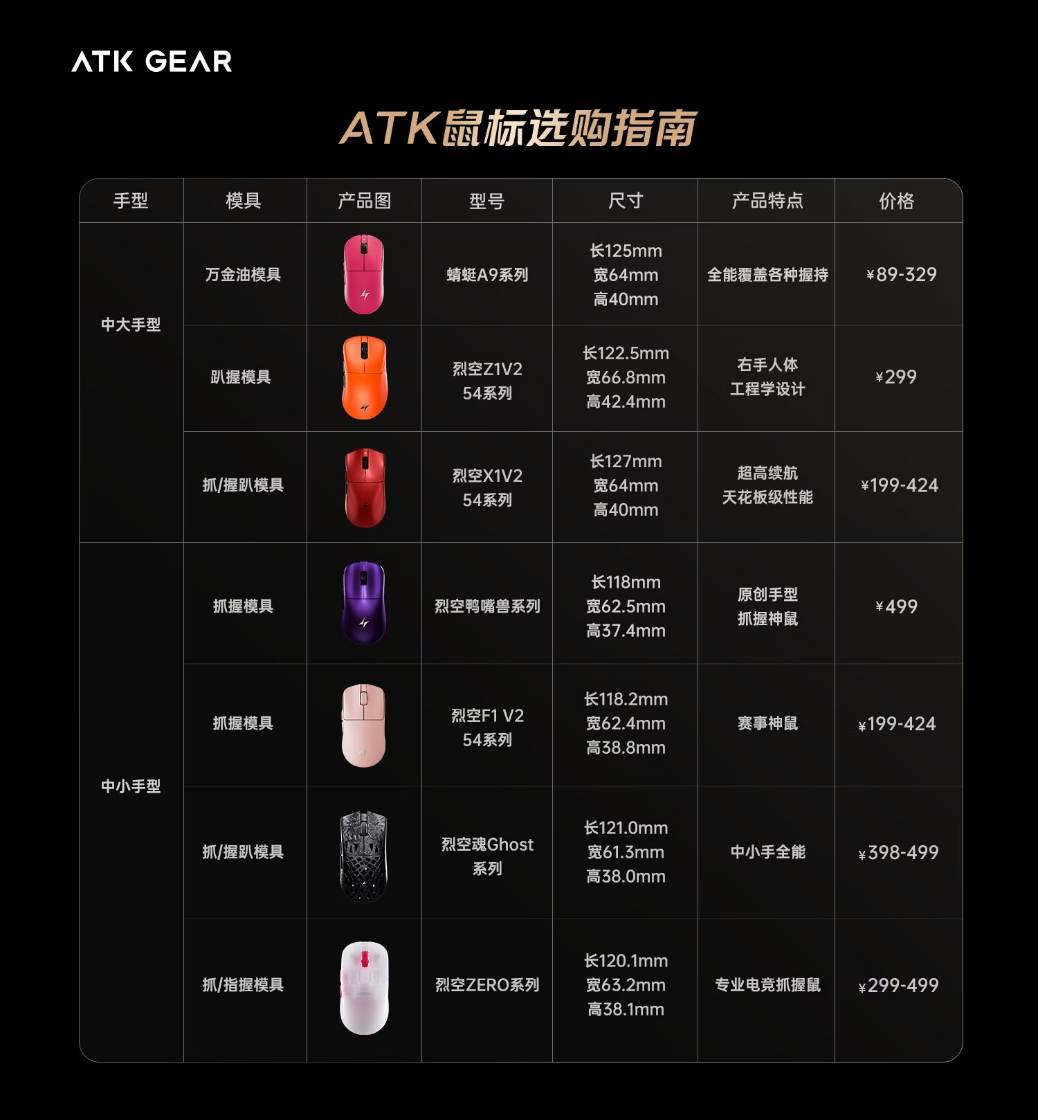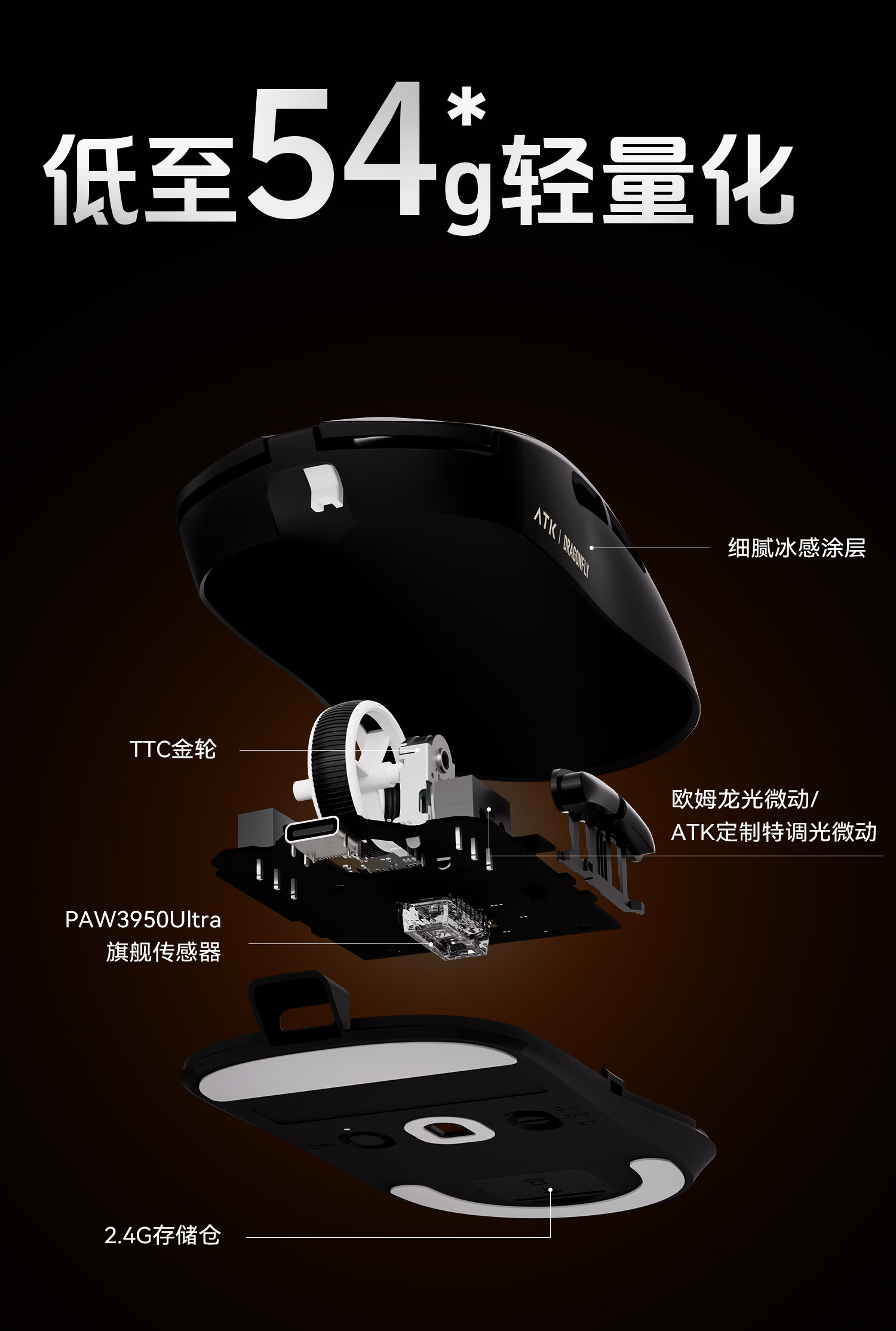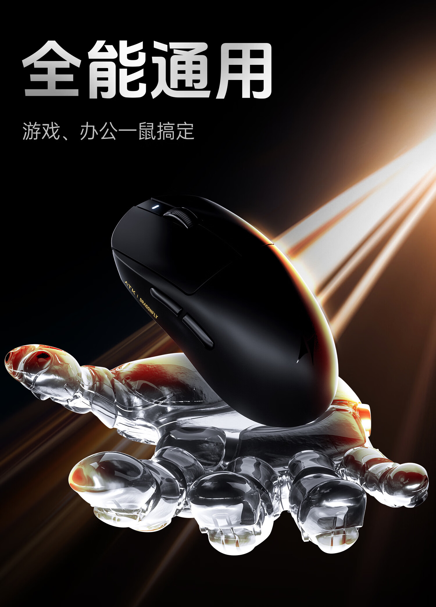 ATK 蜻蜓A9无线鼠标电竞游戏办公鼠标 有线/蓝牙/2.4G/星闪三模连接轻量化对称极简工学 A9 Plus 黑色