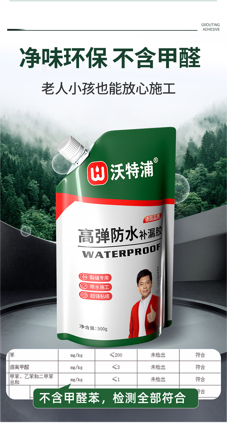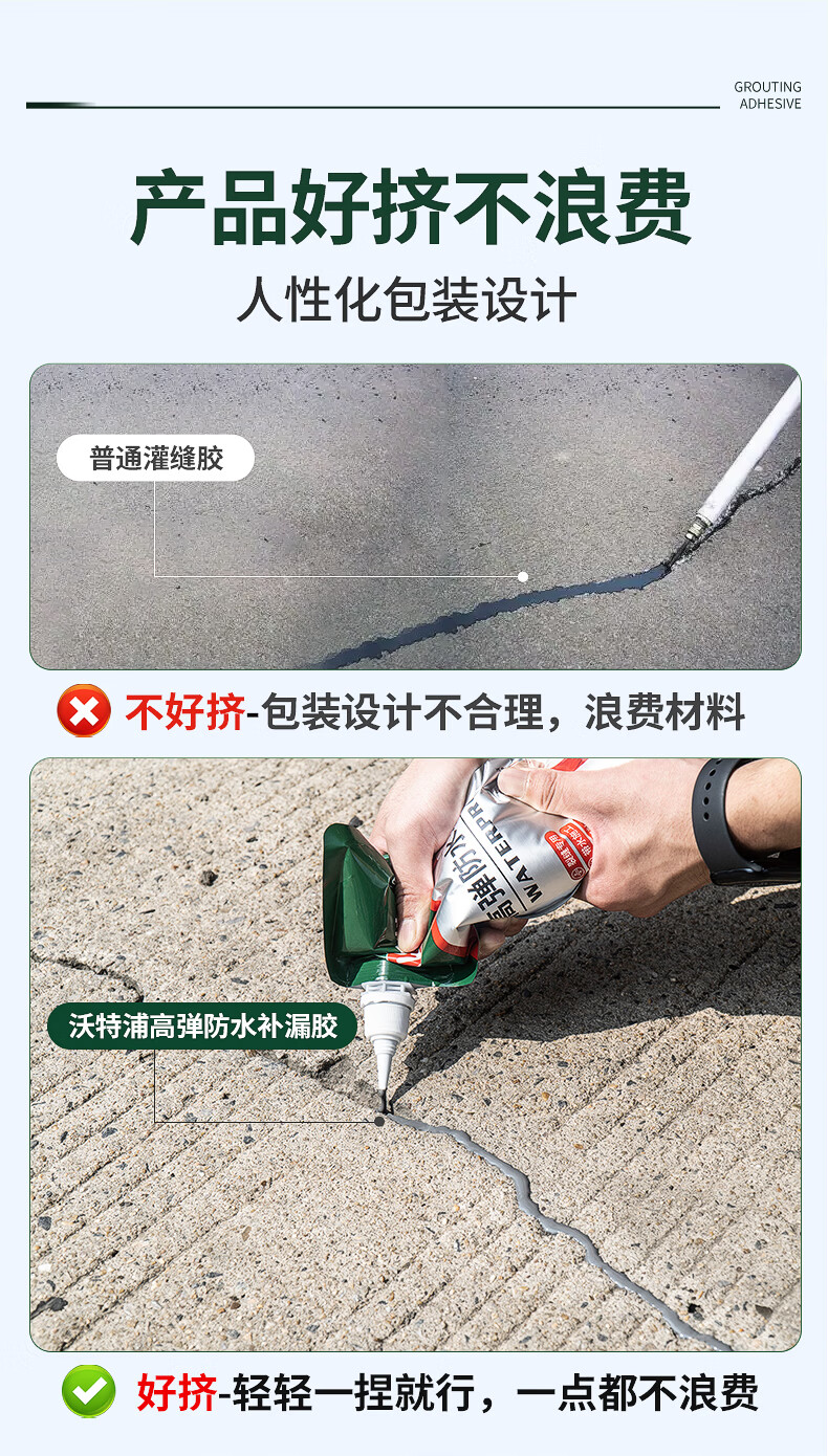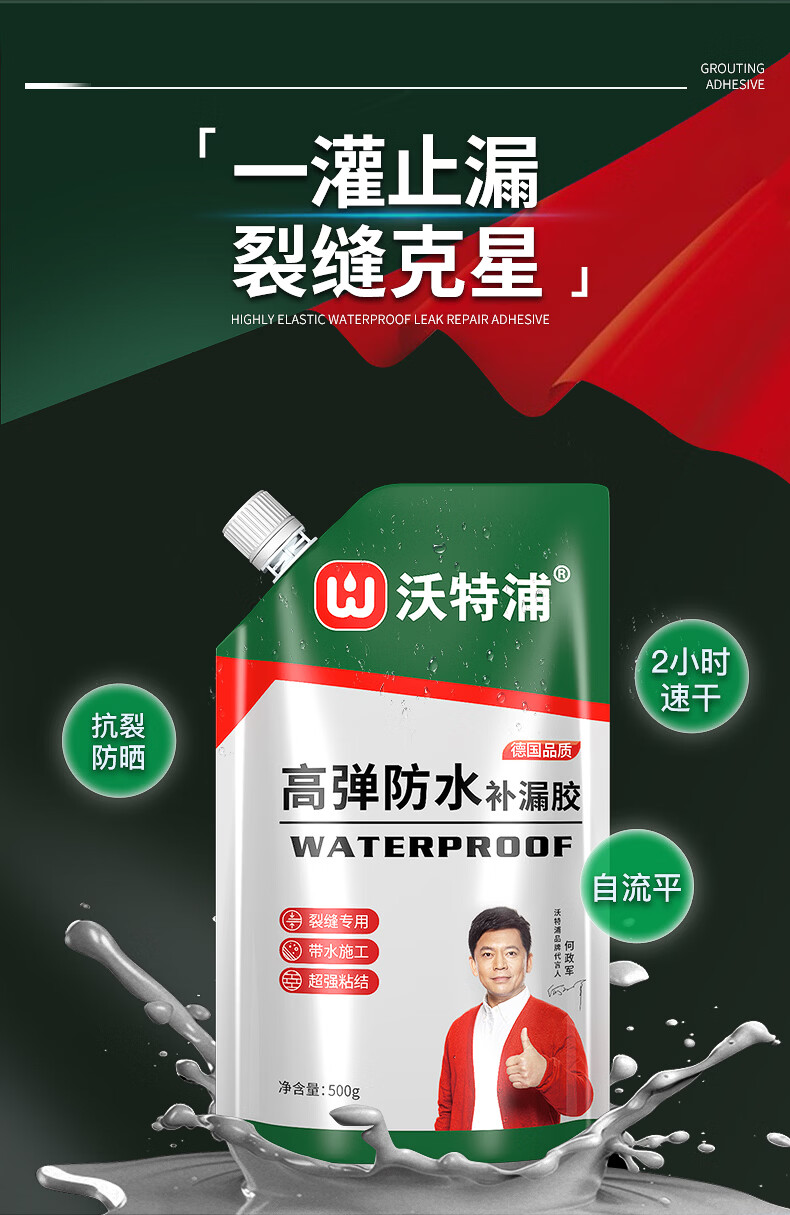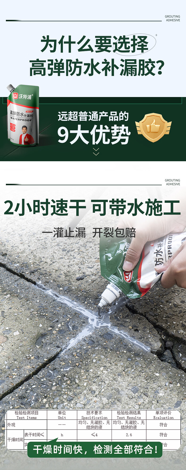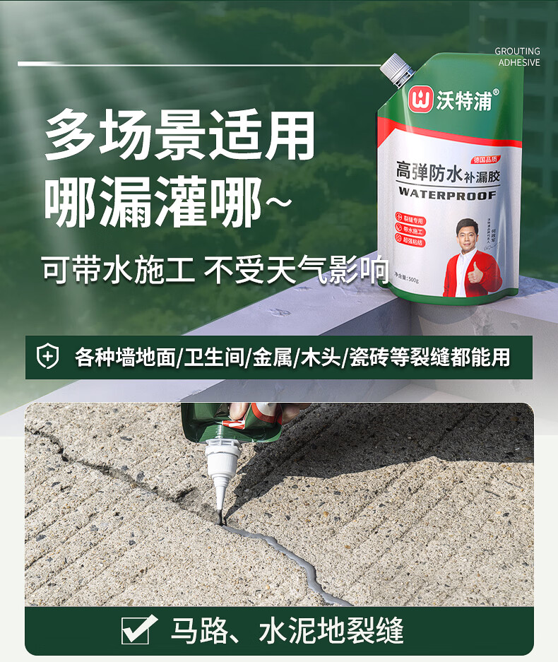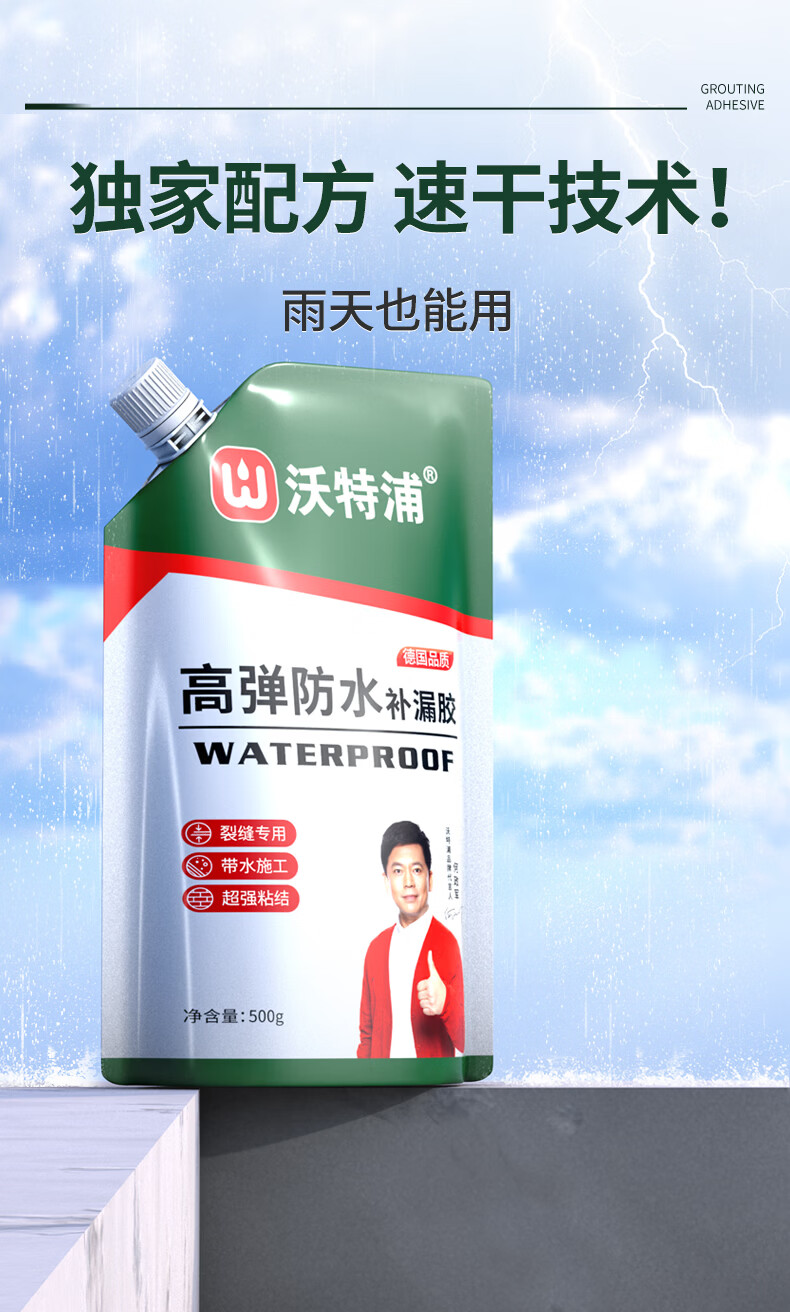 沃特浦速干灌缝胶屋顶防水胶补漏王裂缝渗水楼顶防漏材料房顶漏水涂料 灰色【500g1袋】施工约8-10米 送工具