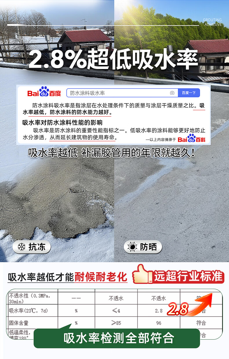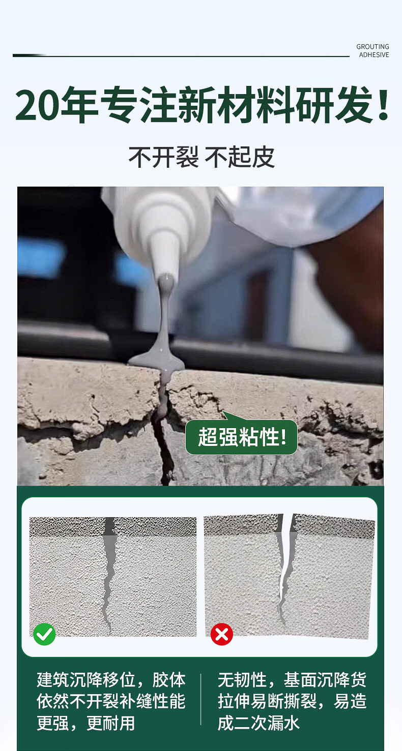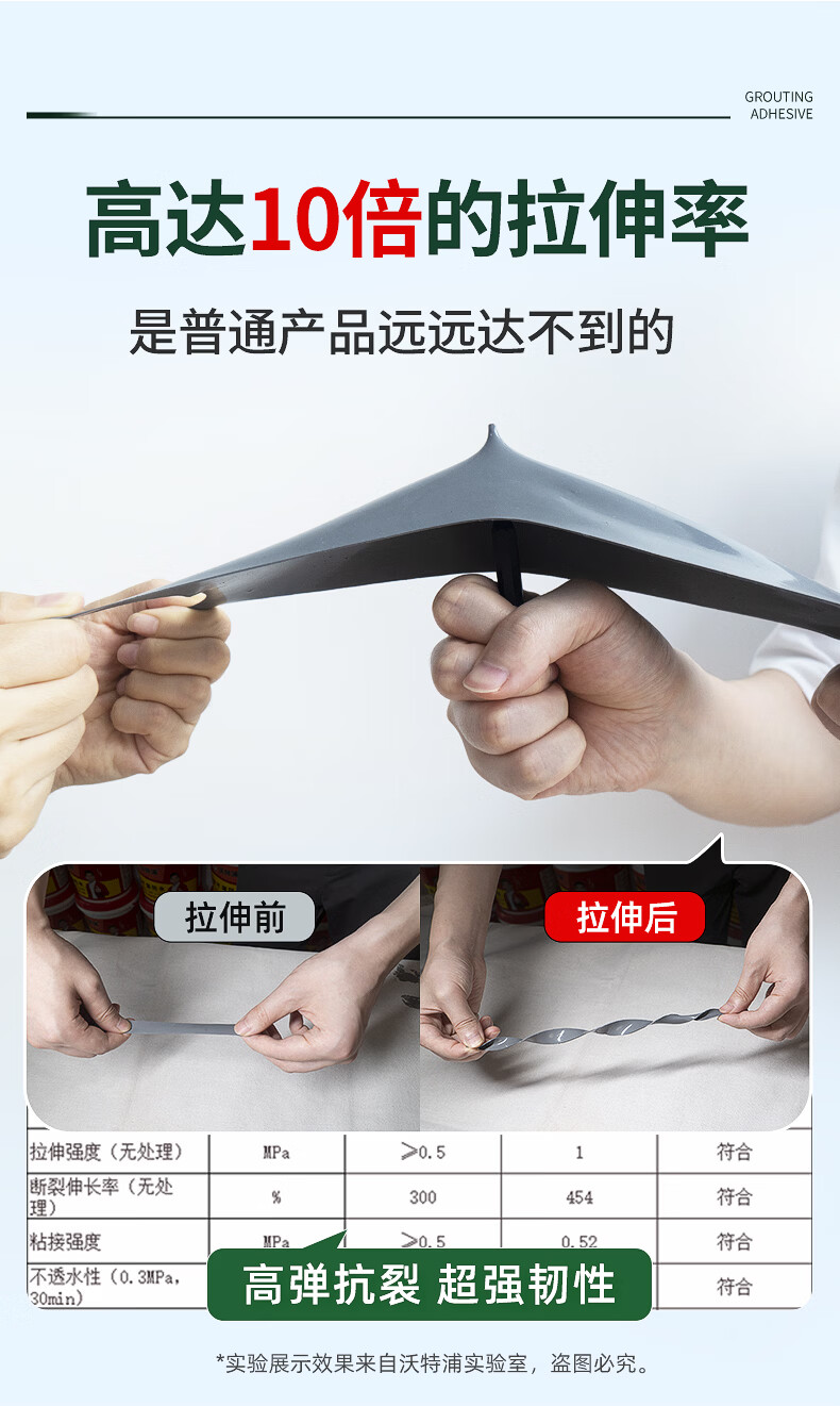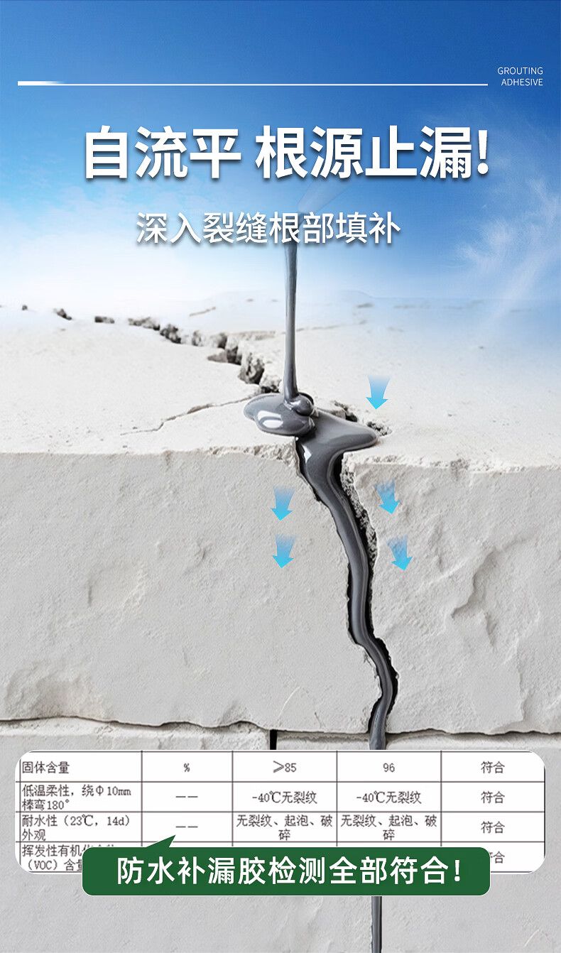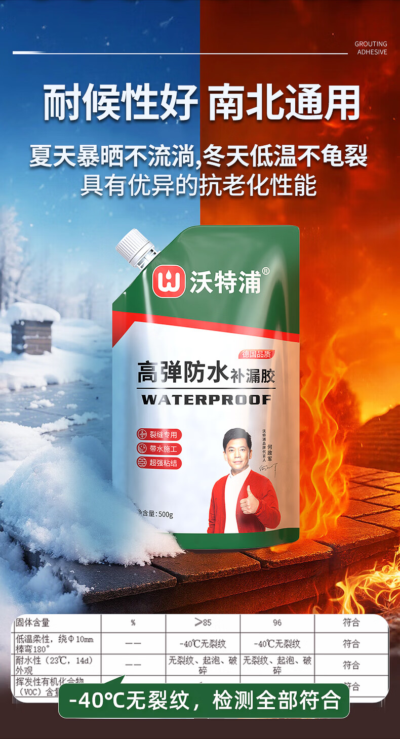 沃特浦速干灌缝胶屋顶防水胶补漏王裂缝渗水楼顶防漏材料房顶漏水涂料 灰色【500g1袋】施工约8-10米 送工具