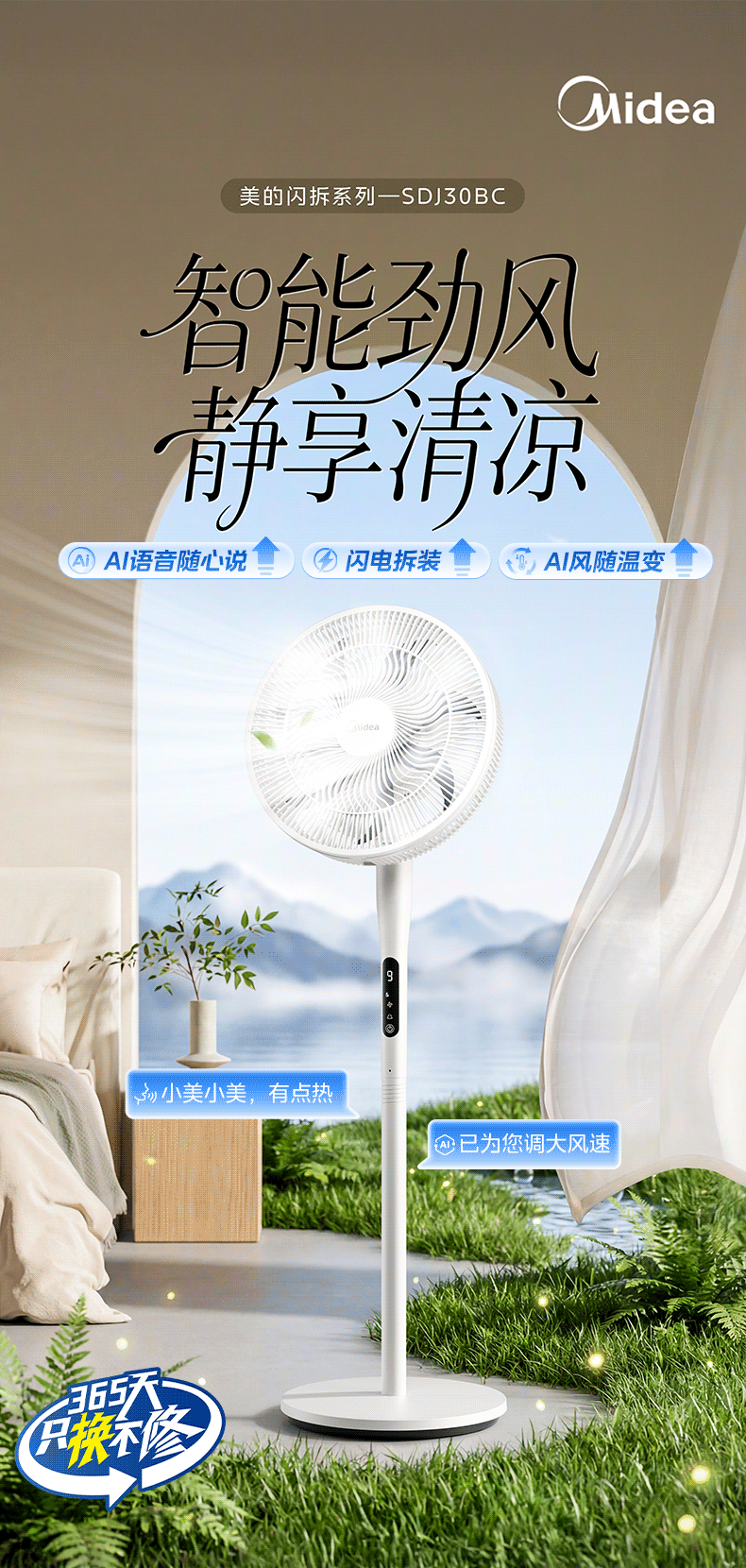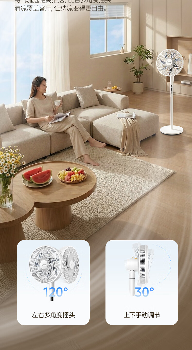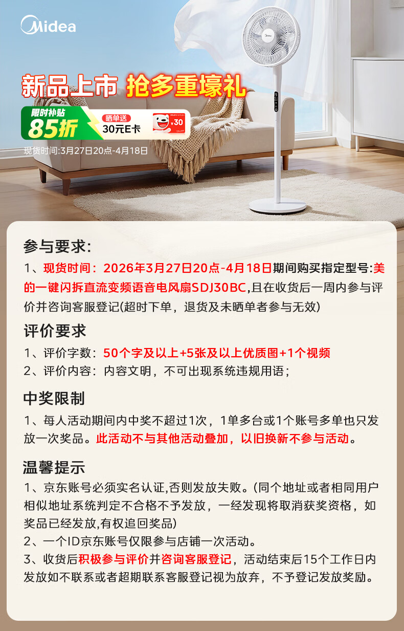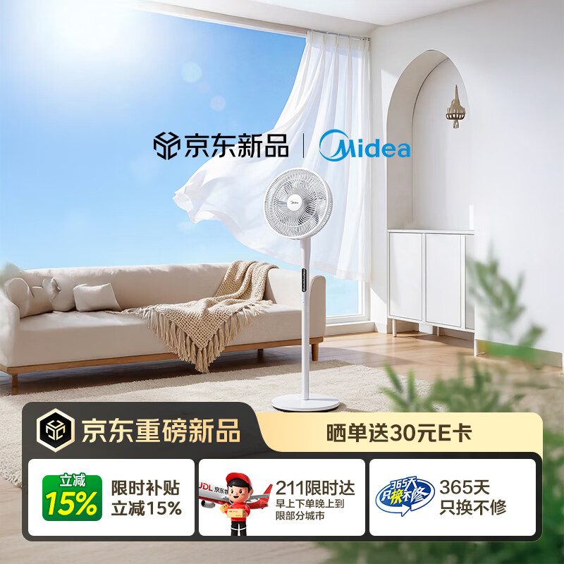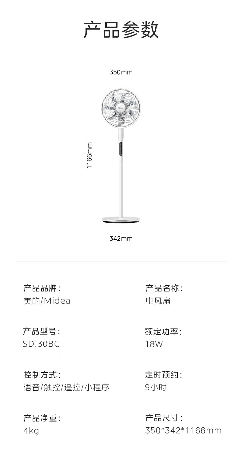 美的(Midea)【闪拆系列】一键闪电拆装直流变频家用语音电风扇一级能效轻音落地扇大风力卧室立式电扇SDJ30BC