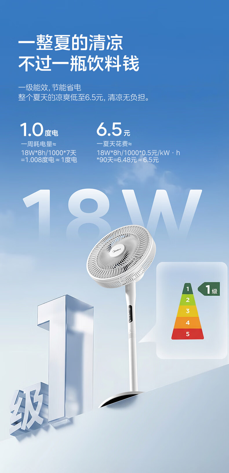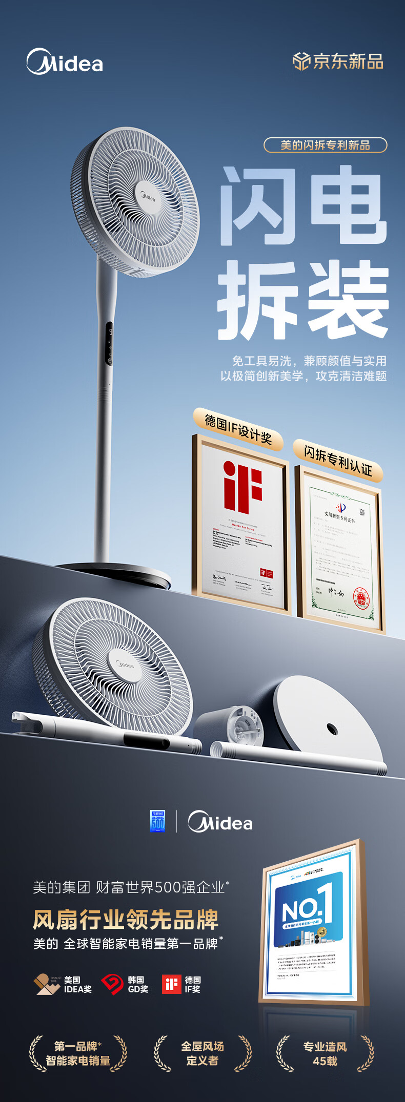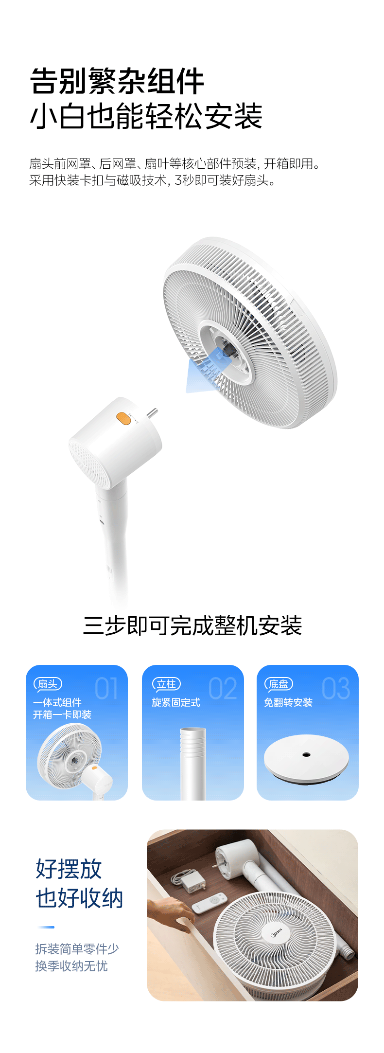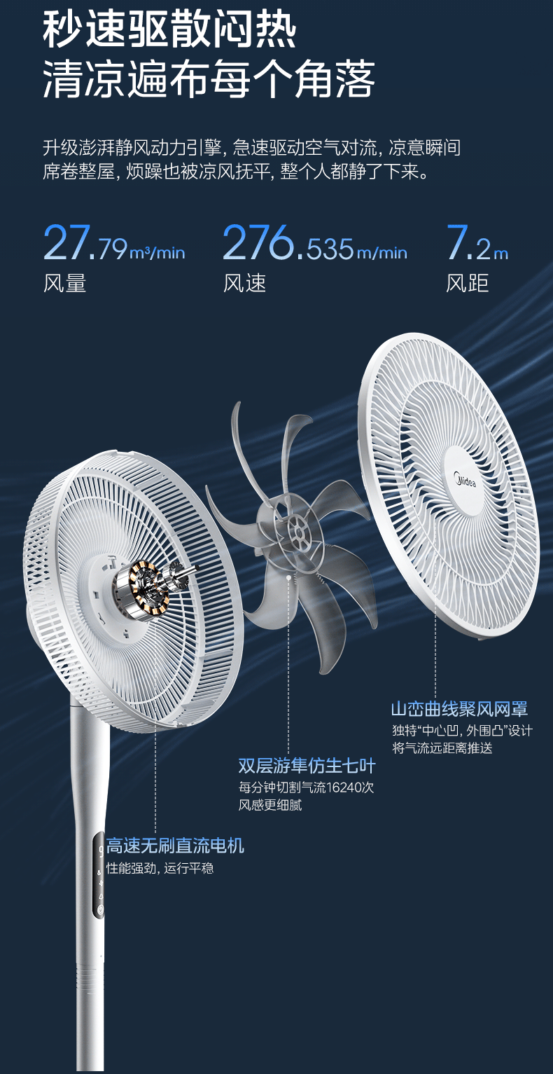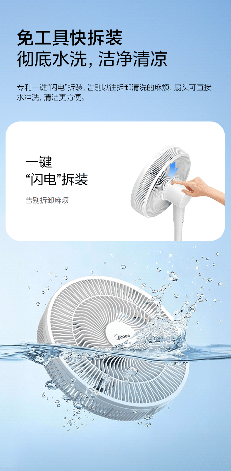 美的(Midea)【闪拆系列】一键闪电拆装直流变频家用语音电风扇一级能效轻音落地扇大风力卧室立式电扇SDJ30BC