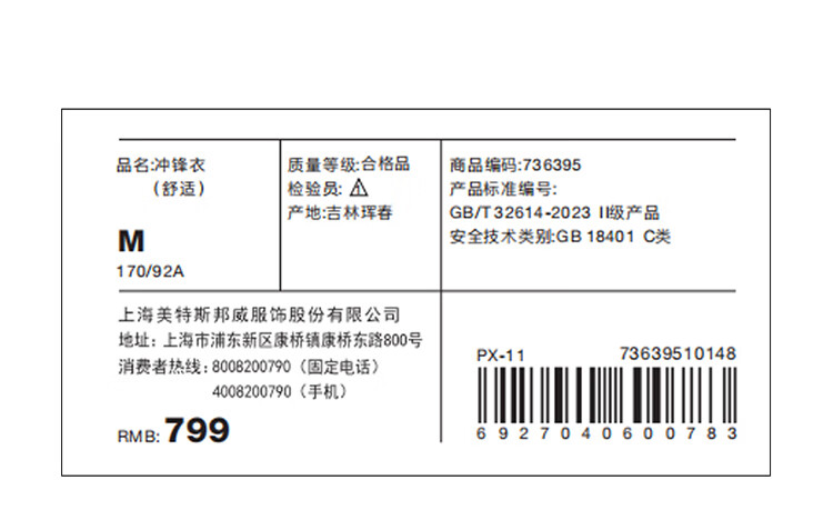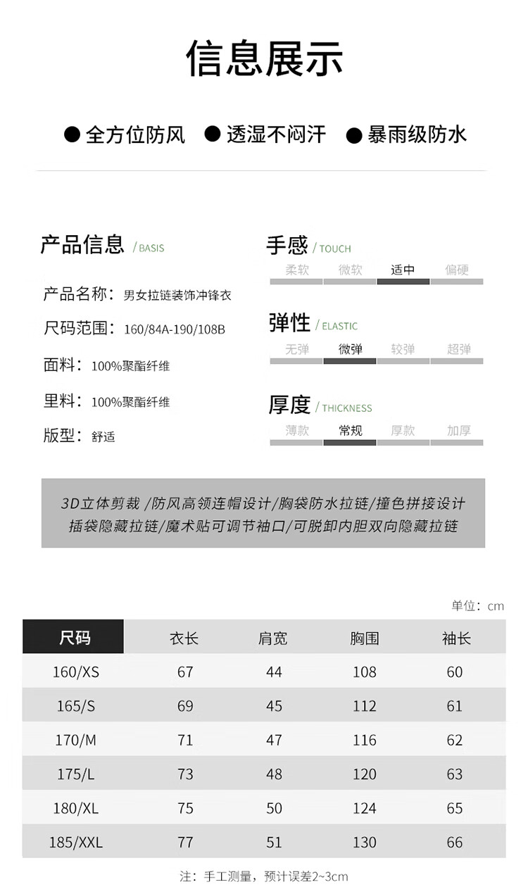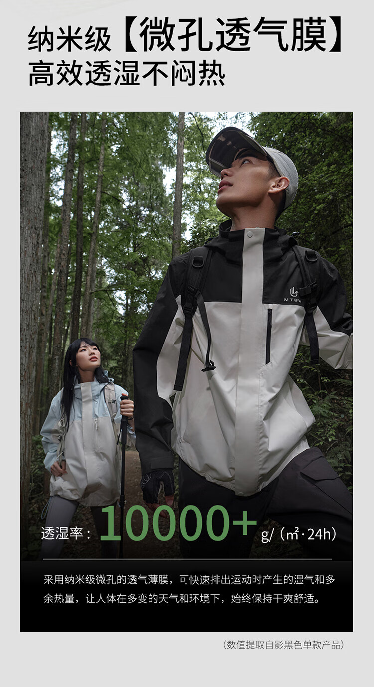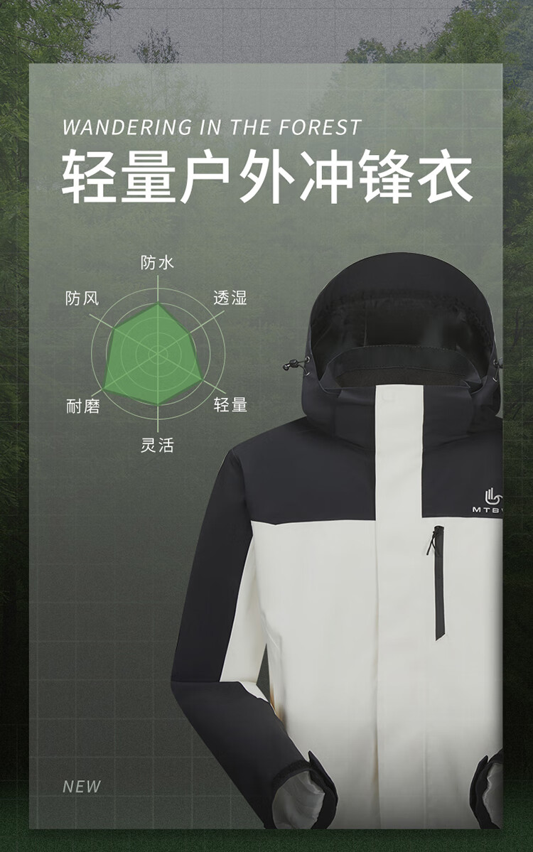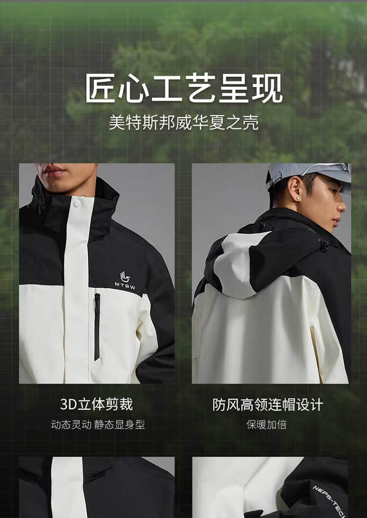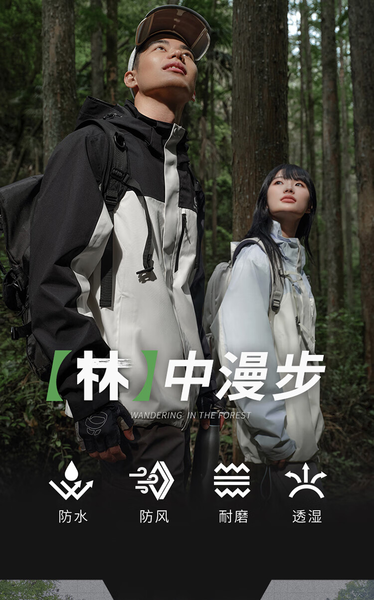 美特斯邦威【华夏之壳-林系列】年春季新款男女同款新款春潮流户外冲锋衣 月光杏 XL 180 100A