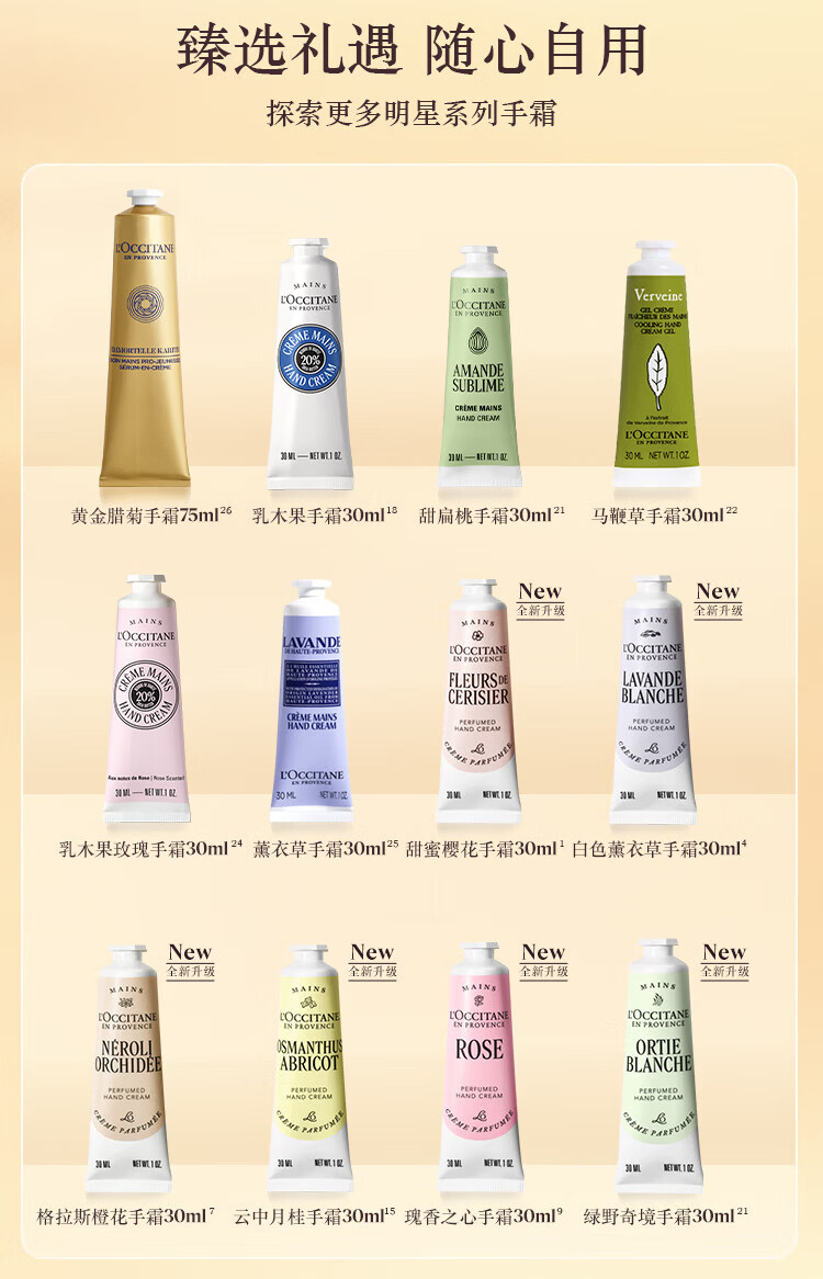 欧舒丹护手霜礼盒乳木果4支装防干裂保湿滋润生日礼物送女友(香型随机)