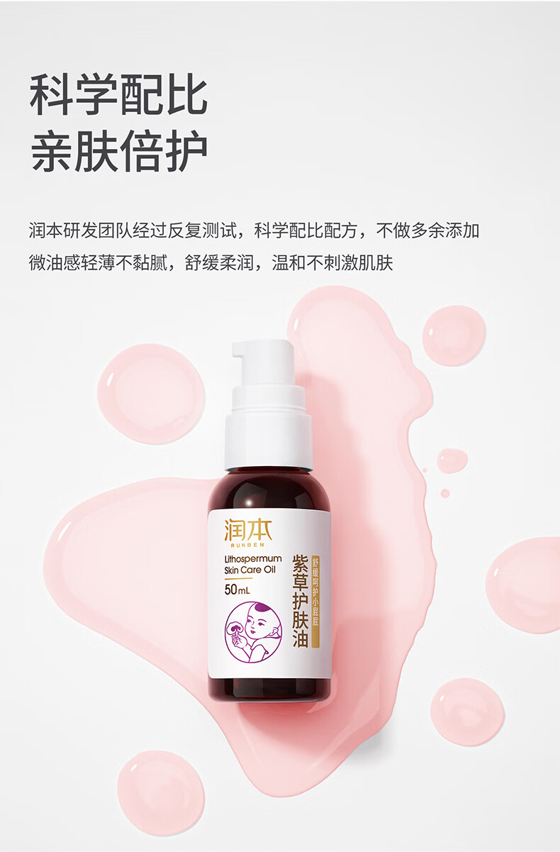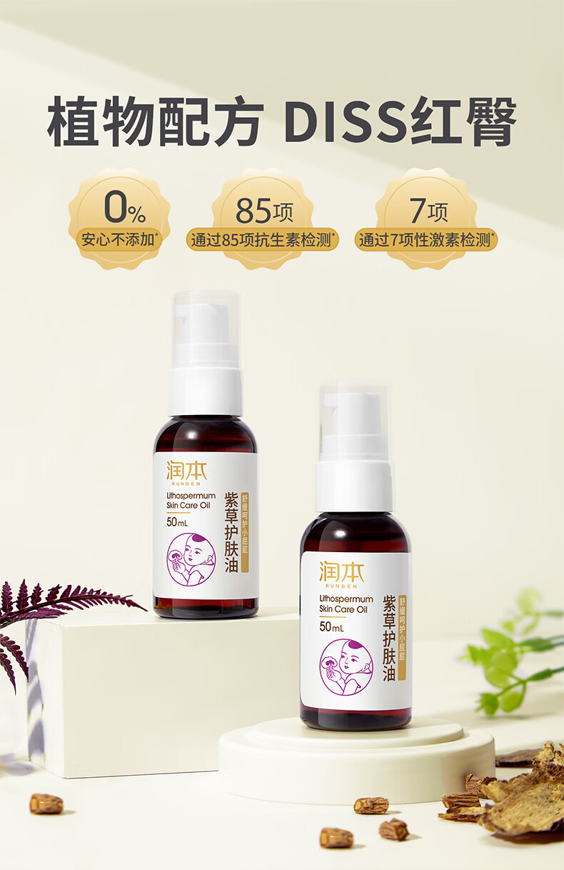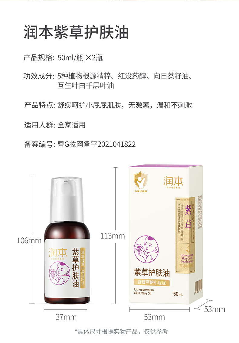 润本紫草护肤油50ml*2瓶 润肤乳婴儿护臀膏紫草膏 宝宝屁屁霜 按摩油