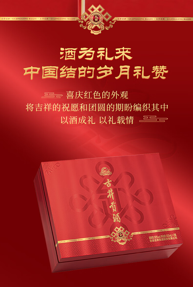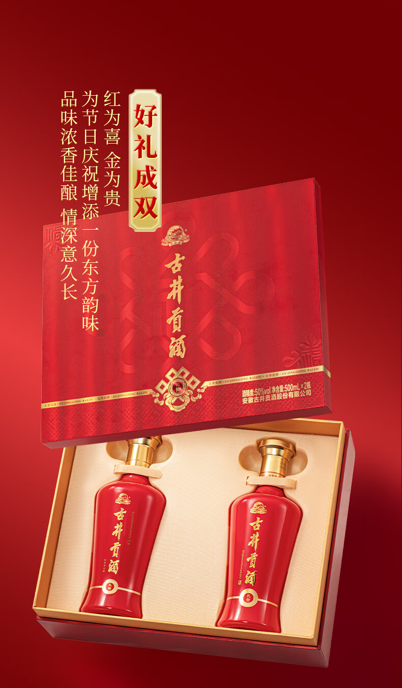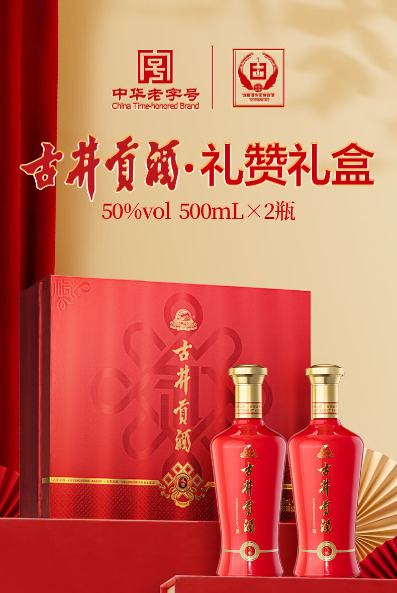 古井贡酒 礼赞 浓香型白酒 50度 500mL*2瓶 礼盒装