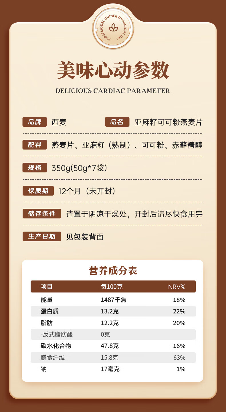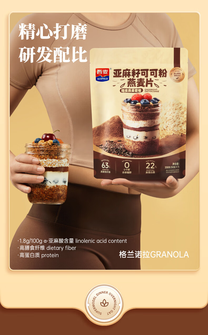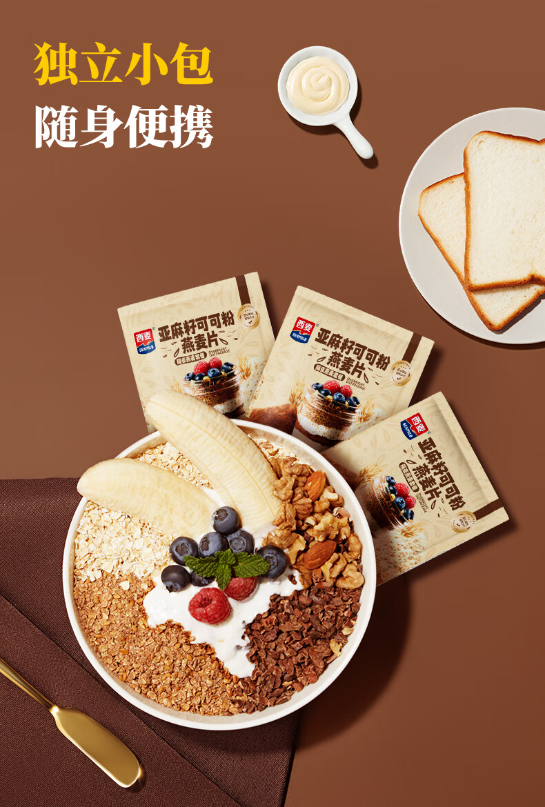 西麦亚麻籽可可粉燕麦片350g冲饮谷物代餐营养早餐帕梅拉晚餐独立装