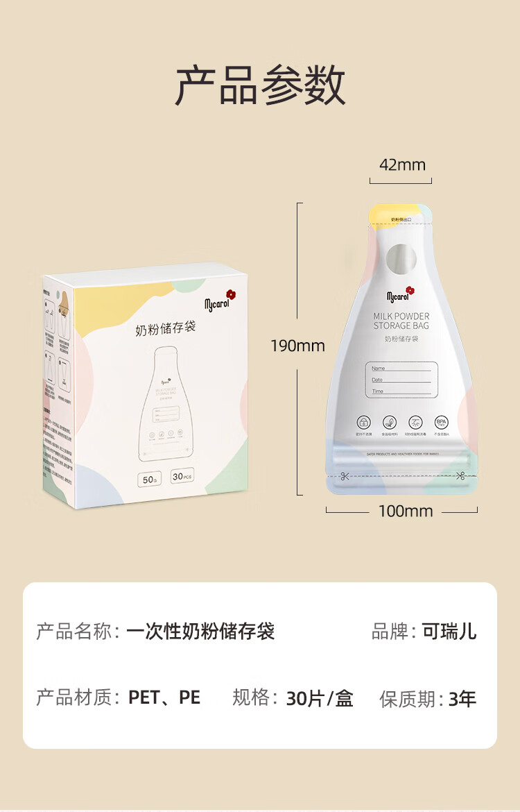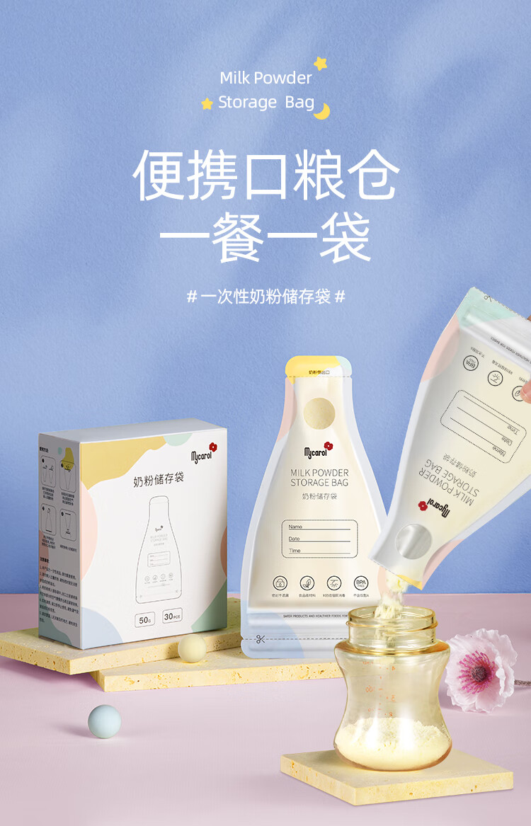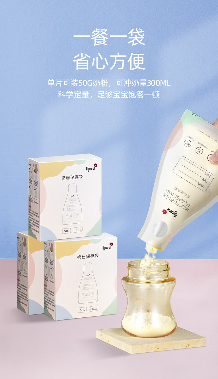 可瑞儿(MyCarol)奶粉分装袋一次性奶粉袋密封防潮外出便携加厚防漏50g*30片