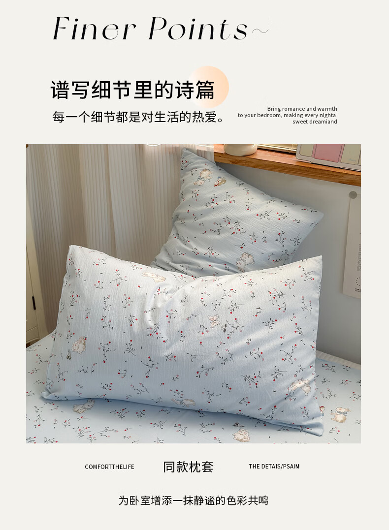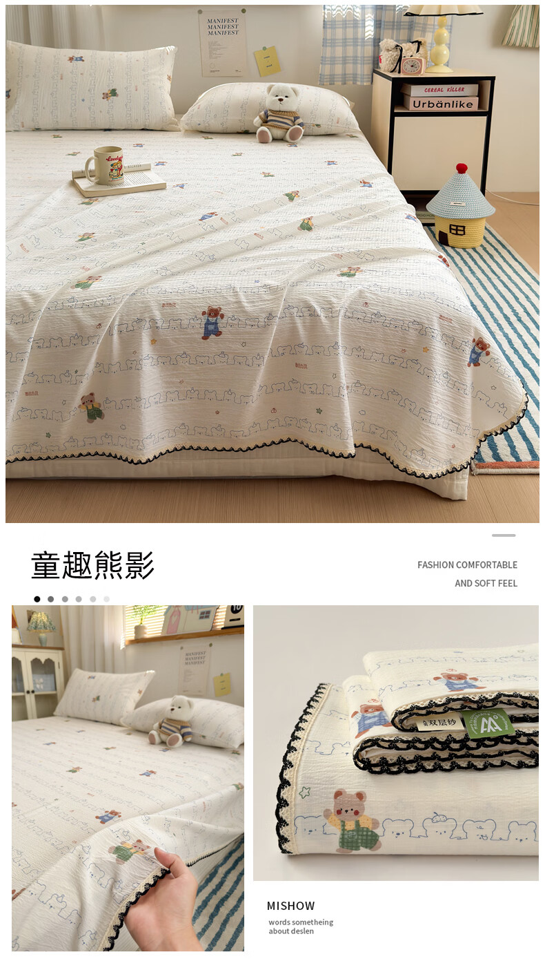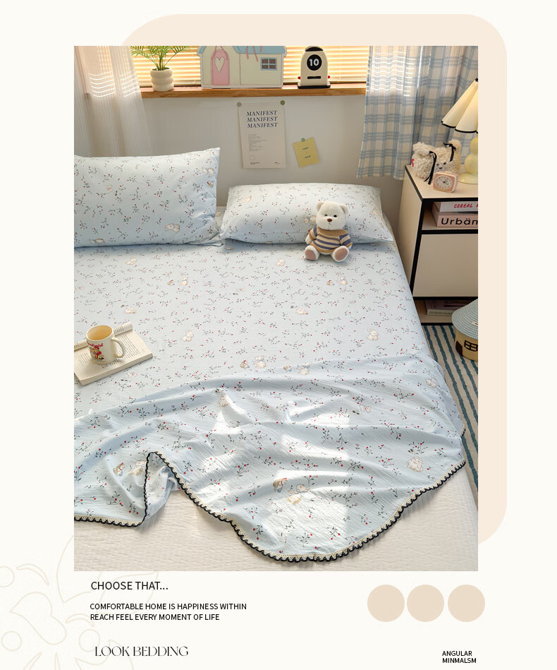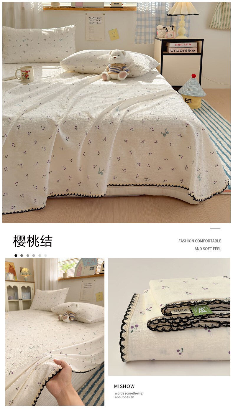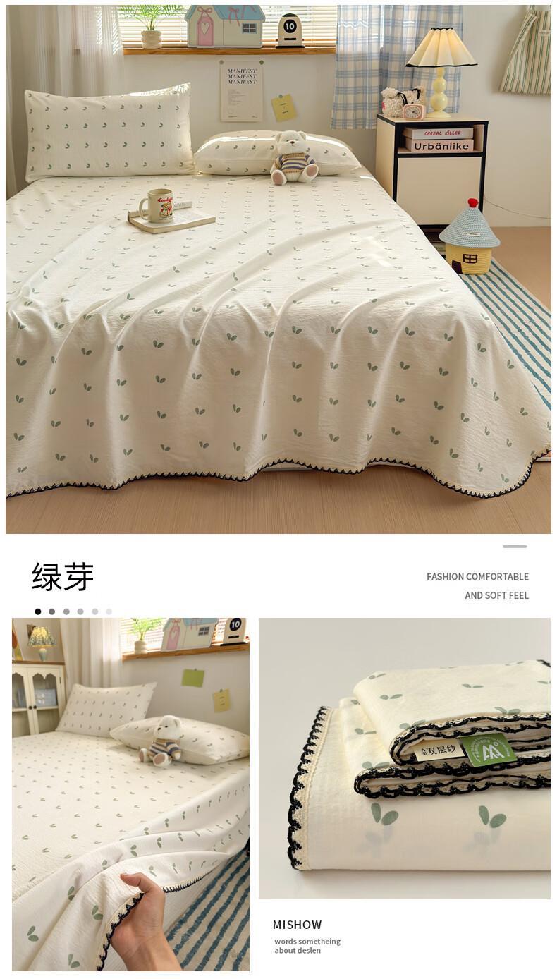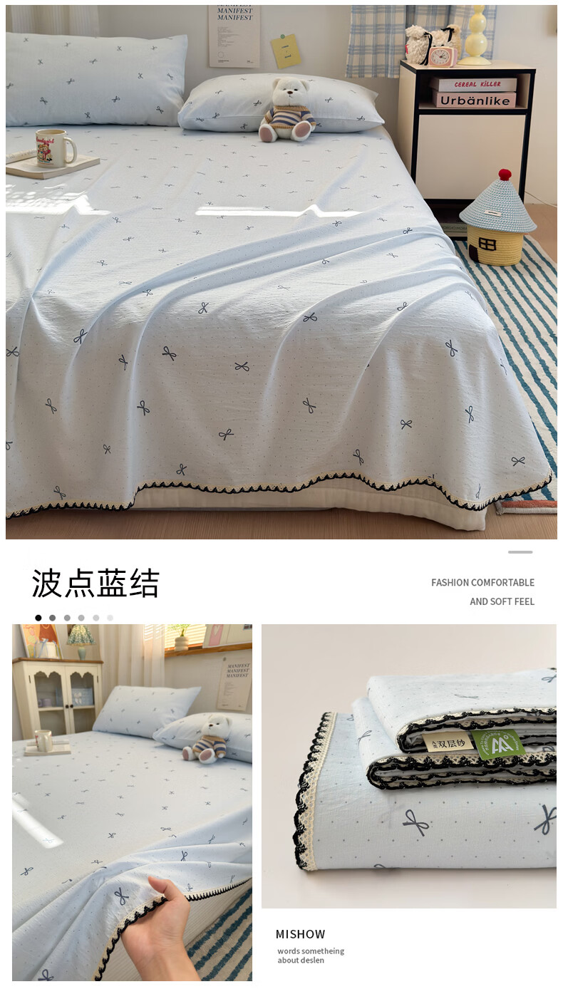 雅鹿花边双层纱床单1.5米x2米单件小清新被单枕套三件套宿舍单人床单 春日兔絮 【精美花边 柔软亲肤】 单床单-200x230cm 【适合1.5m床】