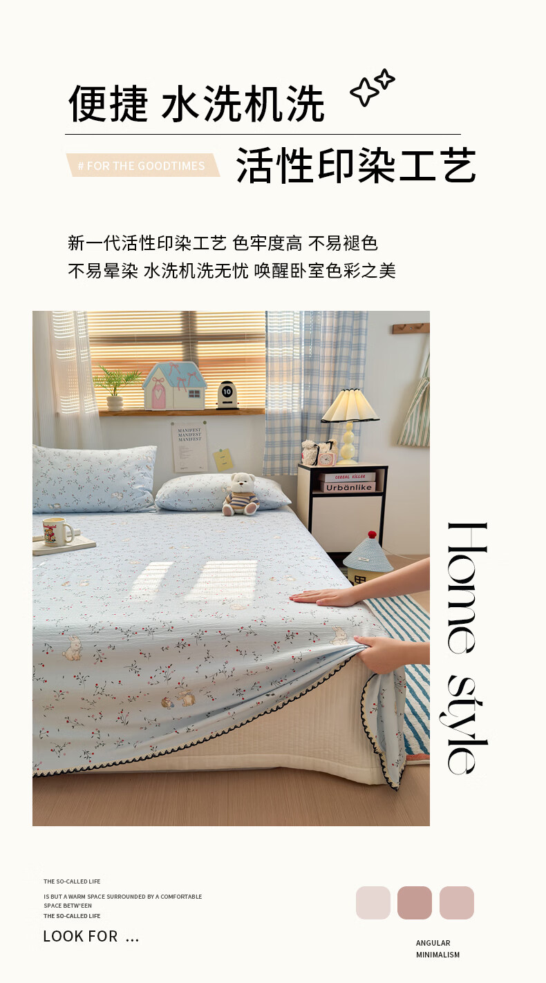 LOVO罗莱家纺100%新疆纯棉三/四件套全棉超柔床上用品单双人床单被套 【极简】超柔新疆全棉-布列塔尼 1.8米 床笠款 -被套220*240cm