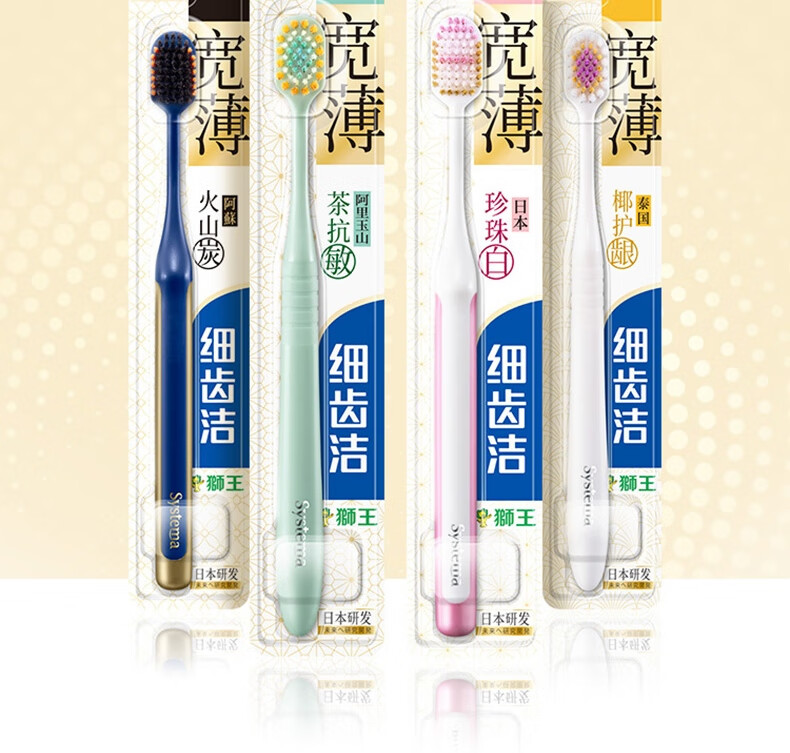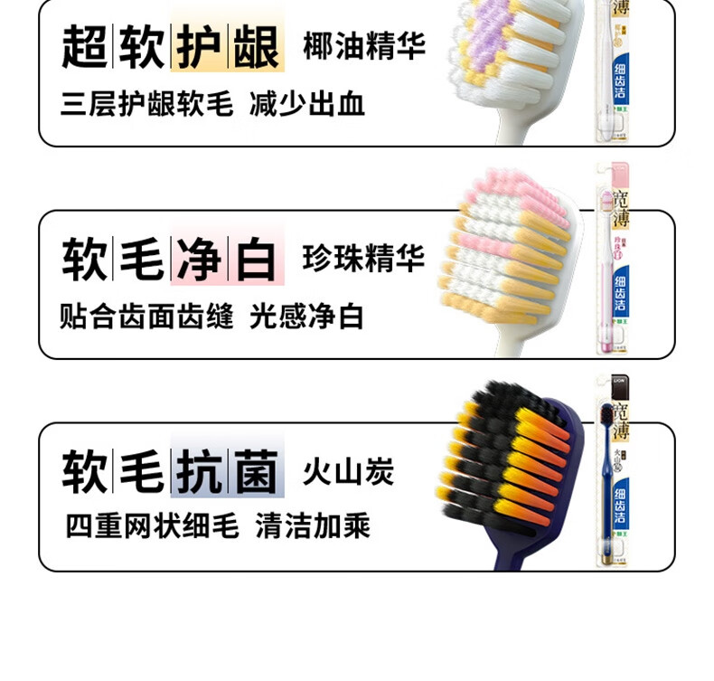 狮王细齿洁宽薄宽头软毛牙刷细毛成人牙刷 颜色随机发货 宽薄套组 8支 茶抗敏+椰护龈+珍珠白+火山炭