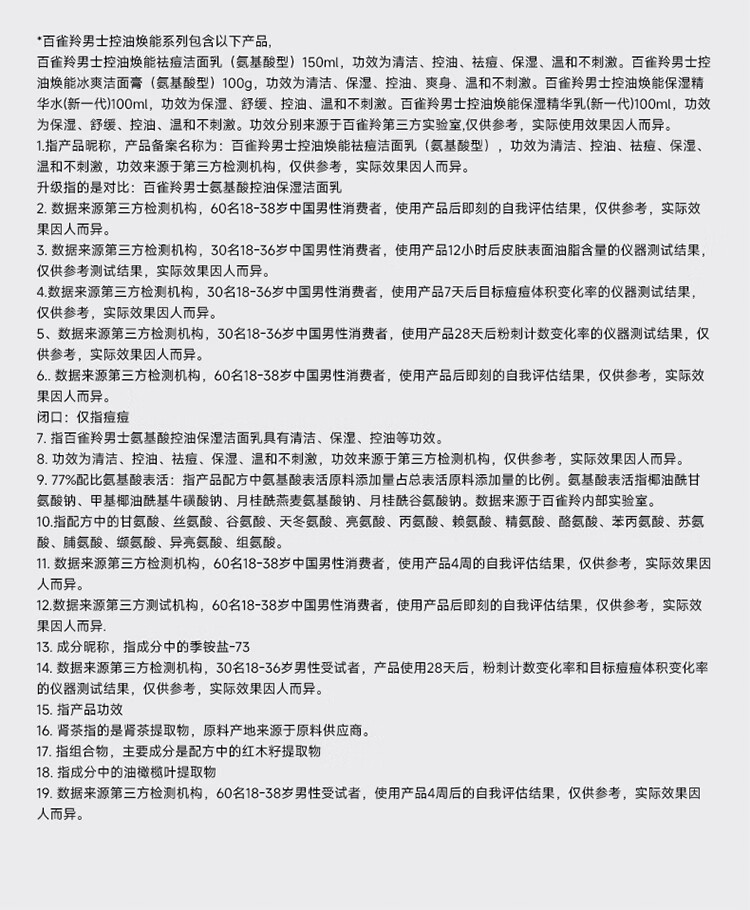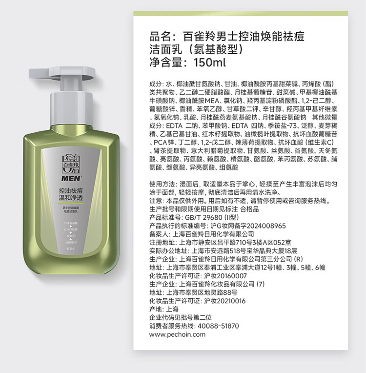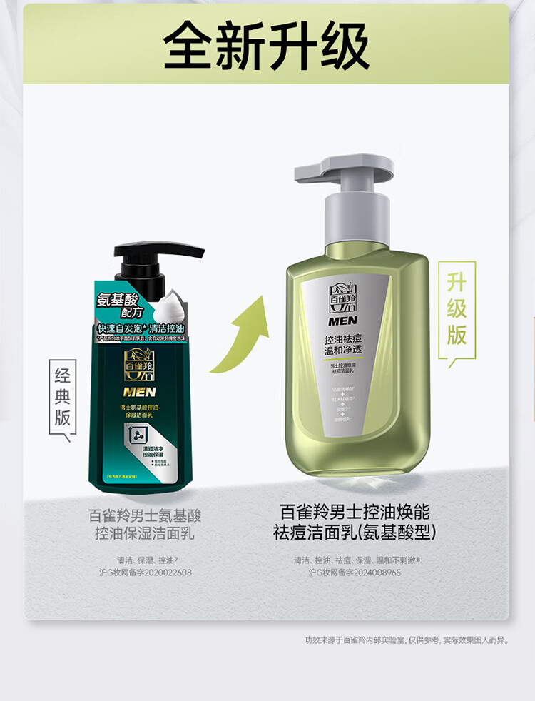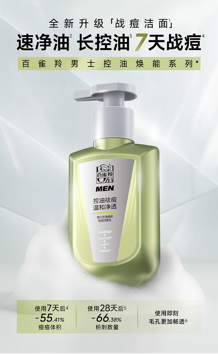 百雀羚屈臣氏 男士控油焕能祛痘洁面乳 氨基酸型 150ml