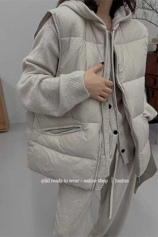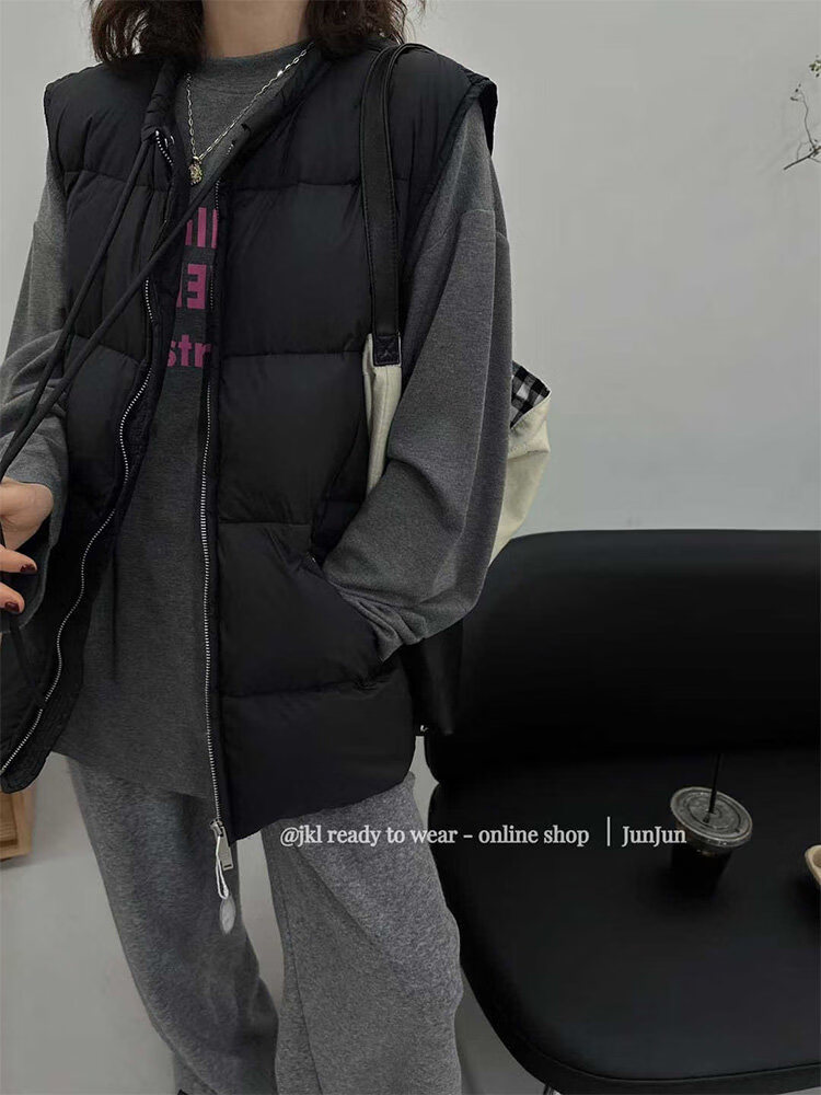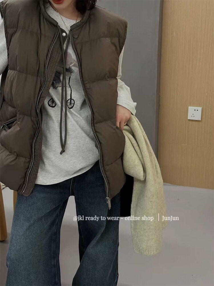 MODX宽松休闲无袖羽绒马甲外套超好看女2026冬新款白鸭绒外穿马夹 咖色【羽绒棉】 S