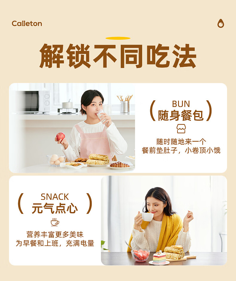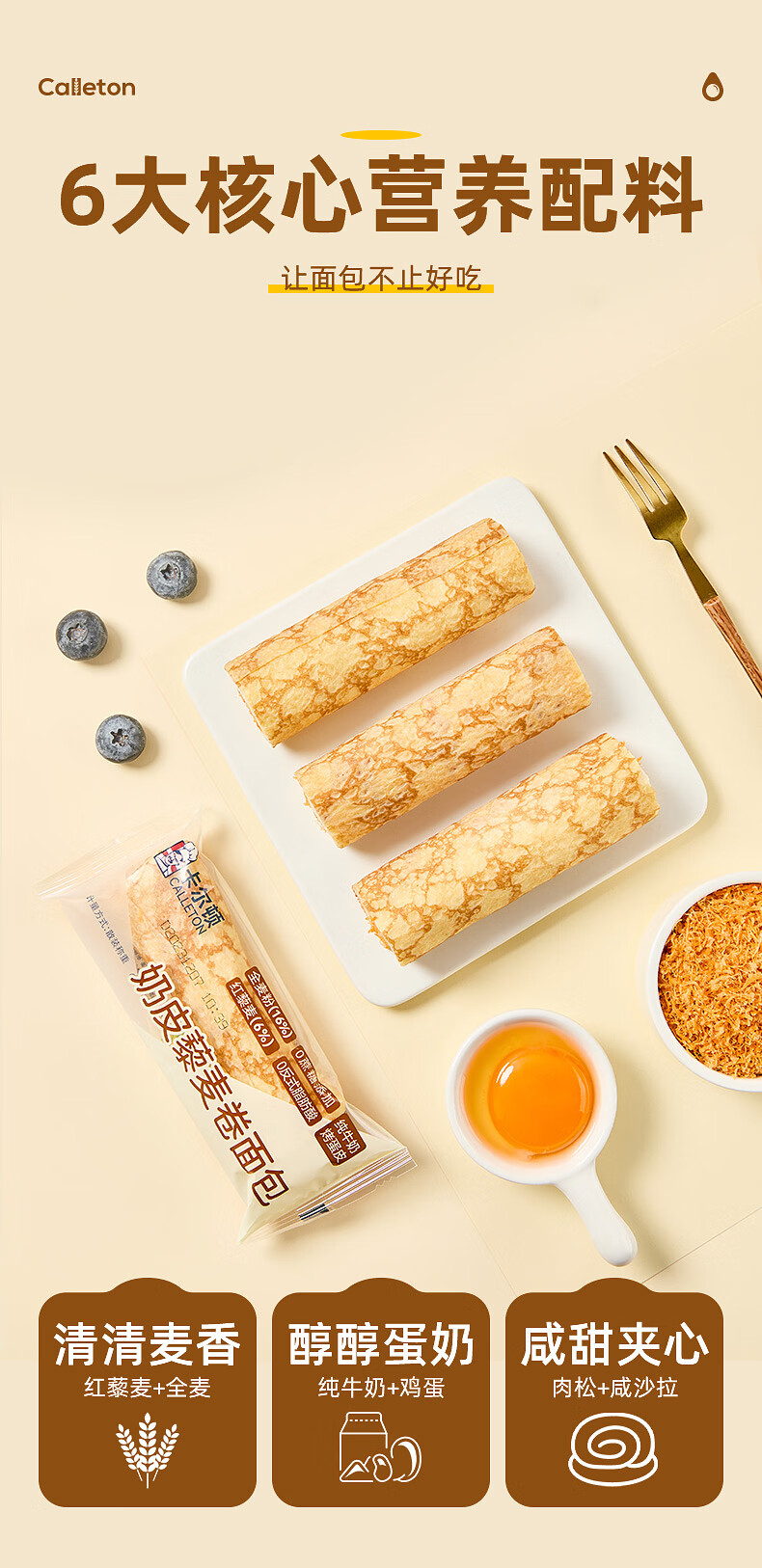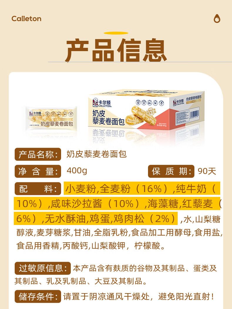 卡尔顿(Calleton)蜂蜜蛋糕面包早餐芋泥卷藜麦卷多款面包休闲零食下午茶饱腹点心 奶皮藜麦卷400g