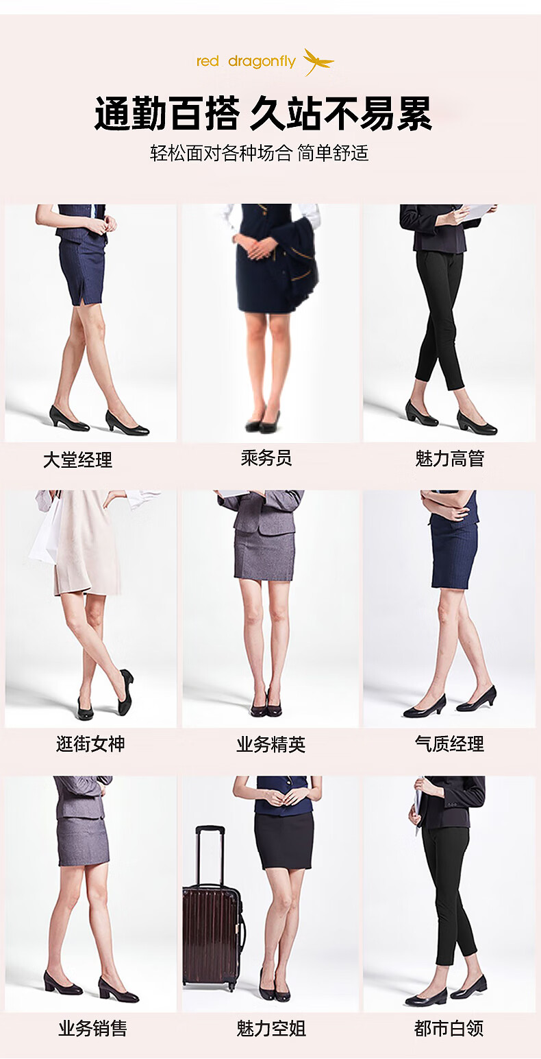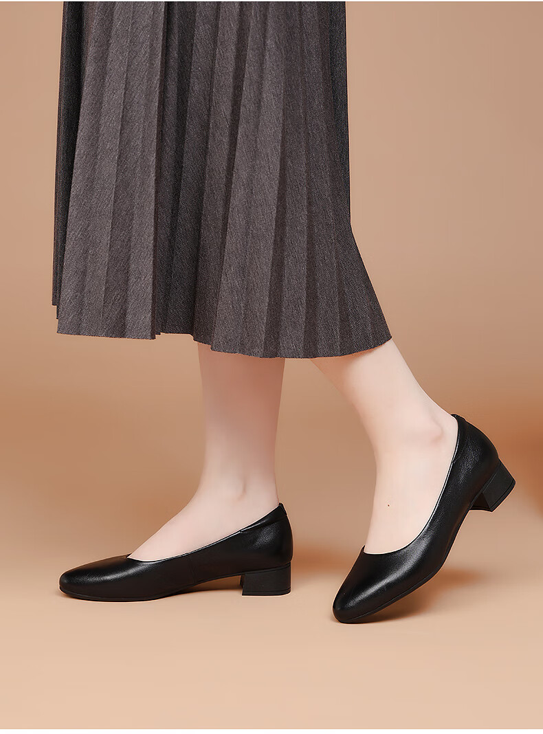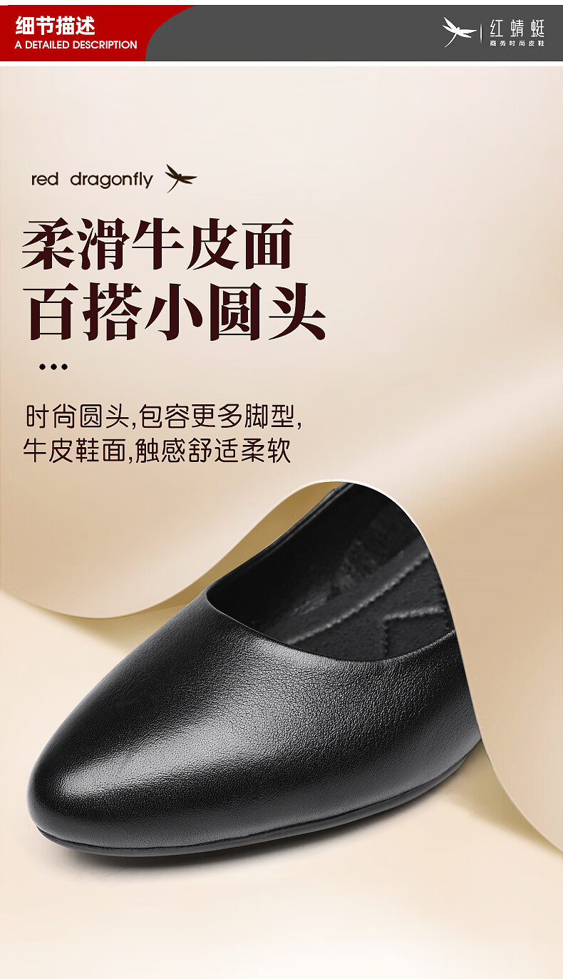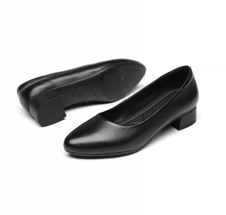 红蜻蜓单鞋女粗跟浅口女鞋中跟套脚鞋子女显瘦皮鞋WTB435931G黑色36