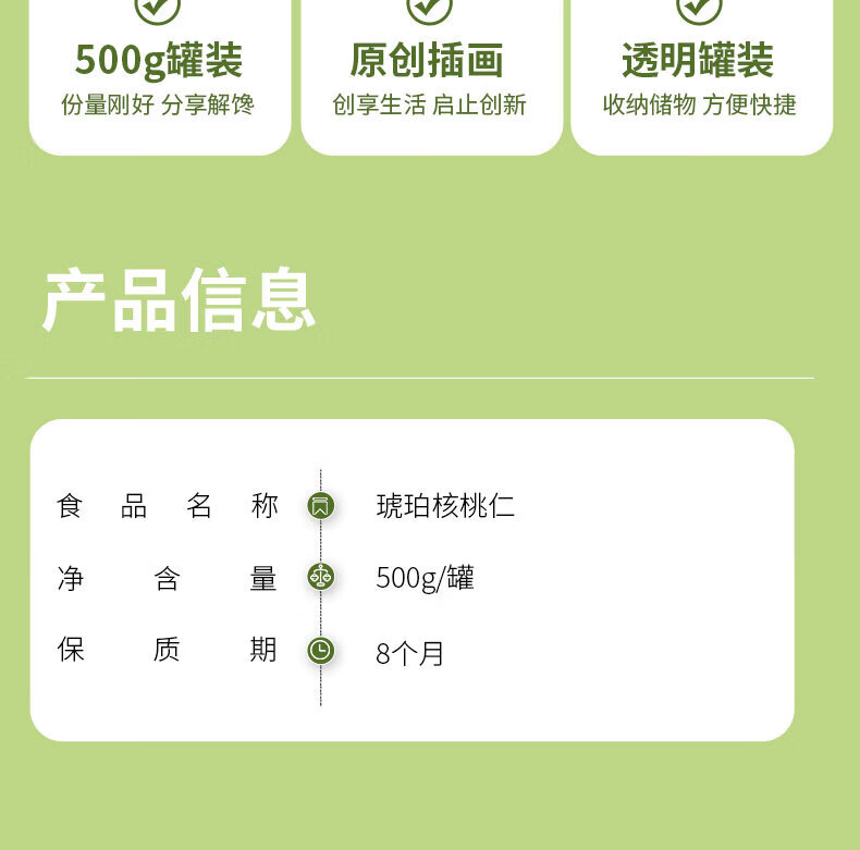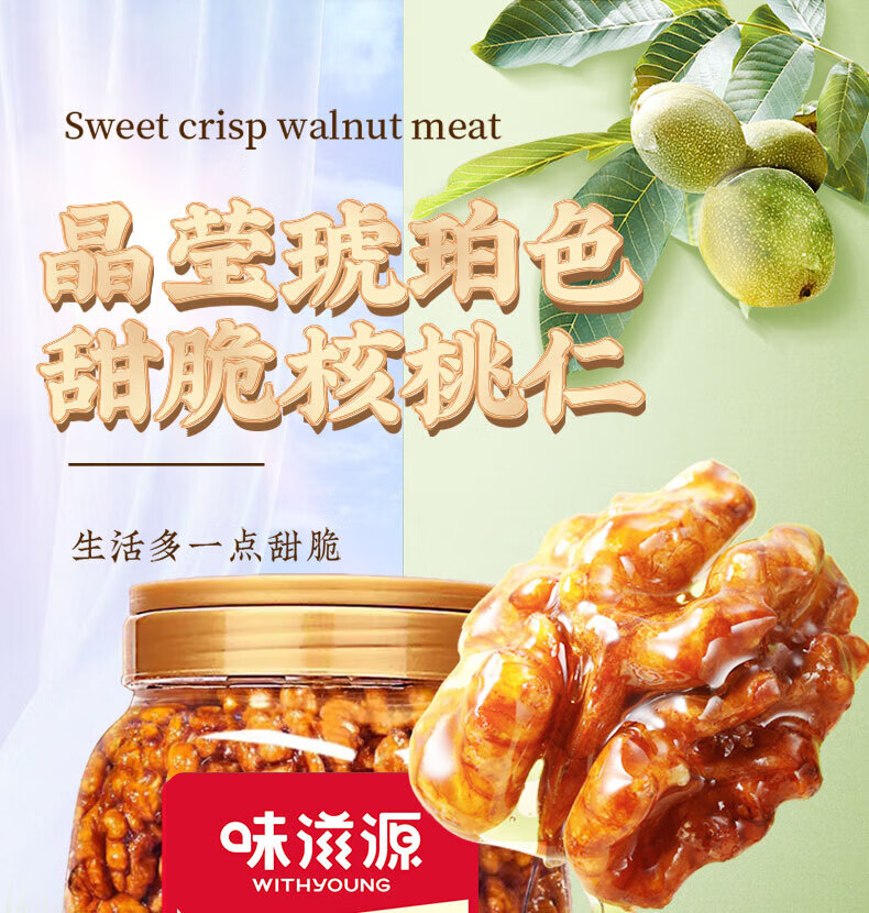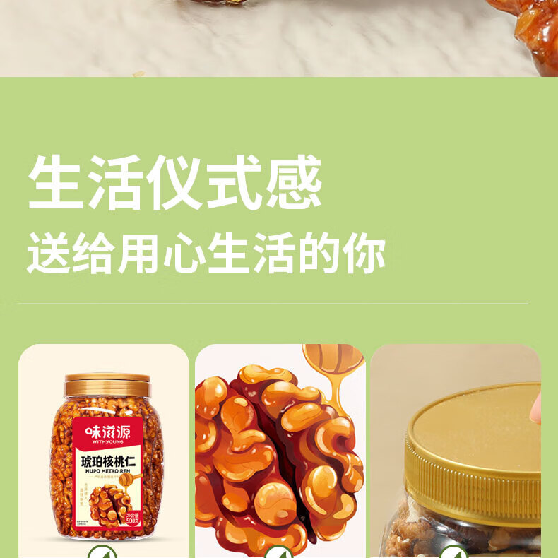 味滋源琥珀核桃仁 孕妇儿童零食小吃核桃仁坚果仁 炒货干果仁休闲零食 500g*1罐