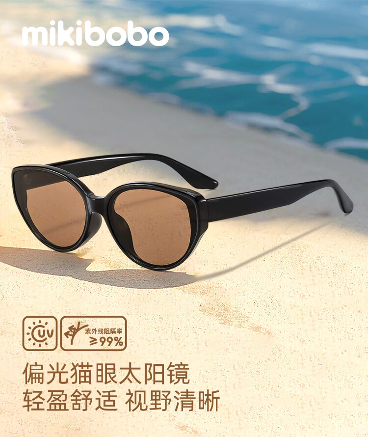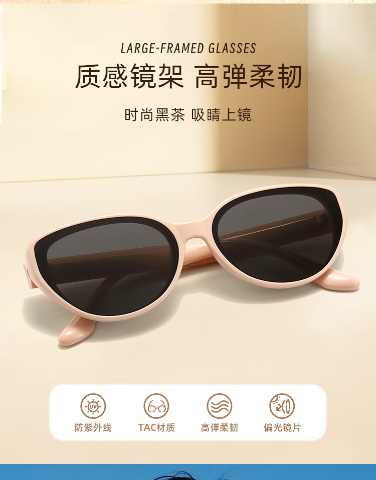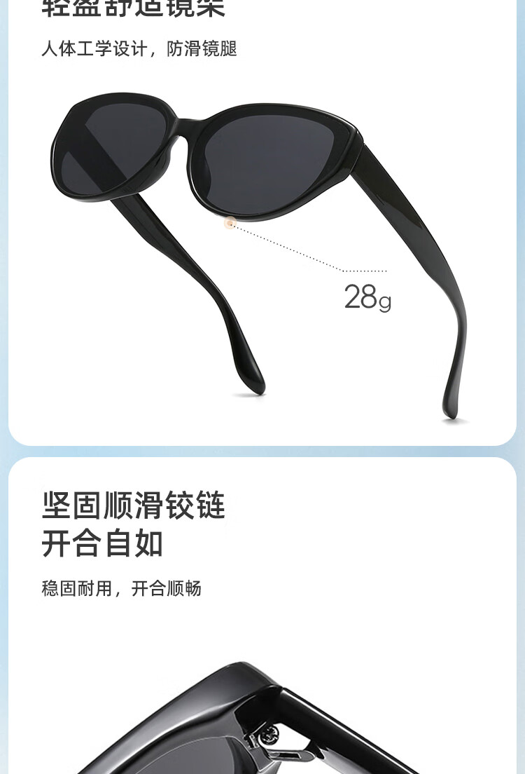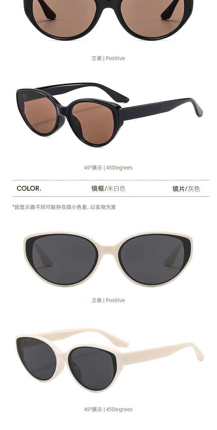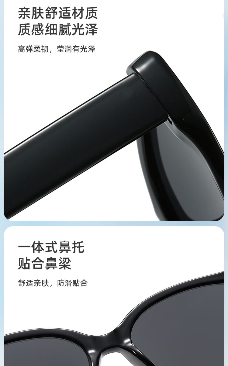 米奇啵啵摩登猫眼偏光太阳镜 开车防紫外线UV400防晒 小框男女同款墨镜 C4032-黑框灰片