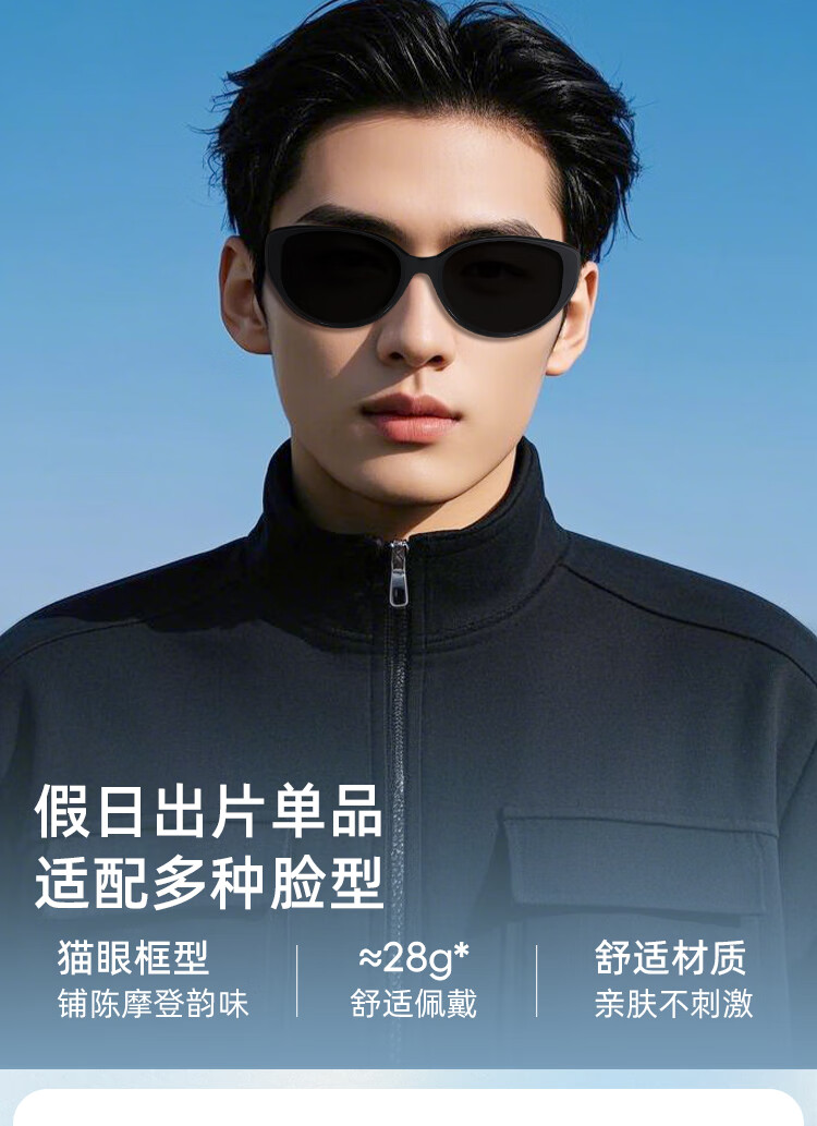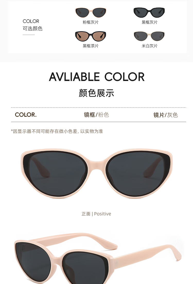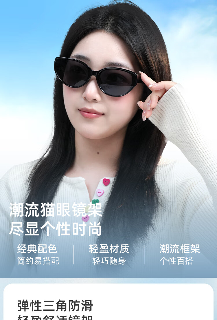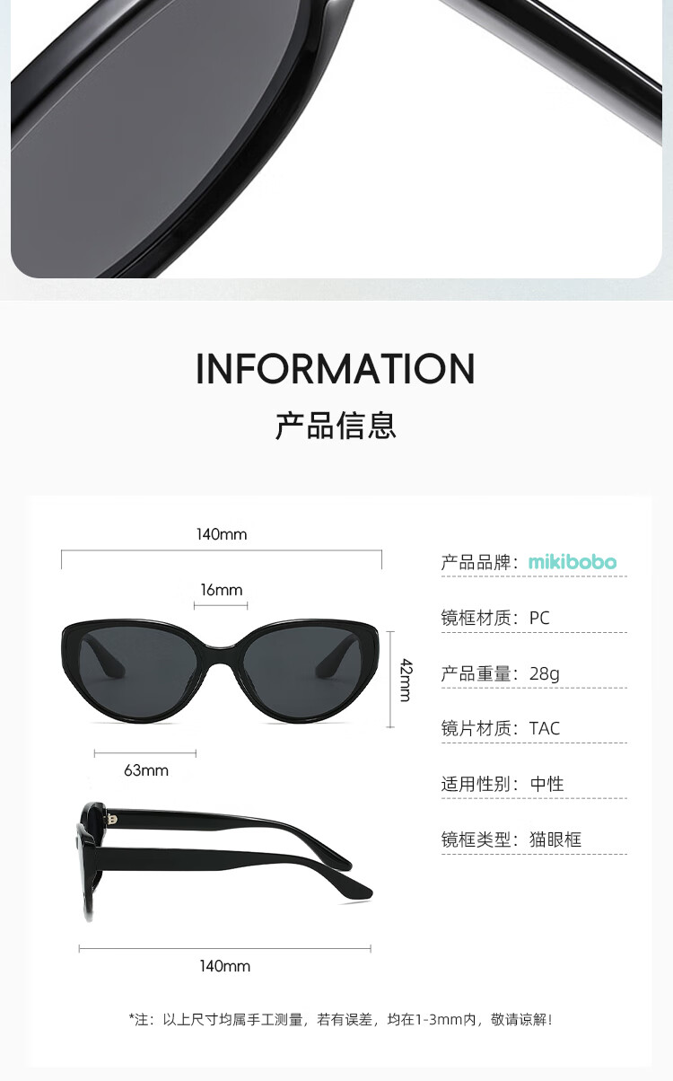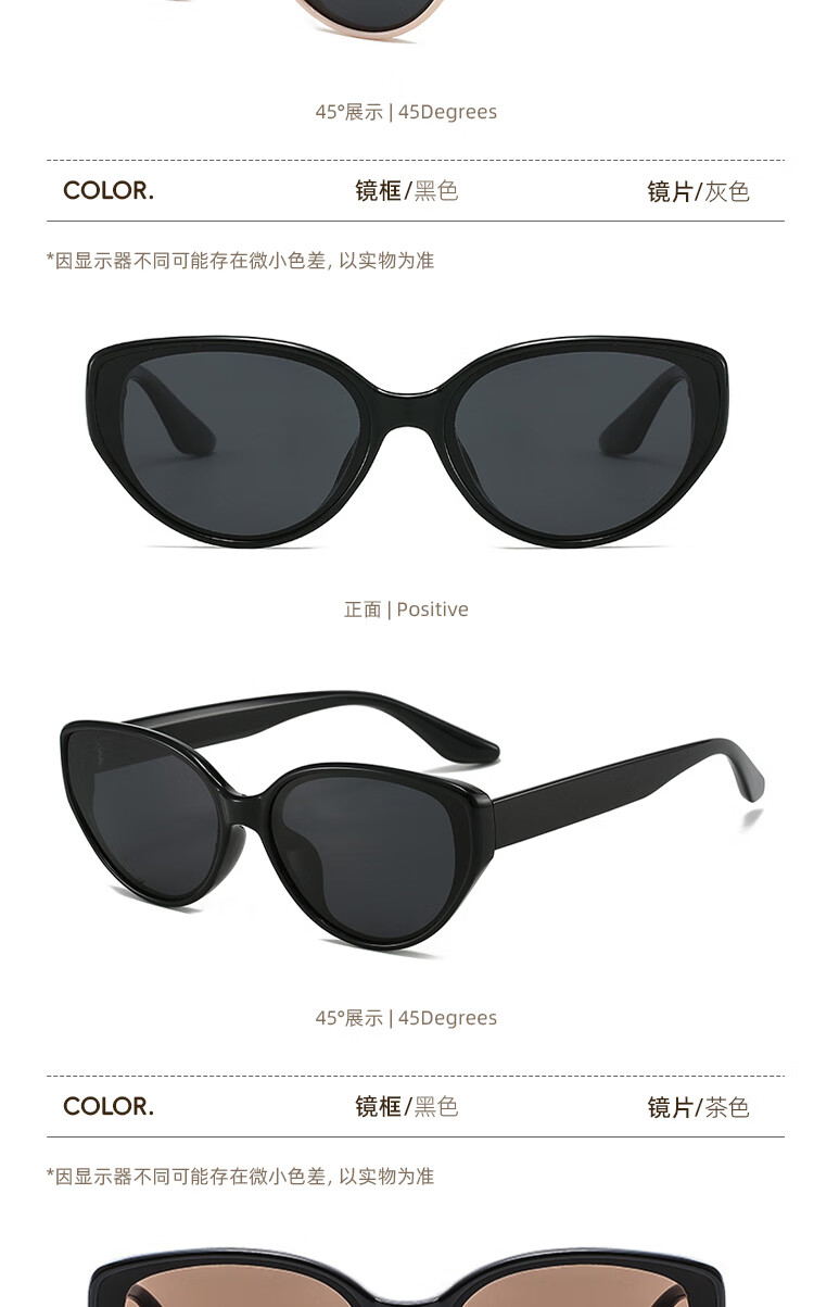 米奇啵啵摩登猫眼偏光太阳镜 开车防紫外线UV400防晒 小框男女同款墨镜 C4032-黑框灰片