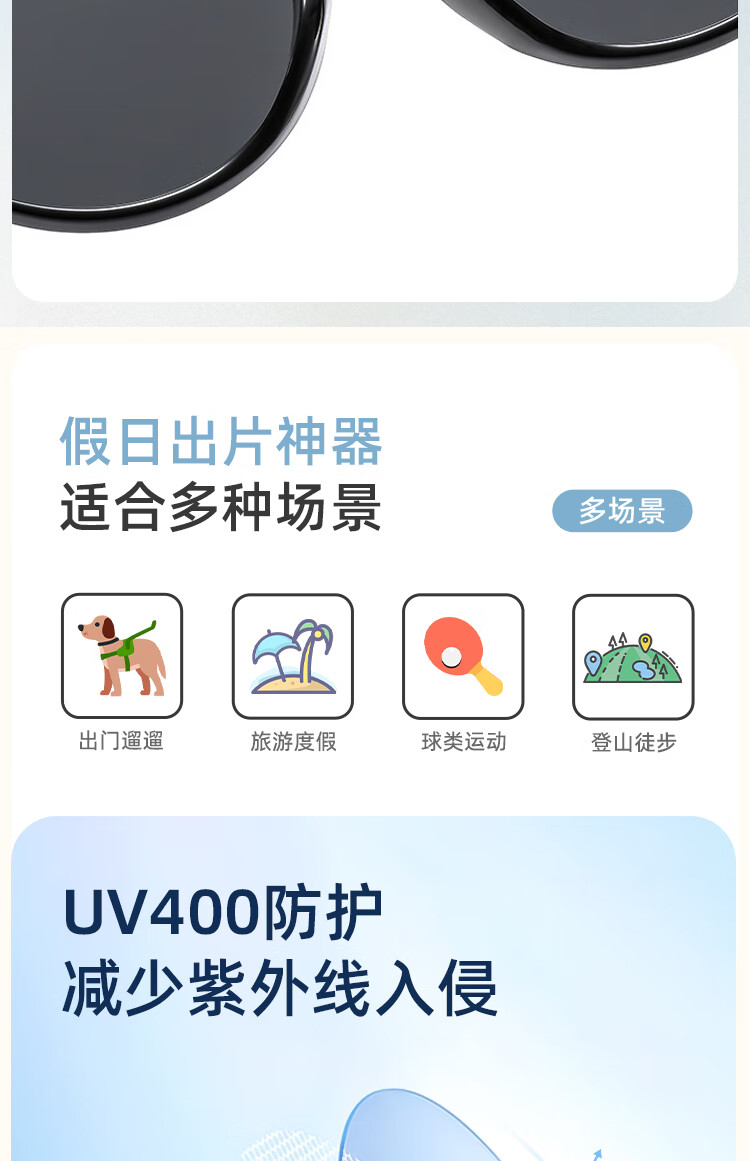 派尼英菲韩版椭圆形白色春季眼镜潮休闲度假海边沙滩墨镜女防紫外太阳镜 黑框灰片