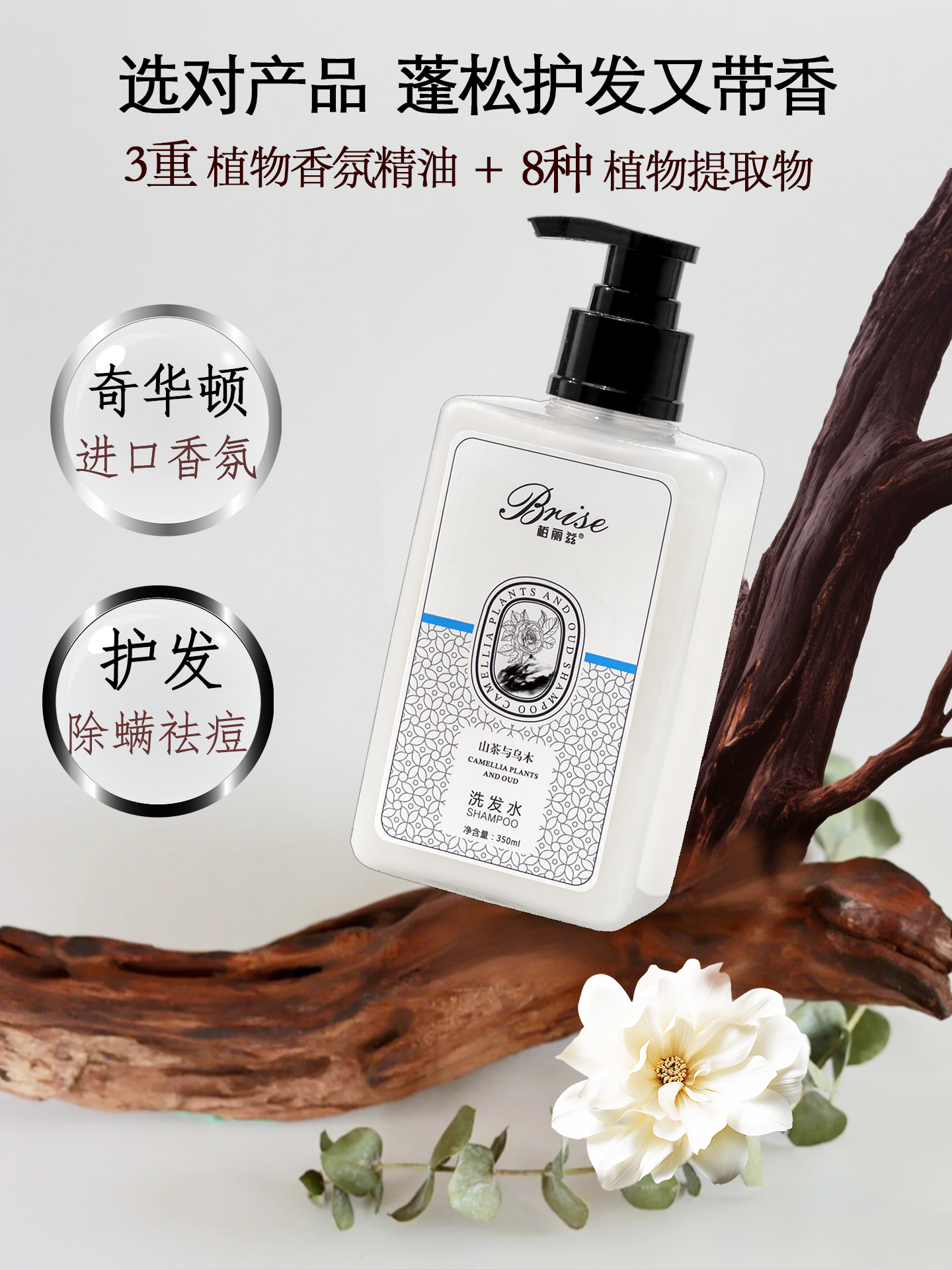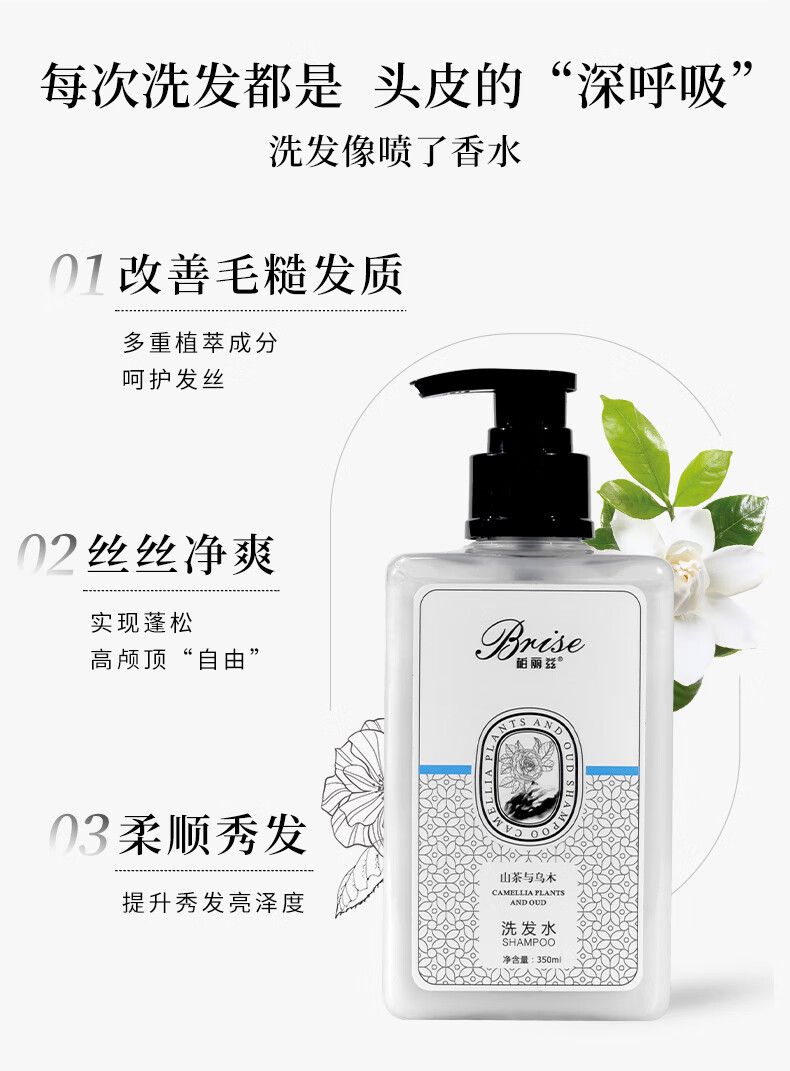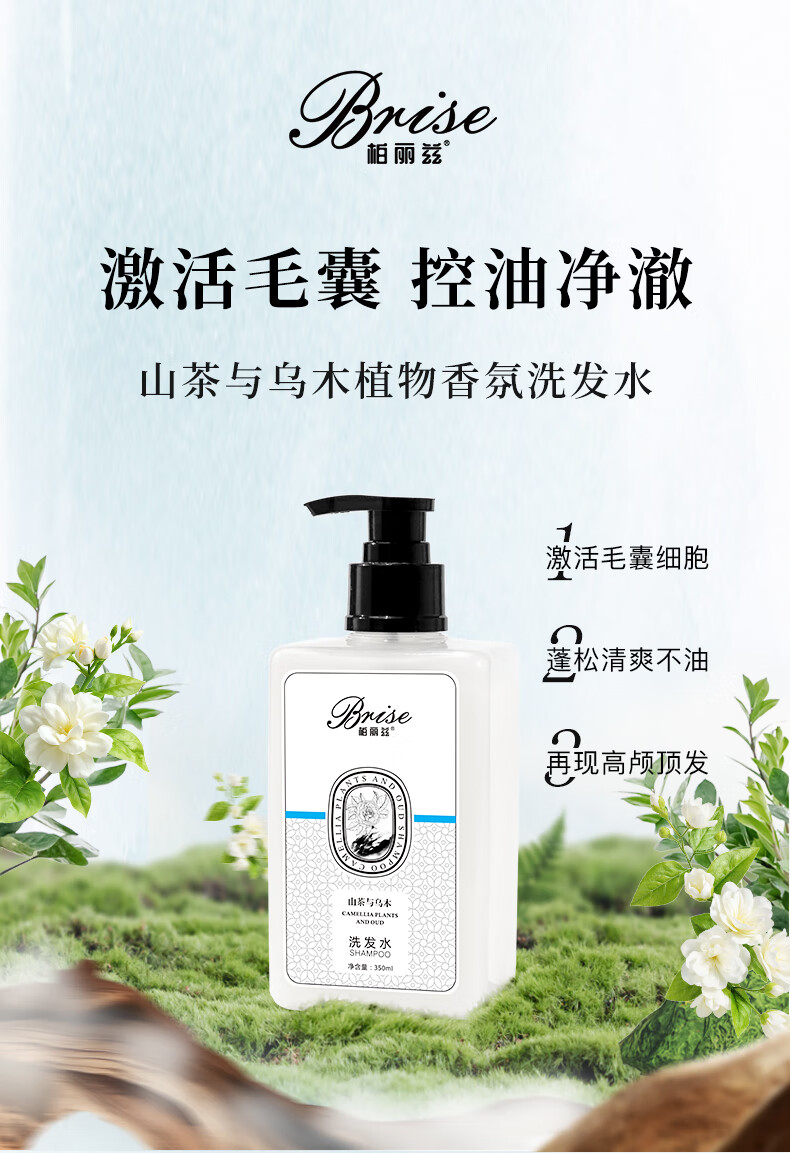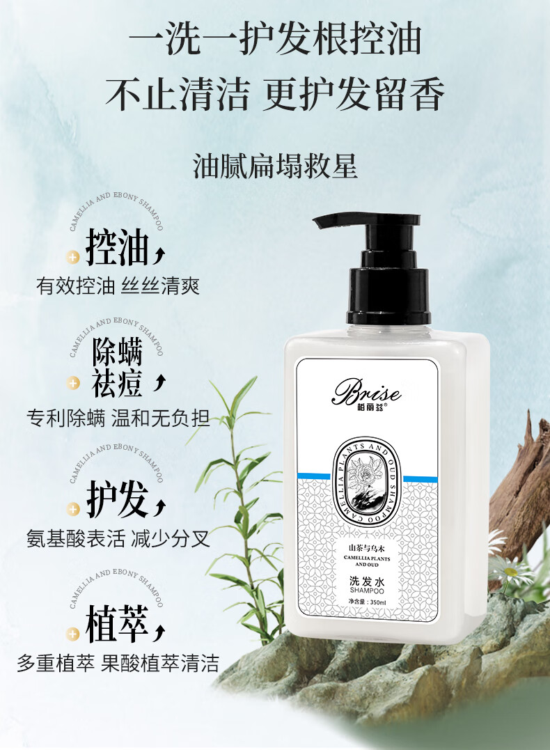 柏丽兹山茶与乌木植物香氛洗发水木质香氨基酸控油蓬松护发留香洗发露 洗发水350ml*1【除螨祛痘专利】送洗头梳
