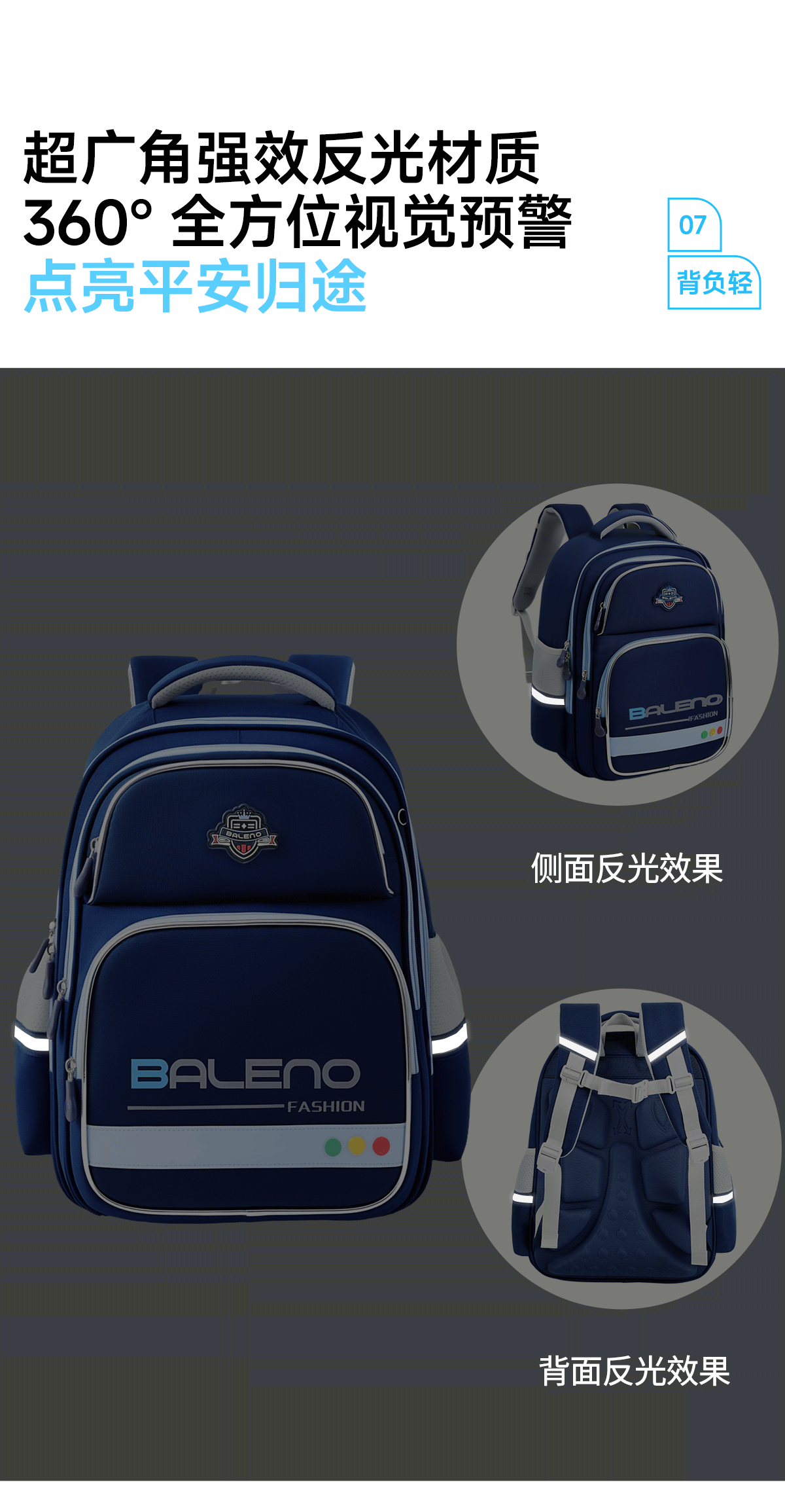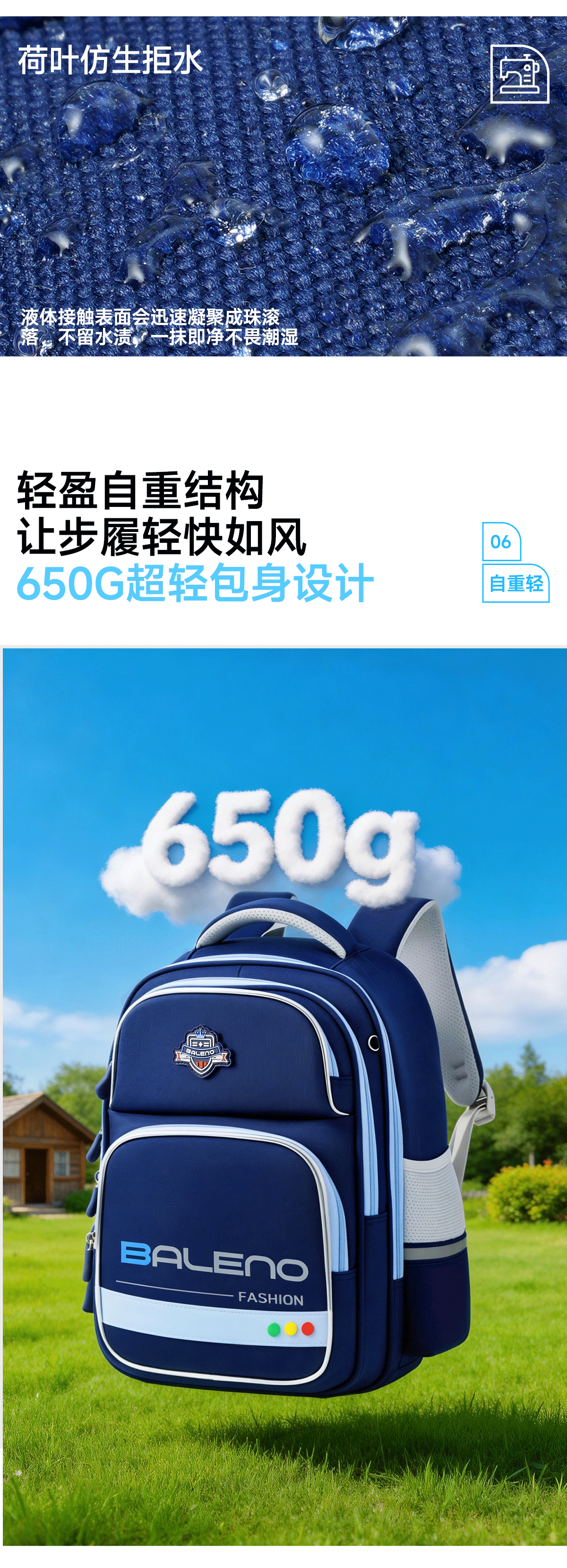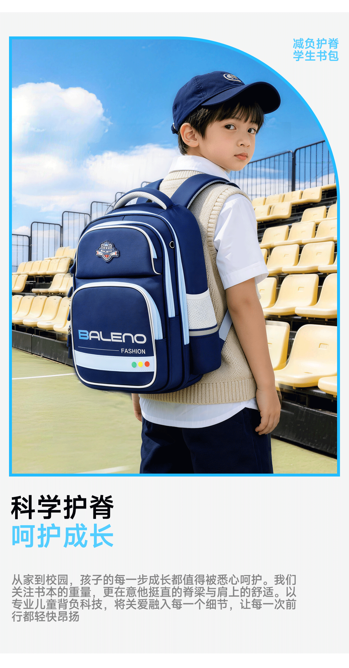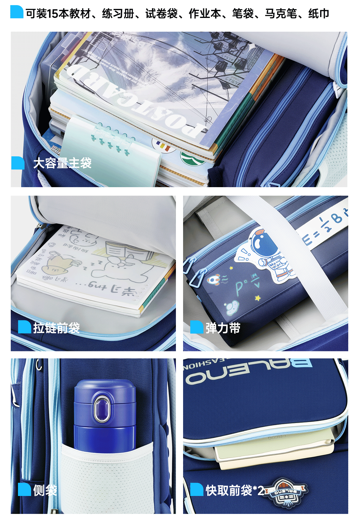 班尼路(Baleno)儿童书包小学生1-3-6年级大容量轻便护脊减负防泼水男女双肩背包 主图款蓝色【小号适用于1-3年级】