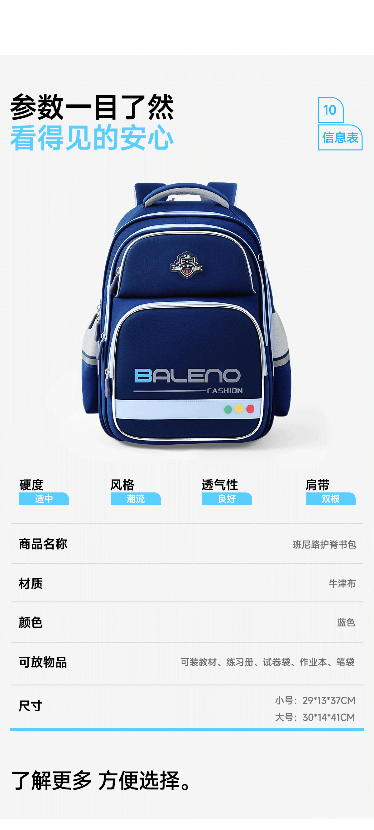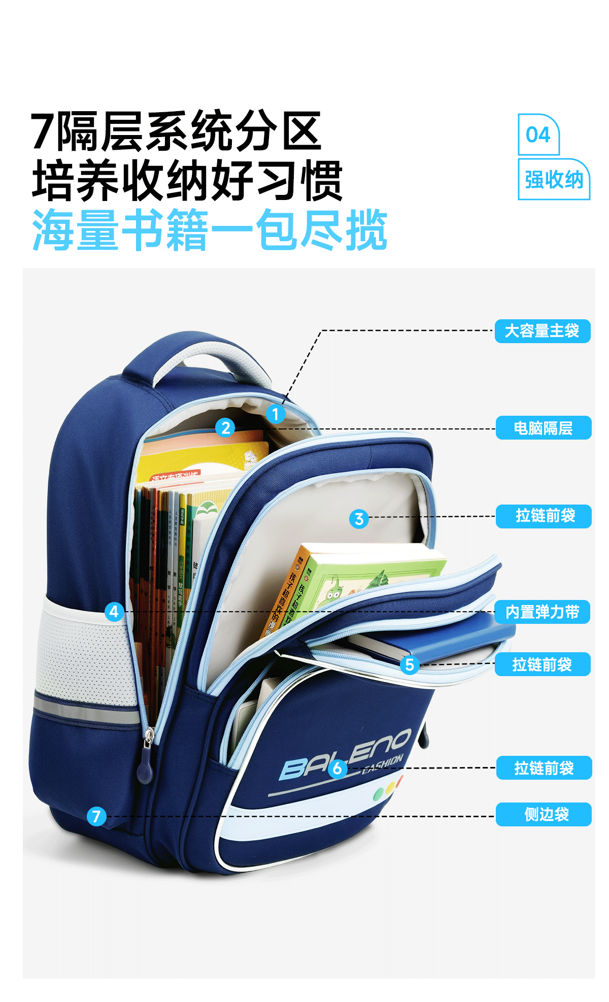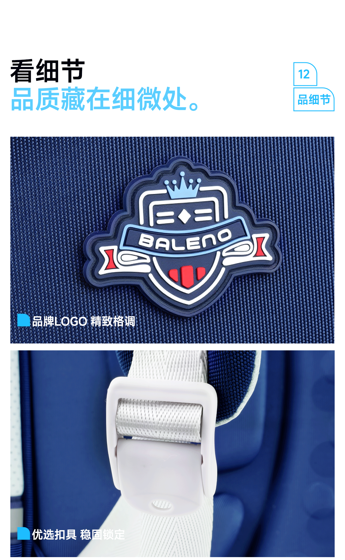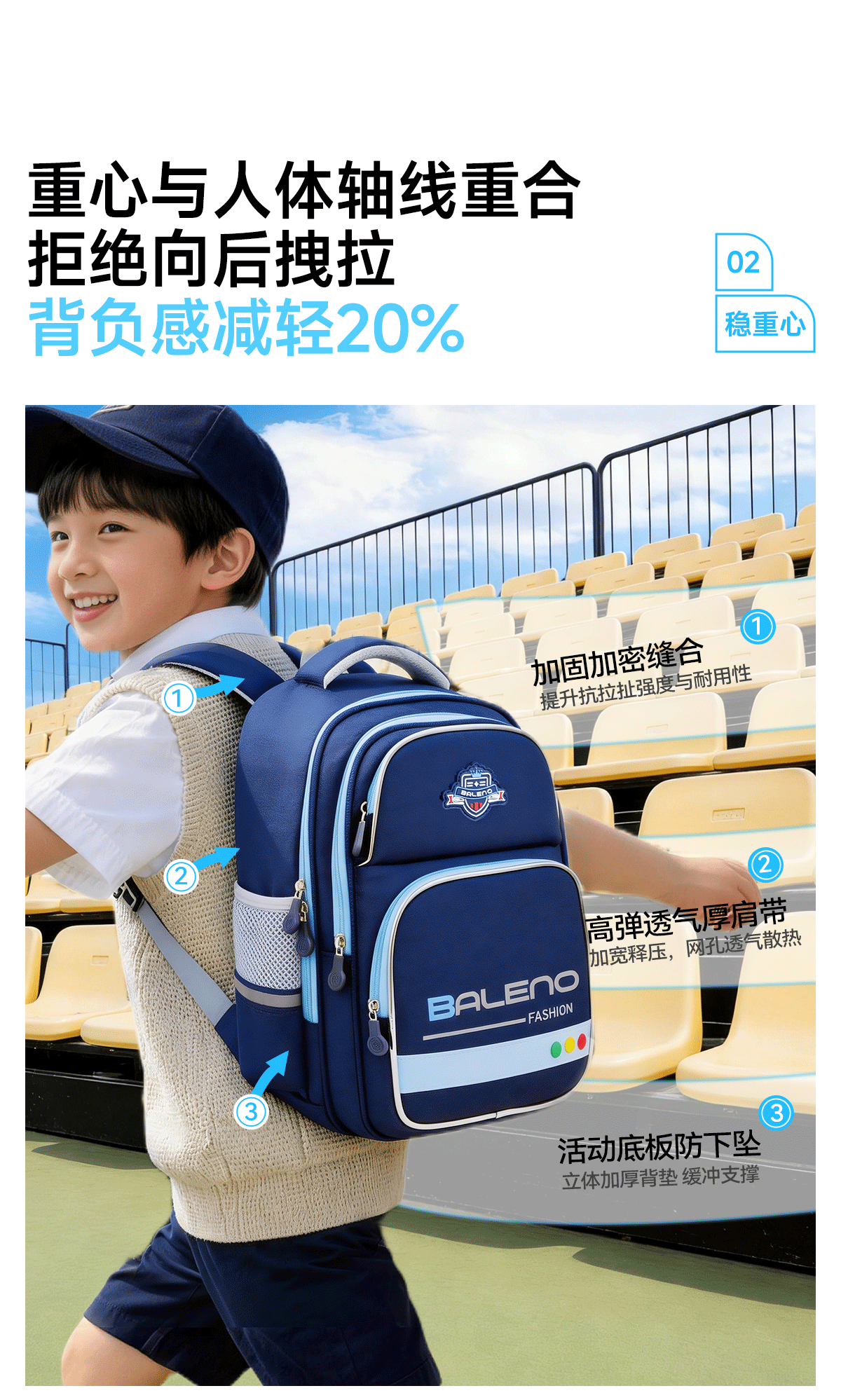 班尼路(Baleno)儿童书包小学生1-3-6年级大容量轻便护脊减负防泼水男女双肩背包 主图款蓝色【小号适用于1-3年级】