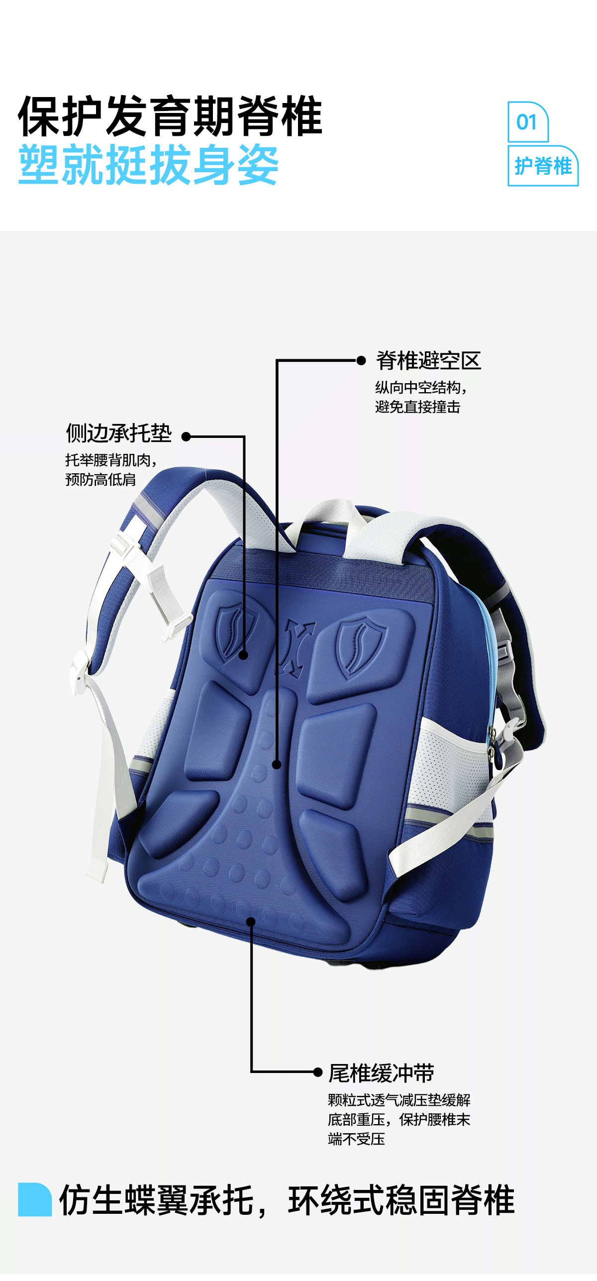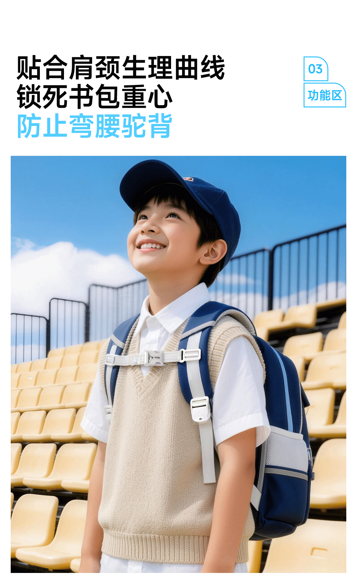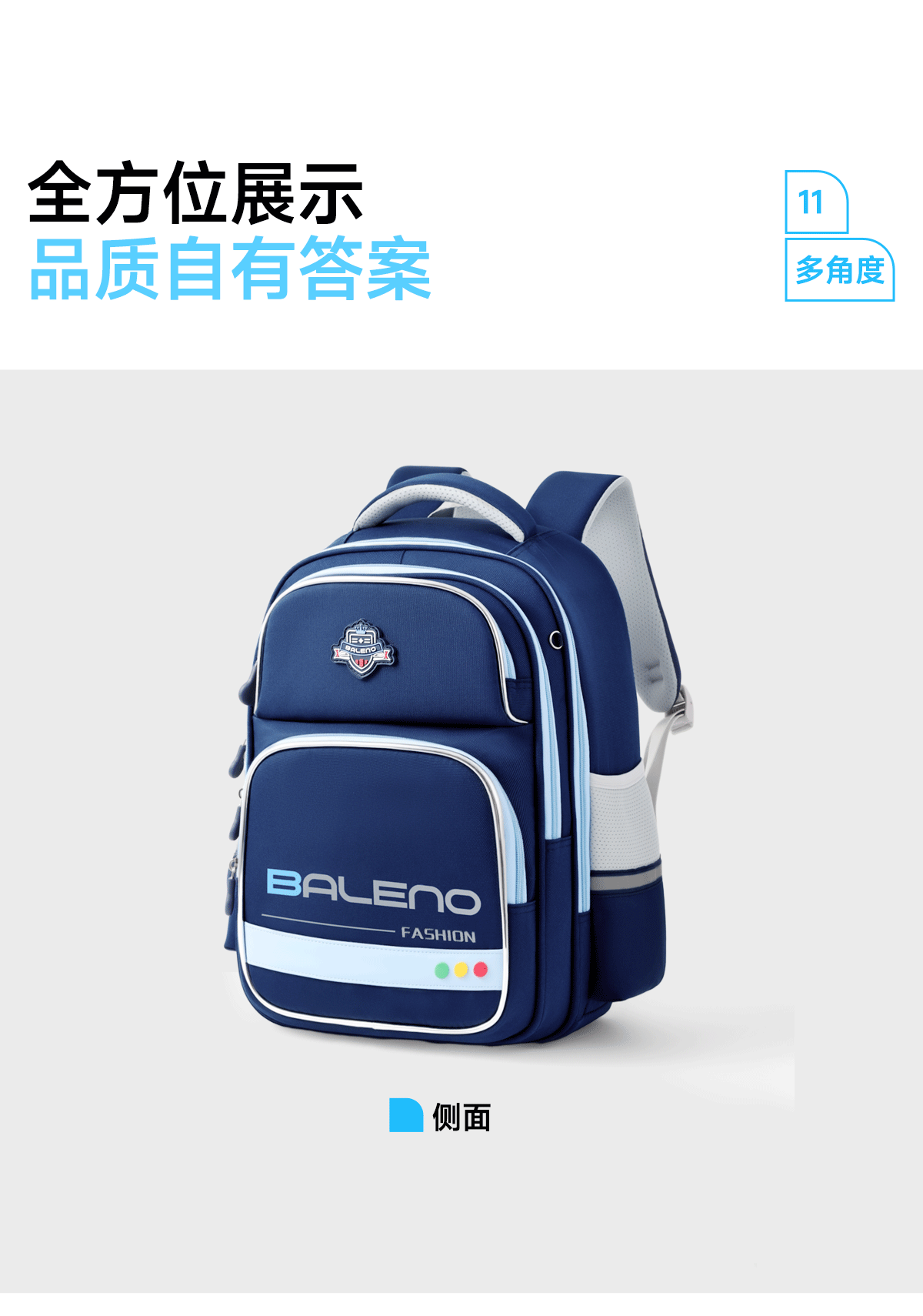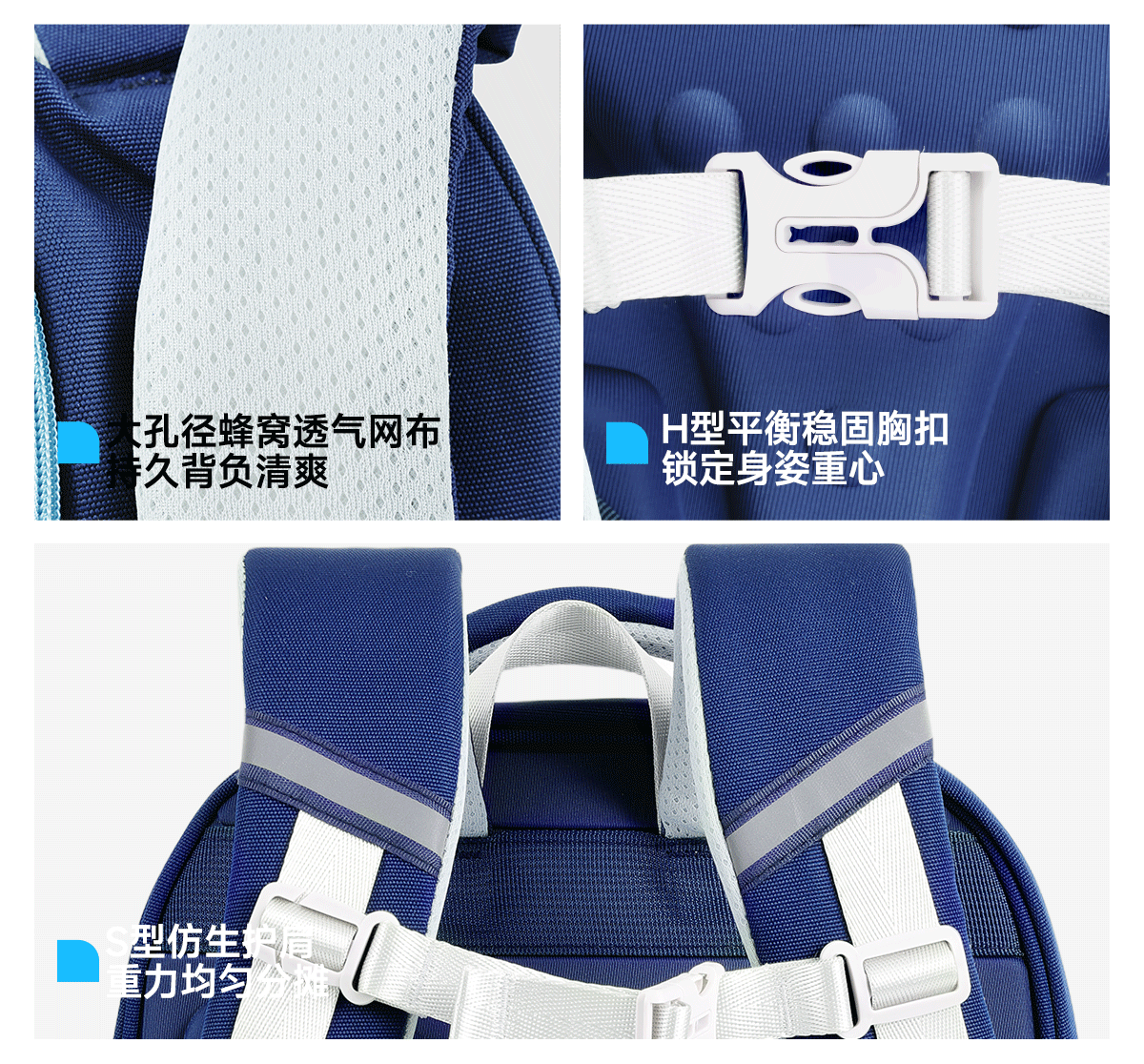 班尼路(Baleno)儿童书包小学生1-3-6年级大容量轻便护脊减负防泼水男女双肩背包 主图款蓝色【小号适用于1-3年级】