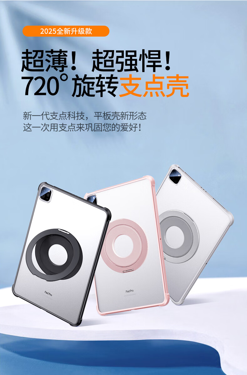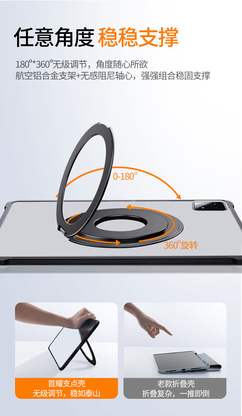 首耀适用苹果ipadair8/7/6保护套2026款ipad11代可旋转mini7支架单壳无盖10支点壳ipadpro平板亚克力 灰白色-720°旋转*稳固支撑*无笔槽*金属支架款 iPad 2022版 第10代 (10.9英寸)
