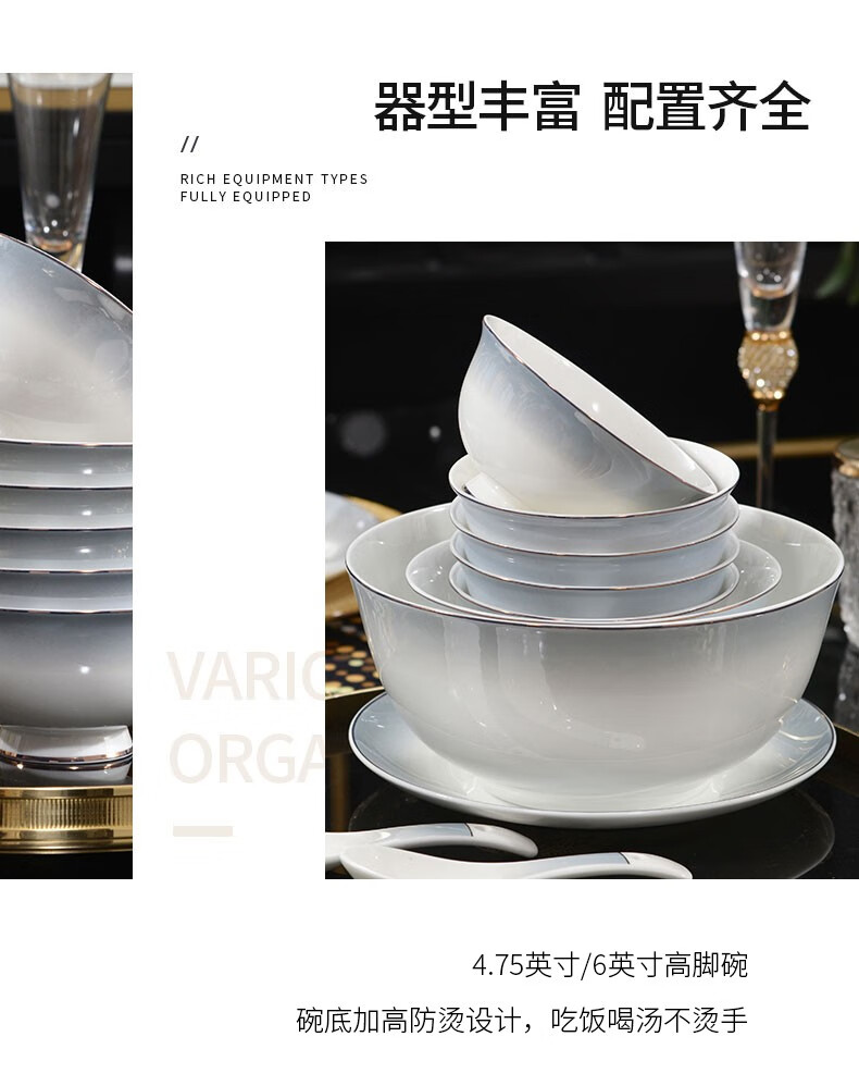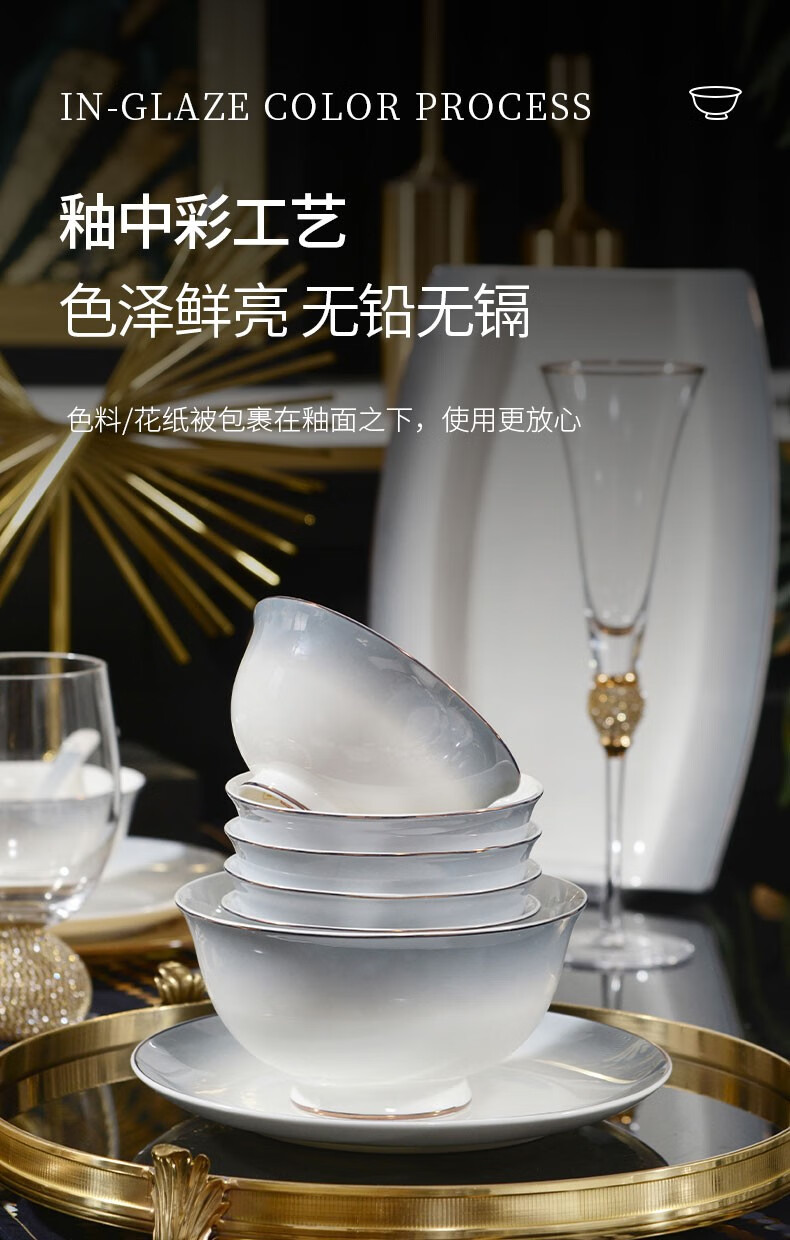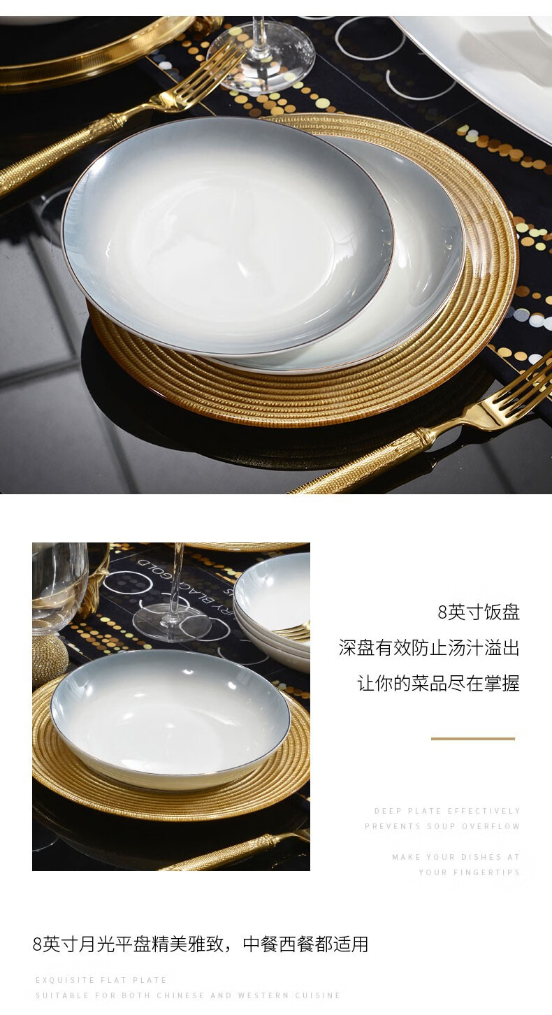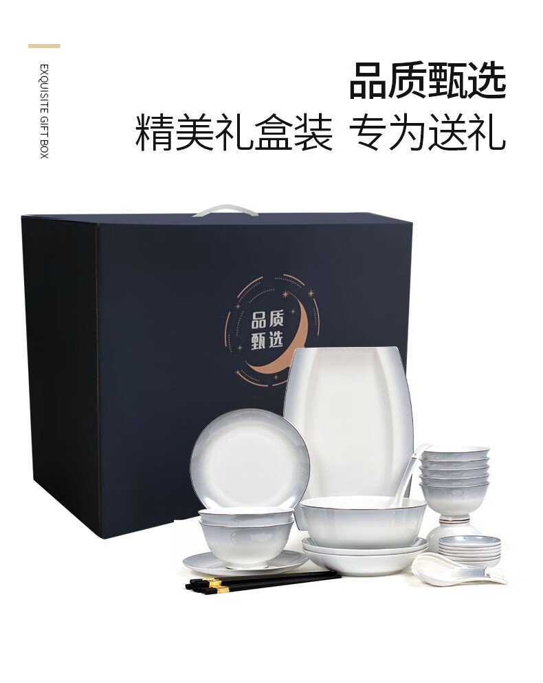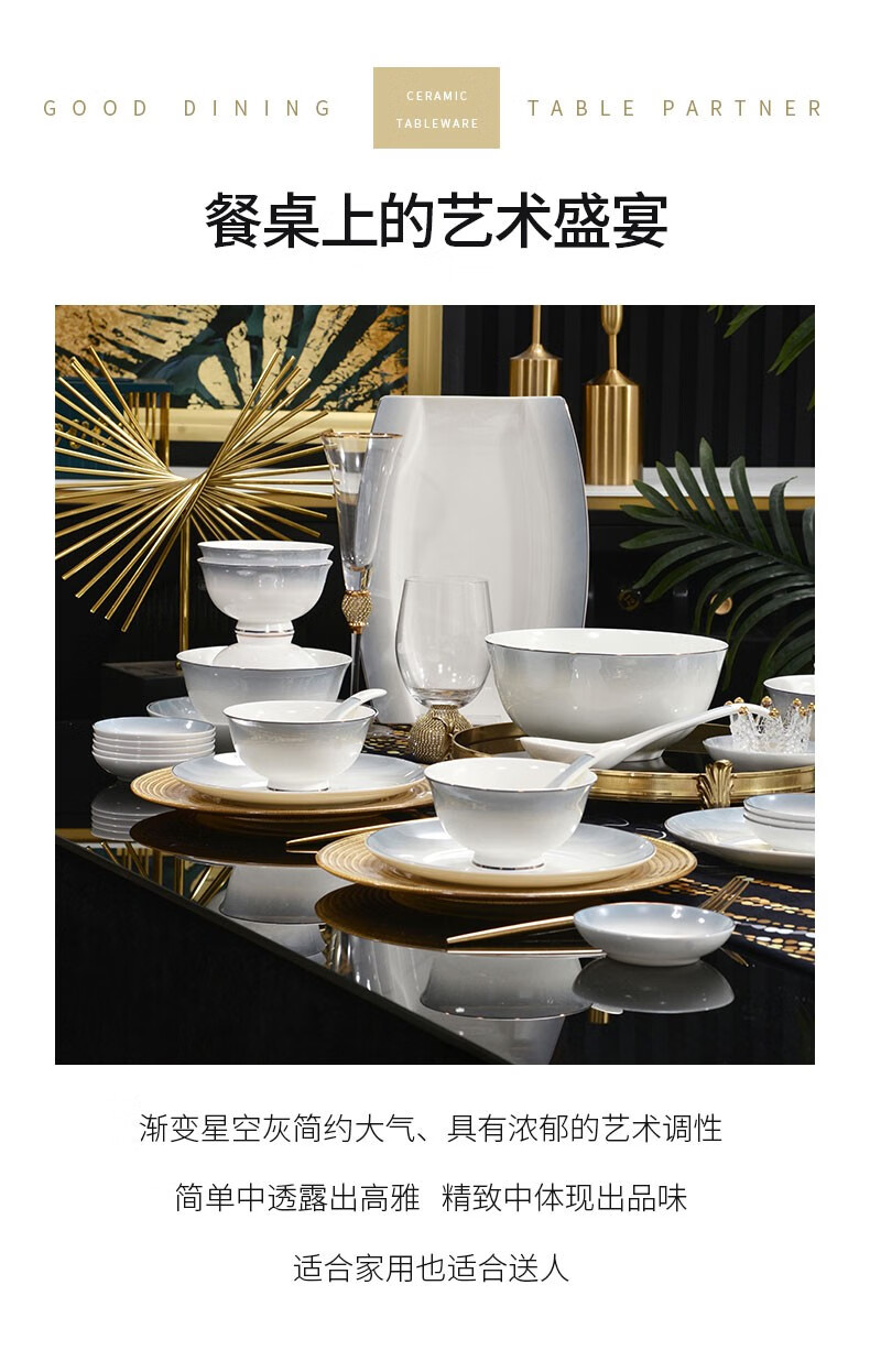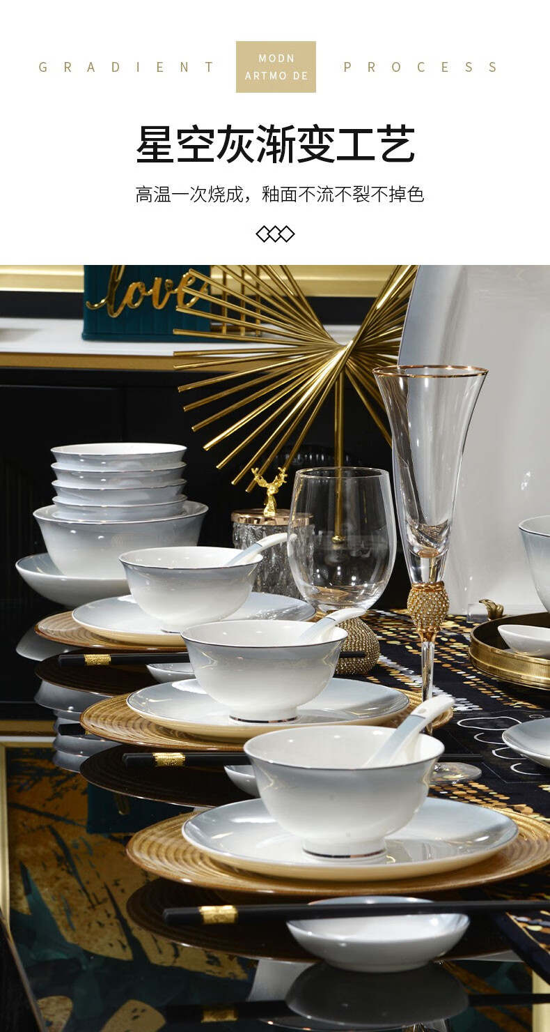 孟垣星空渐变34件套骨质瓷饭碗汤碗套装盘子碟子餐具套装MY-XKH34 星空渐变灰34件套礼盒套装