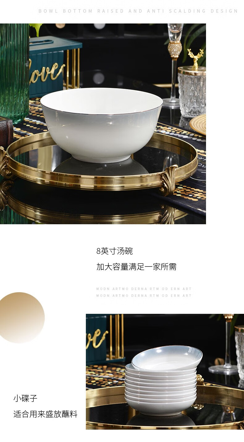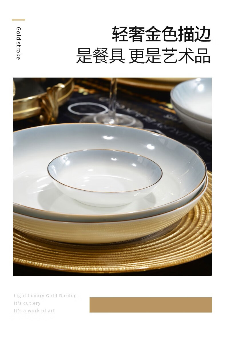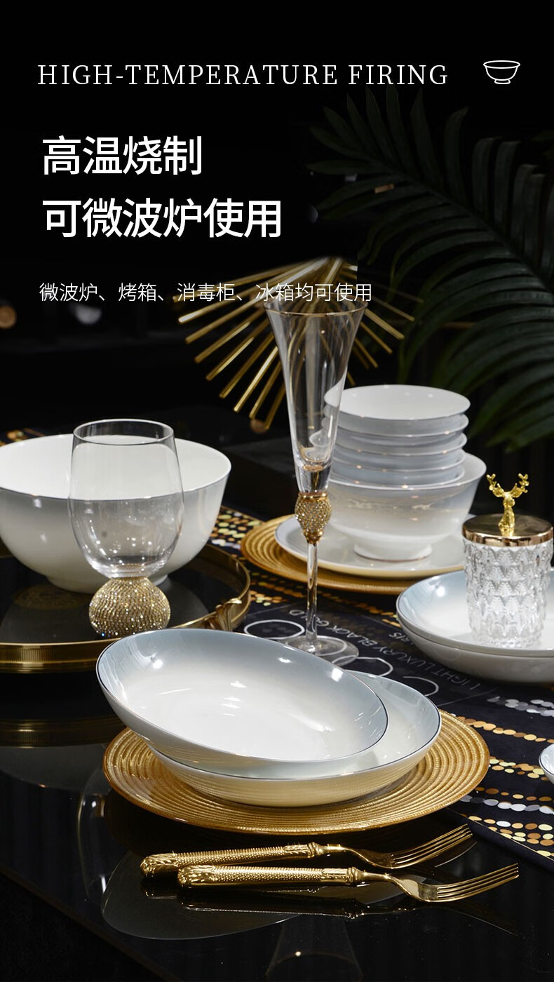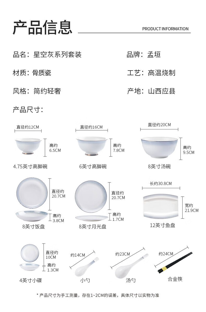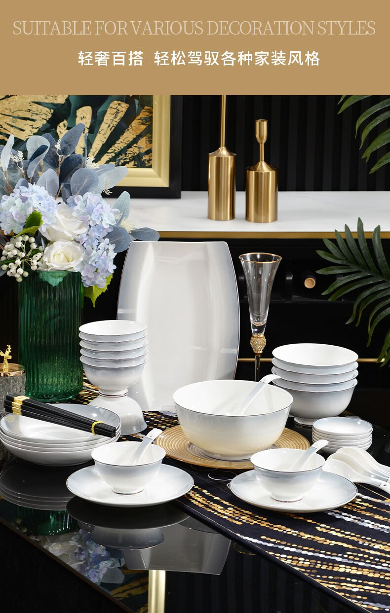 孟垣星空渐变34件套骨质瓷饭碗汤碗套装盘子碟子餐具套装MY-XKH34 星空渐变灰34件套礼盒套装