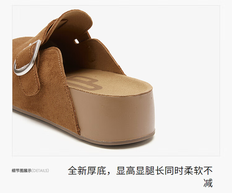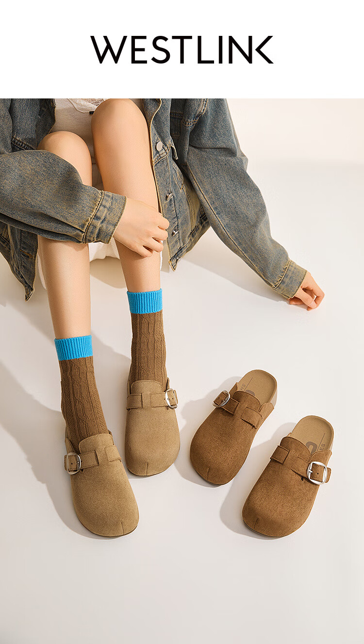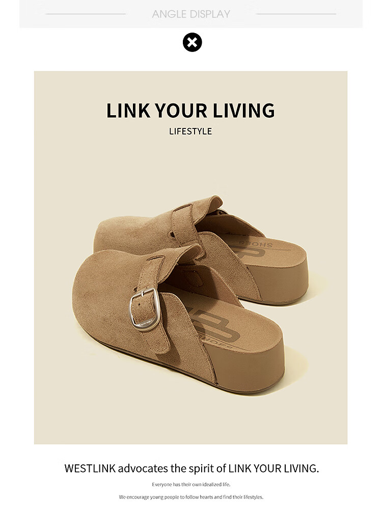 西遇(Westlink)厚底勃肯鞋女2026新款秋季圆头一脚蹬懒人鞋外穿增高半拖 卡其色 预售15天 39 (245)