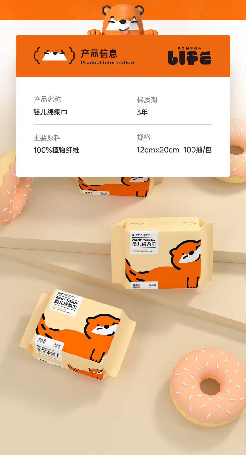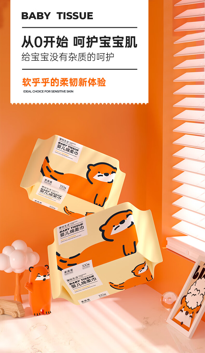 蓬松生活乳霜纸新生宝宝手口专用云柔巾抽取式便携婴儿纸巾 3层 30抽*50包